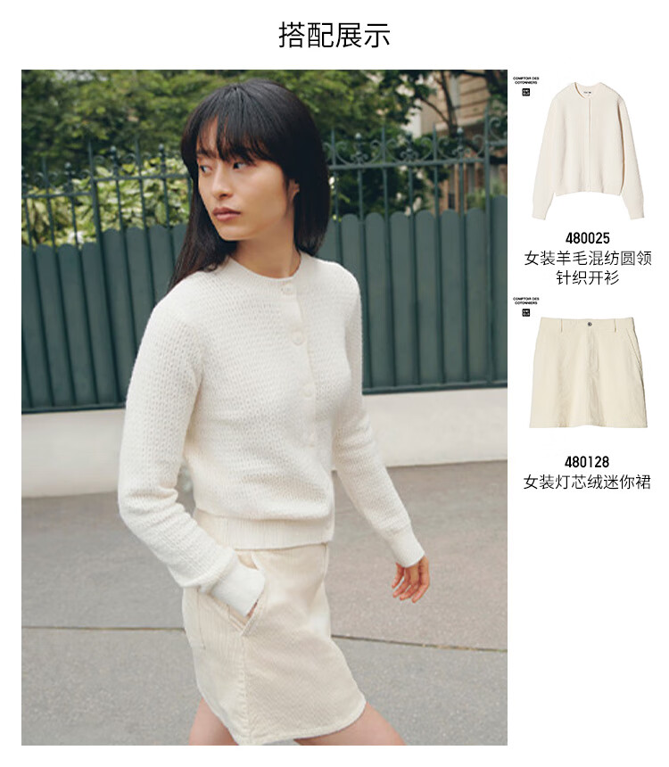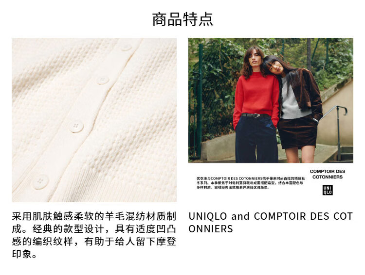 UNIQLO collaboration/women's wool blended round neck knitted cardigan/sweater 480025 02 light gray XL/165/92A