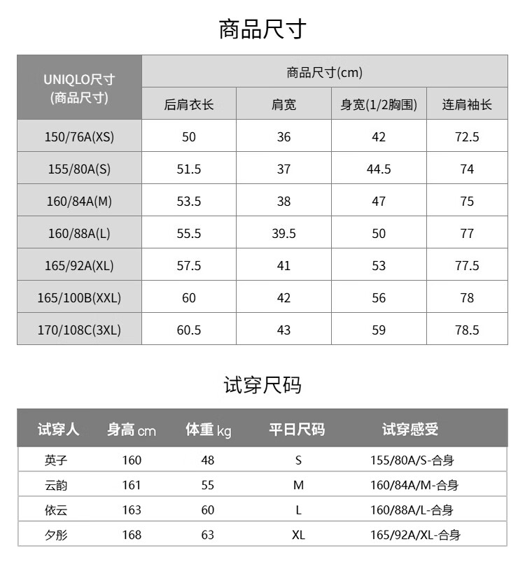 China (cm) 160-165/84-86 165-170 / 88-90 167-172 / 92-96 168-173 / 98-102 170-176 / 106-110