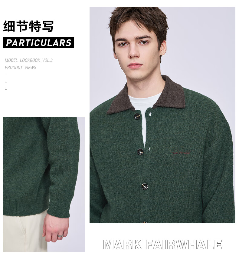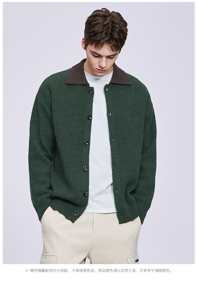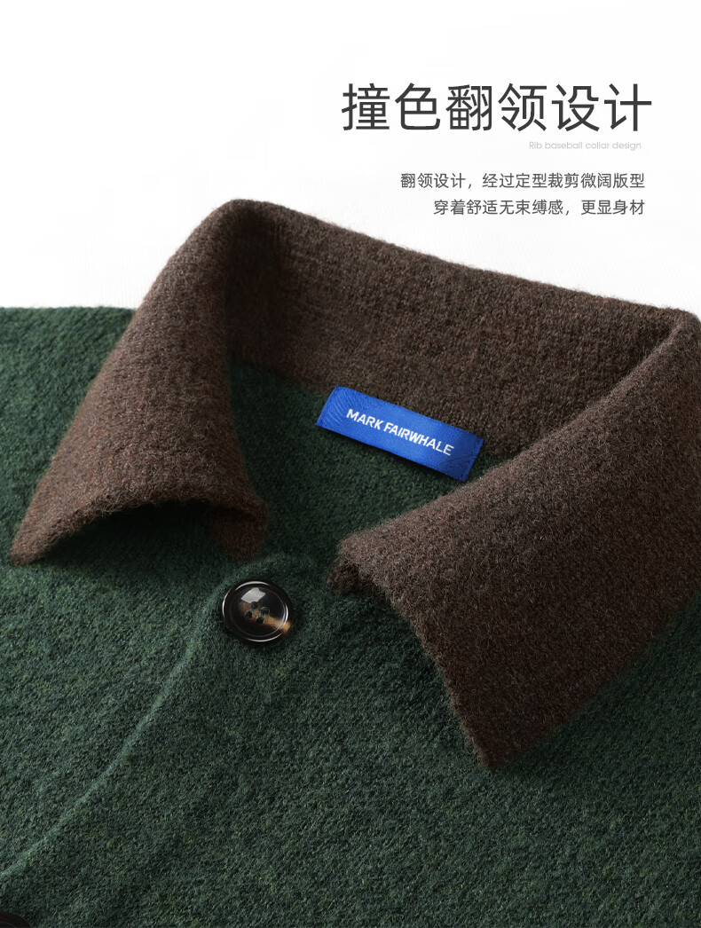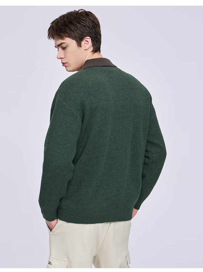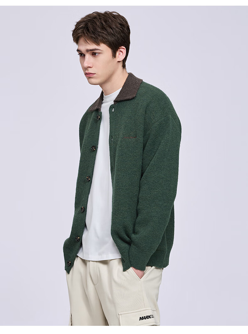 Mark Huafei wool cardigan lapel sweater for men 2025 autumn and winter new casual sweater jacket 2010 dark green 514 L 175