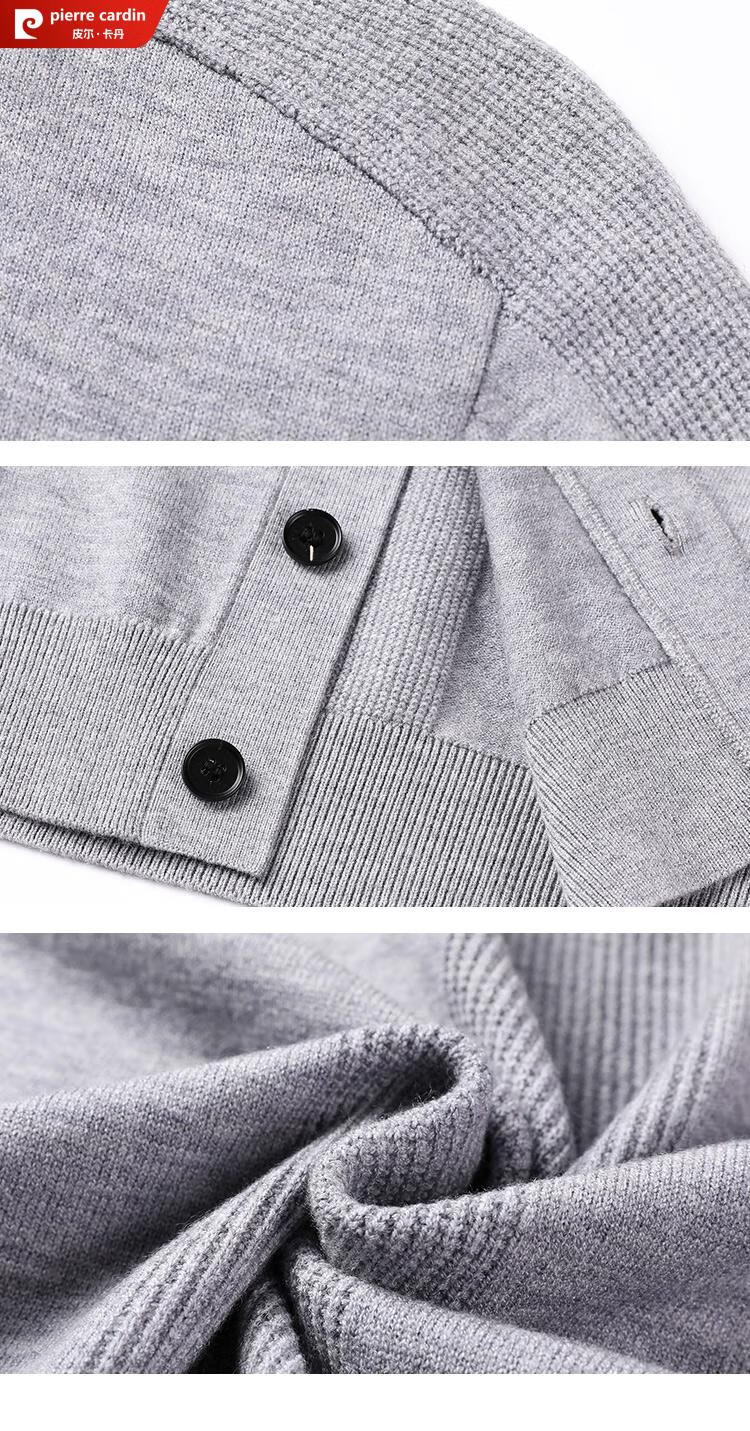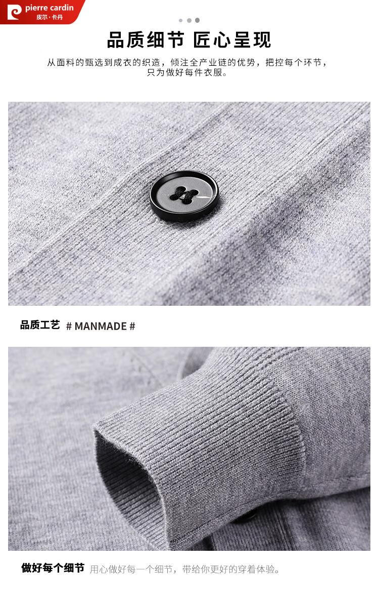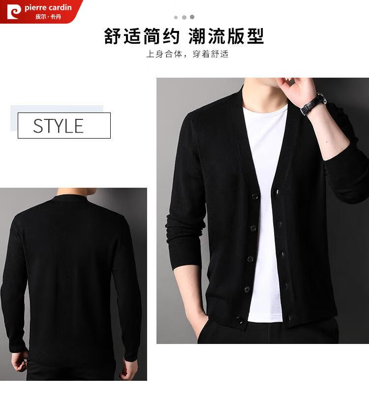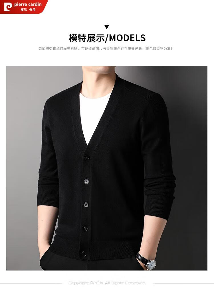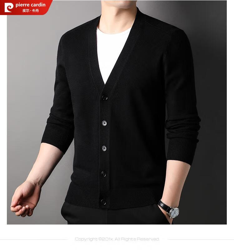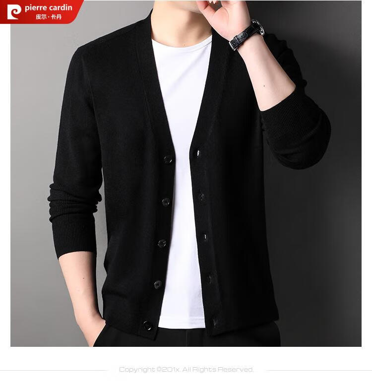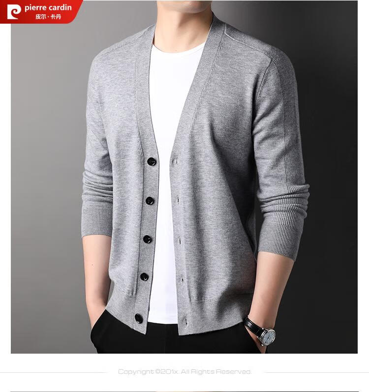 Pierre Cardin 100% pure wool knitted cardigan men's jacket spring and autumn V-neck high-end coat sweater new knitted men's clothing light coffee 2XL 180 recommended 145-160Jin Jin equals 0.5 kg