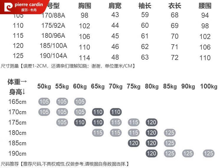 China (cm) 165 / 88-90 170 / 96-98 175 / 108-110 180 / 118-122 185 / 126-130