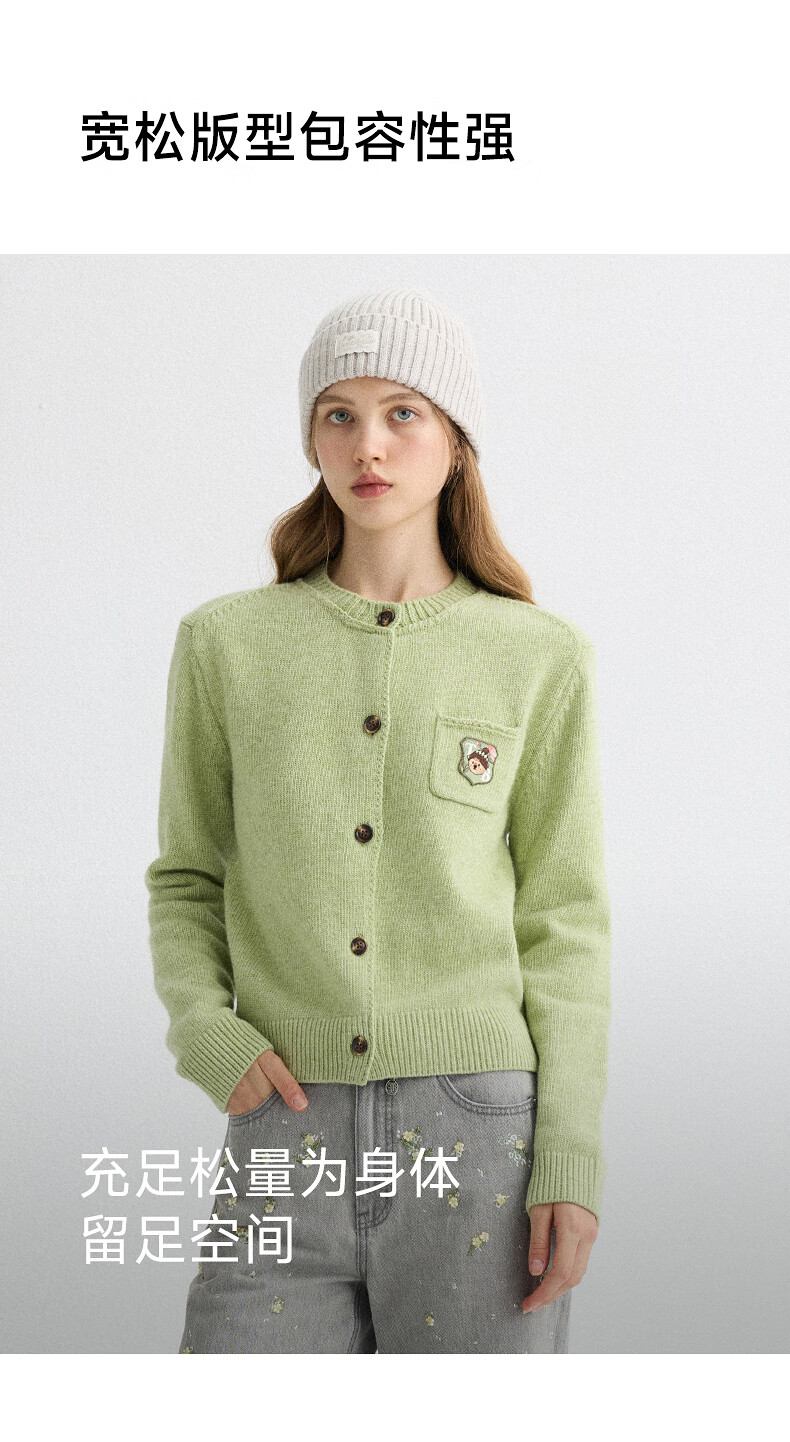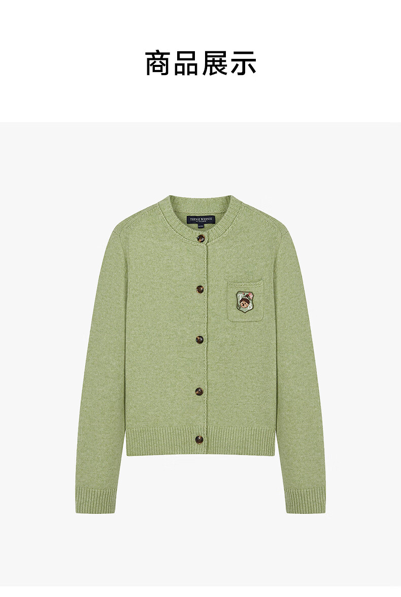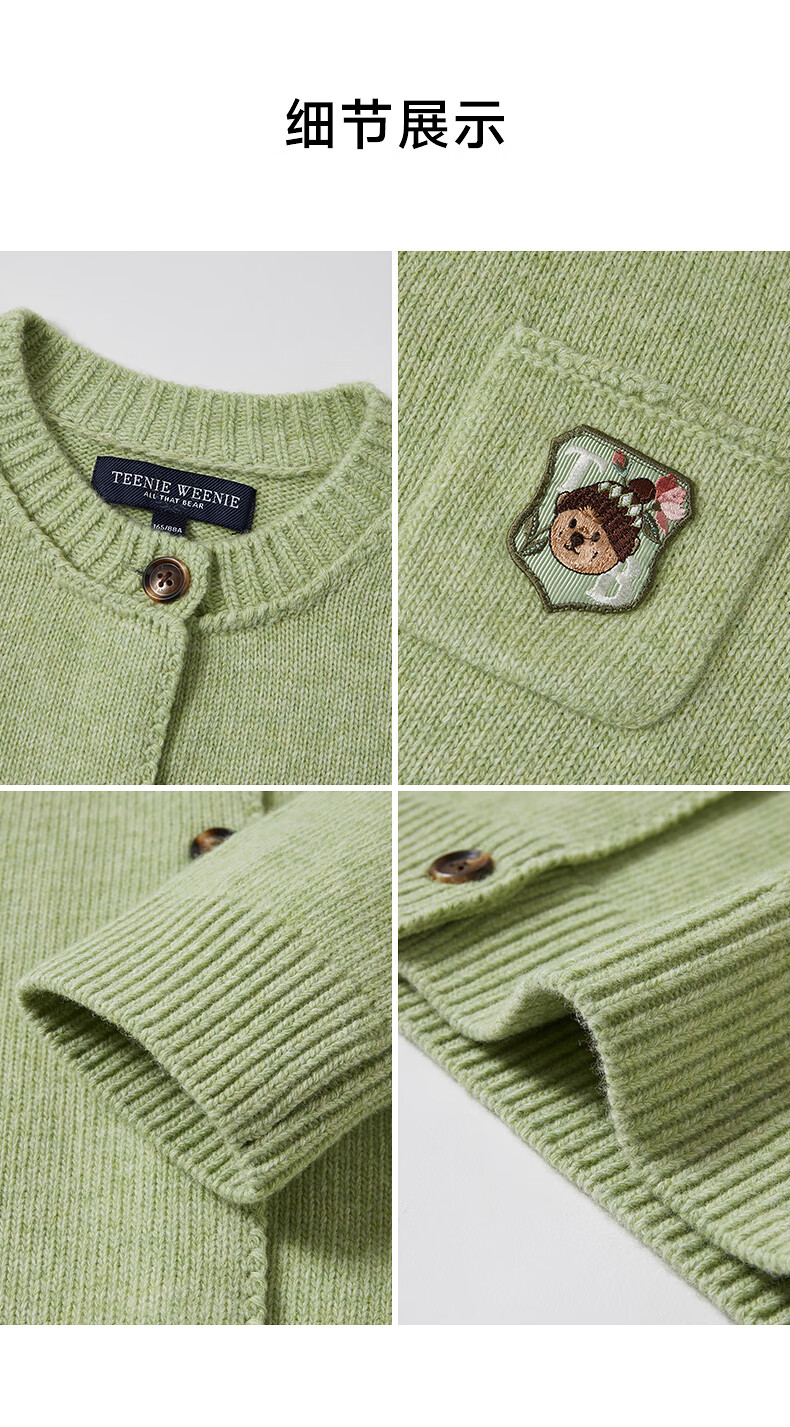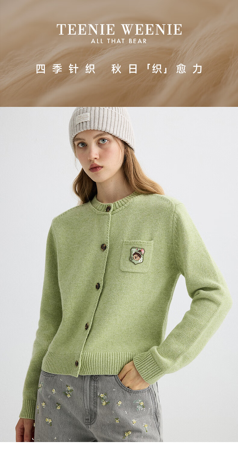 Teenie Weenie Zhao Lusi's same style Bear Girl Sheep Wool Knitted Cardigan 2025 Autumn New Sweater Mint S