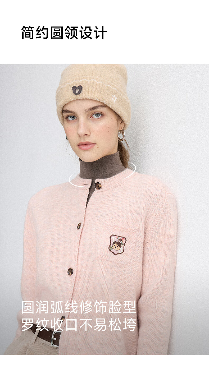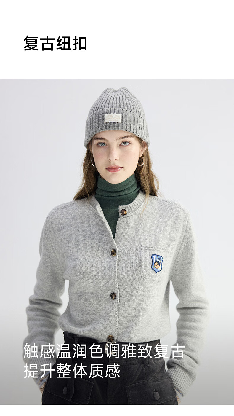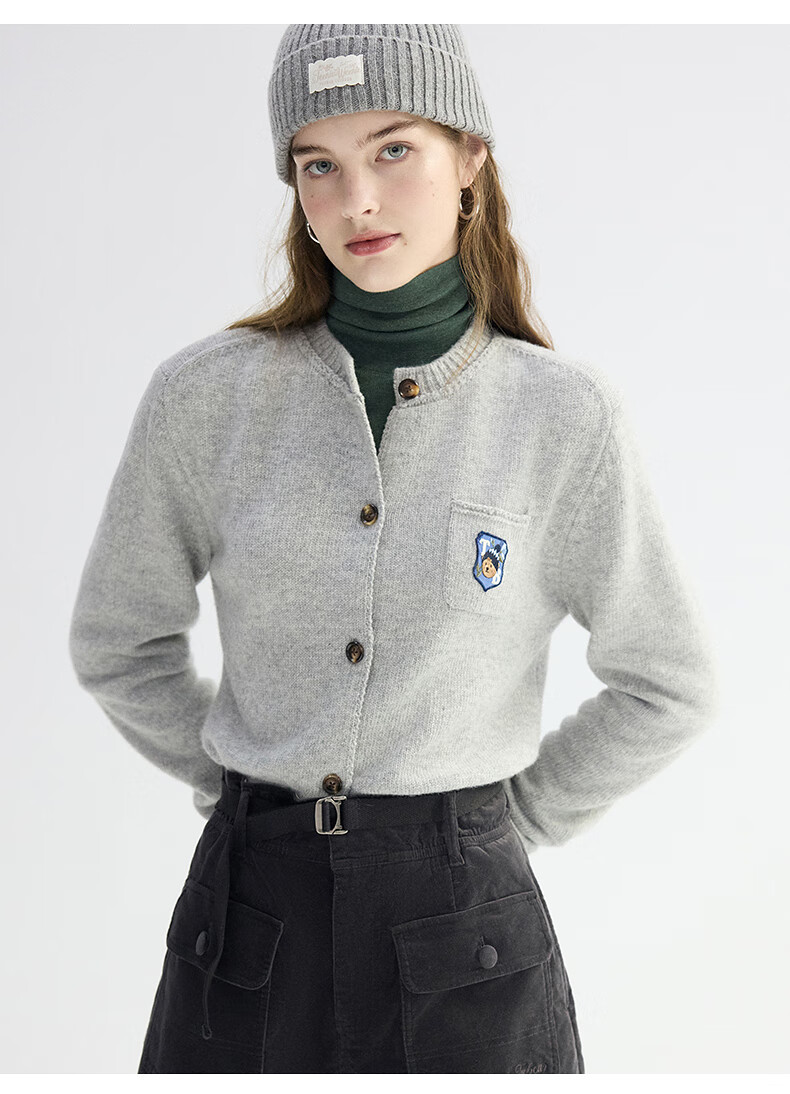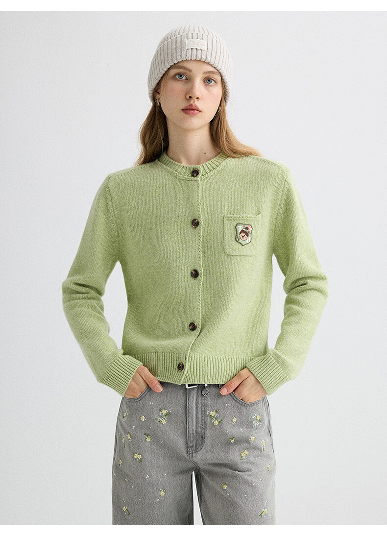Teenie Weenie Zhao Lusi's same style Bear Girl Sheep Wool Knitted Cardigan 2025 Autumn New Sweater Mint S