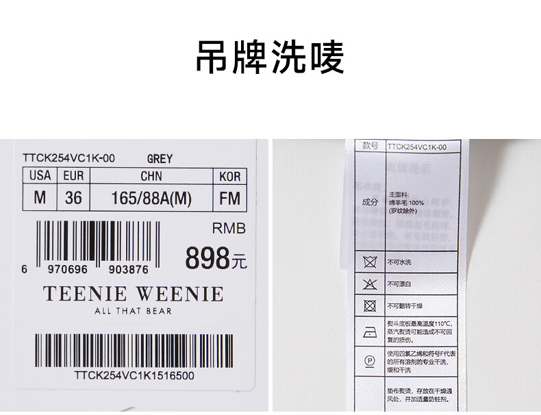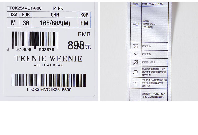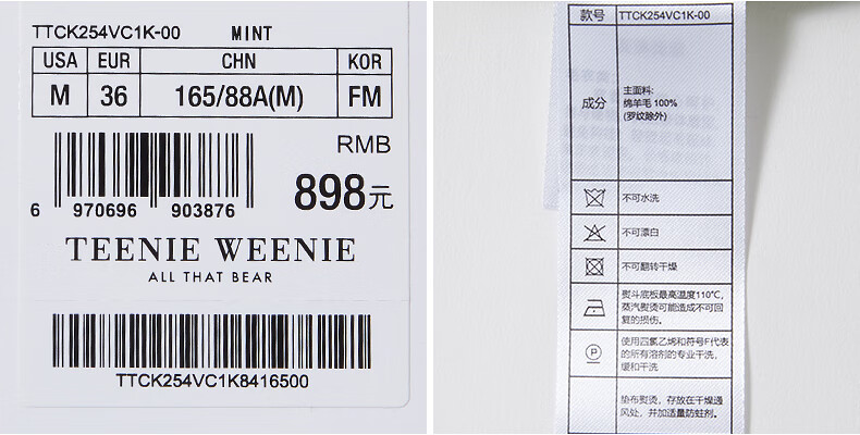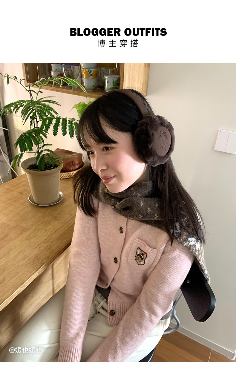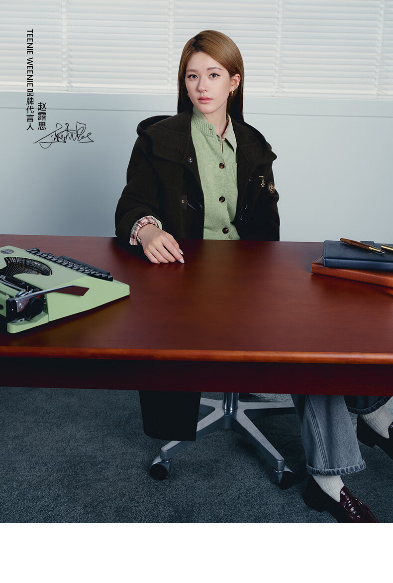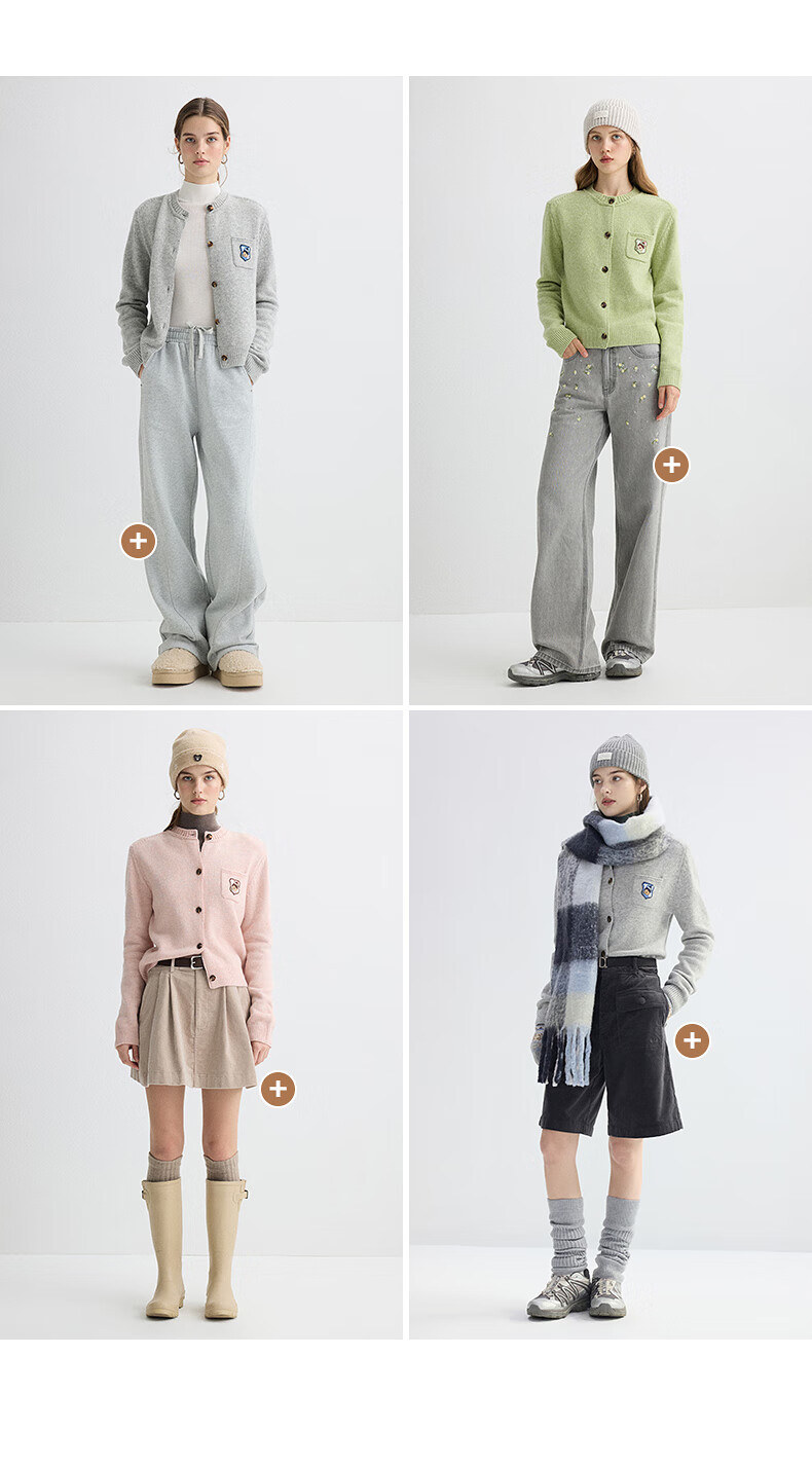 Teenie Weenie Zhao Lusi's same style Bear Girl Sheep Wool Knitted Cardigan 2025 Autumn New Sweater Mint S
