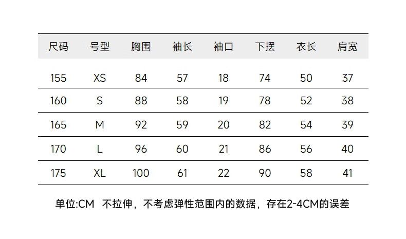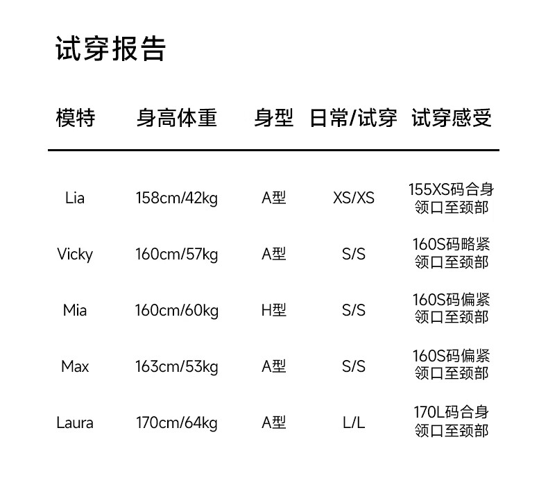 China (cm) 160-165/84-86 165-170 / 88-90 167-172 / 92-96 168-173 / 98-102 170-176 / 106-110