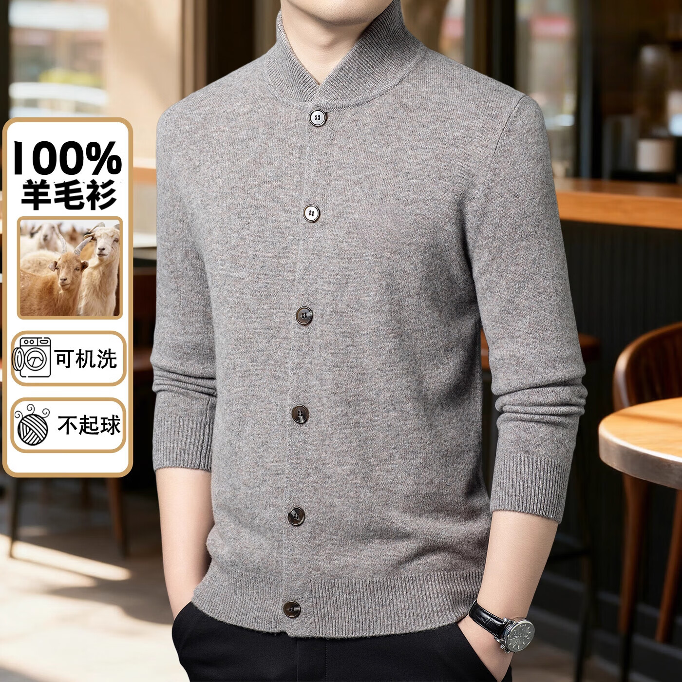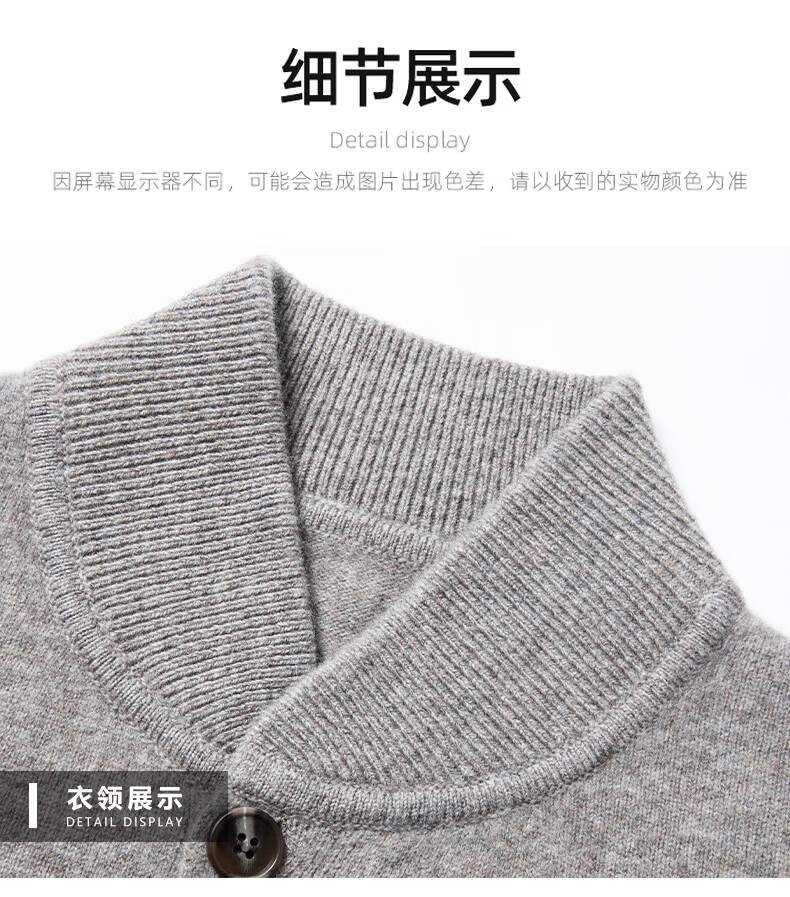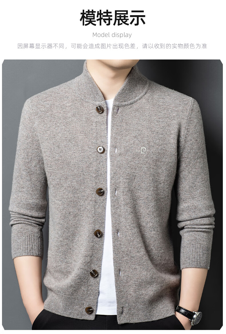 Pierre Cardin high-end men's 100% goat cashmere cardigan autumn and winter new thickened warm sweater sweater jacket gray camel L 170/recommended 115-130Jin Jin equals 0.5 kg