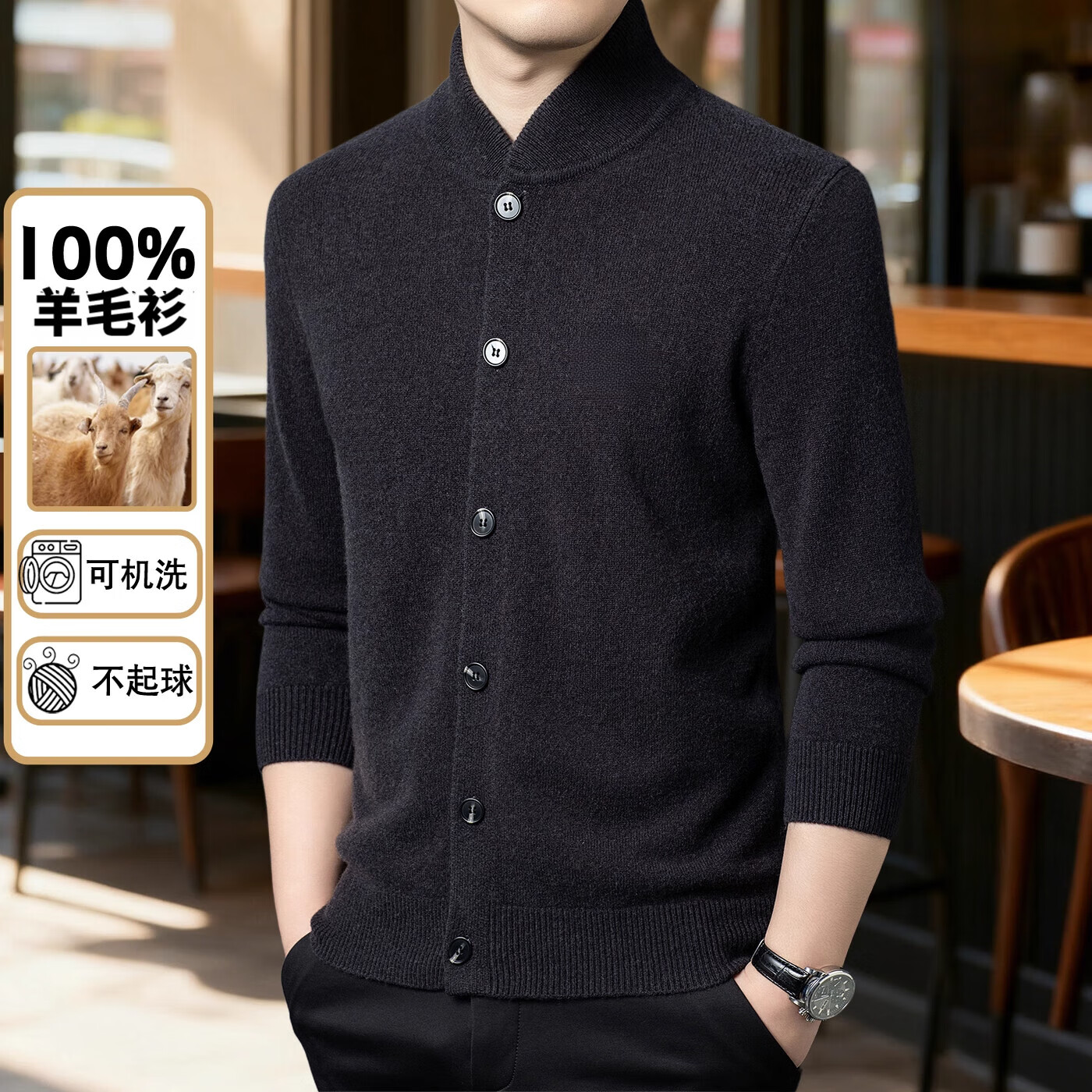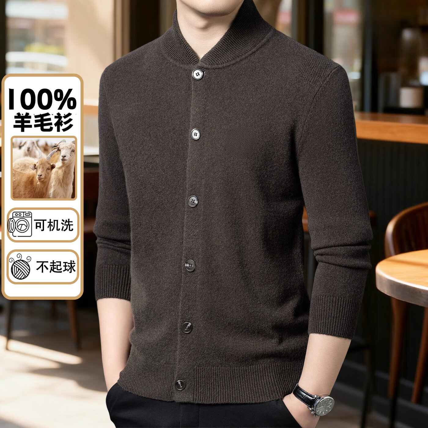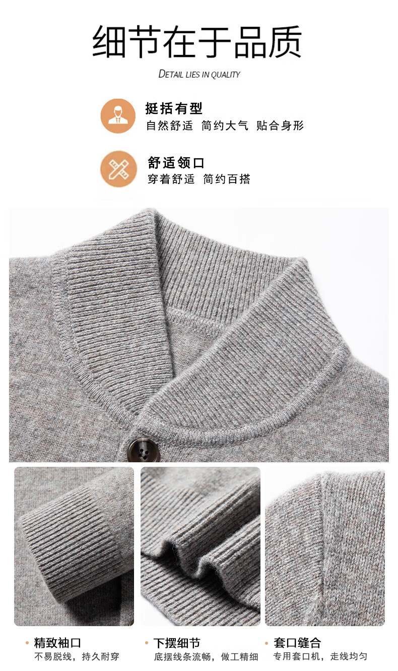 Pierre Cardin high-end men's 100% goat cashmere cardigan autumn and winter new thickened warm sweater sweater jacket gray camel L 170/recommended 115-130Jin Jin equals 0.5 kg