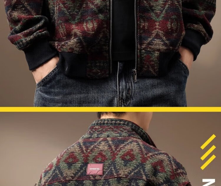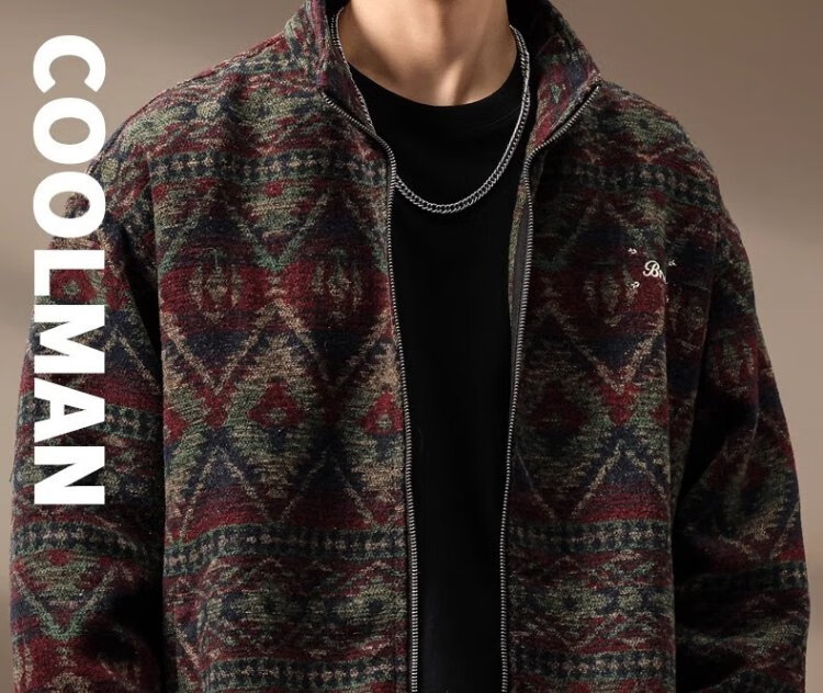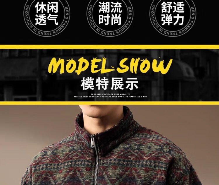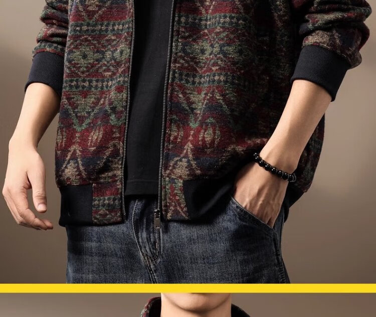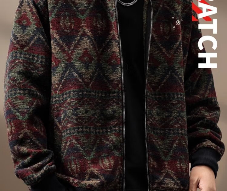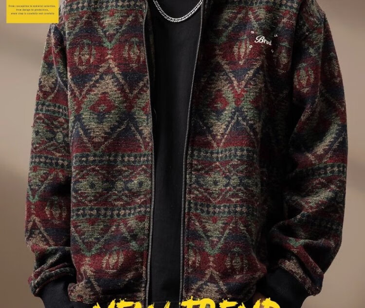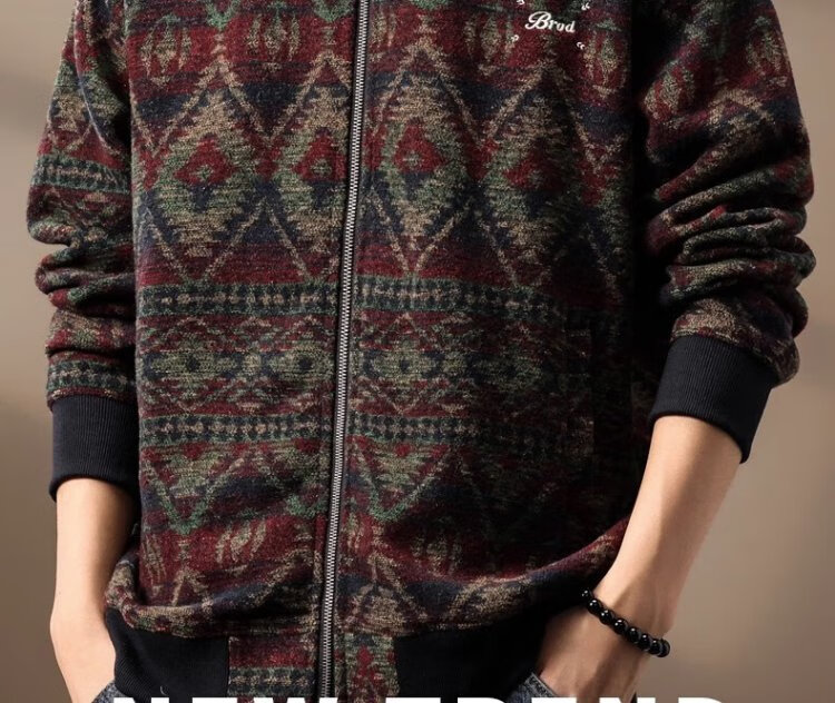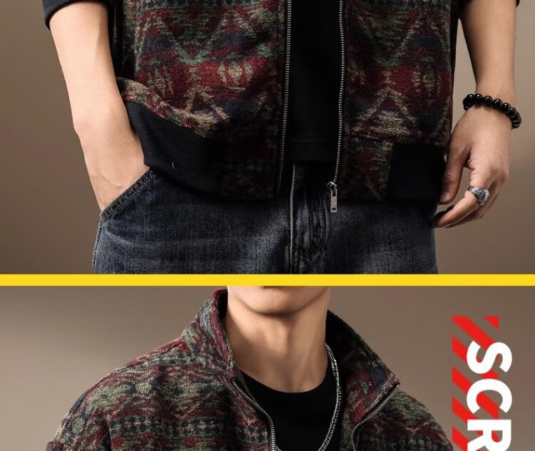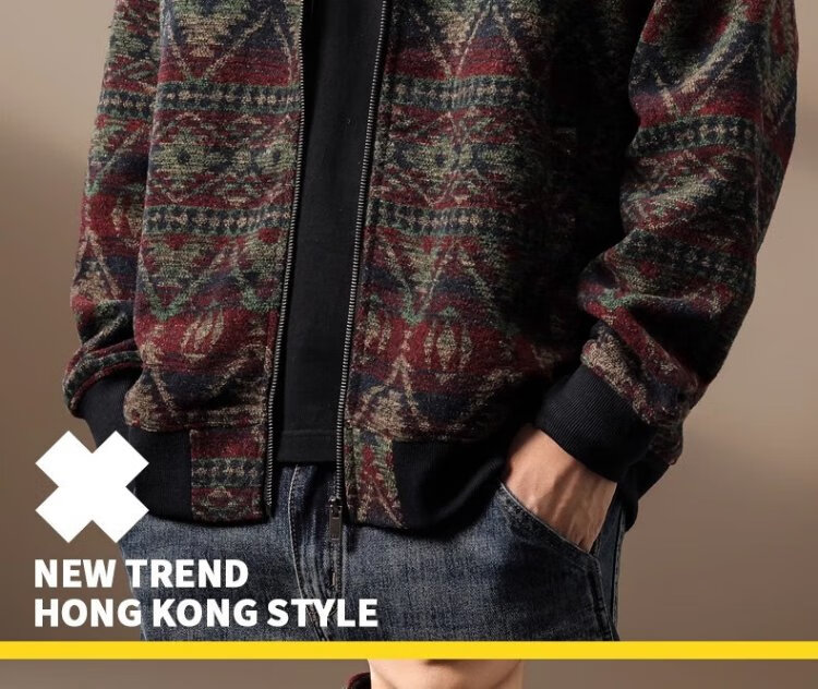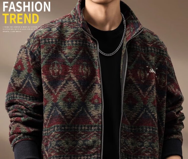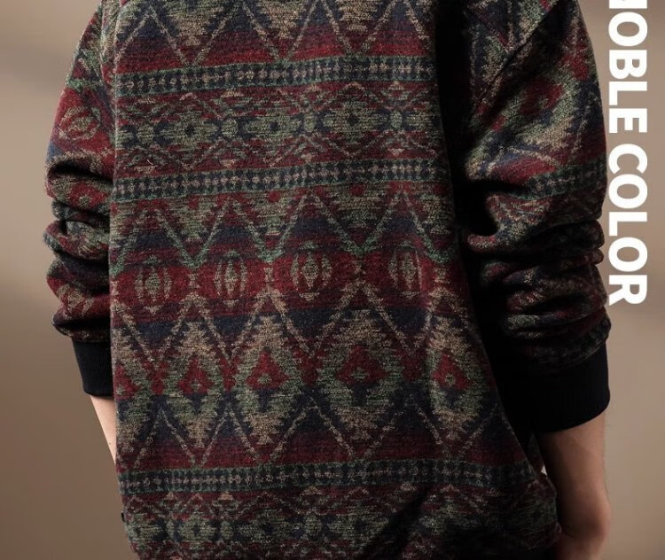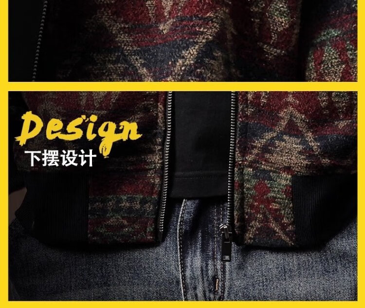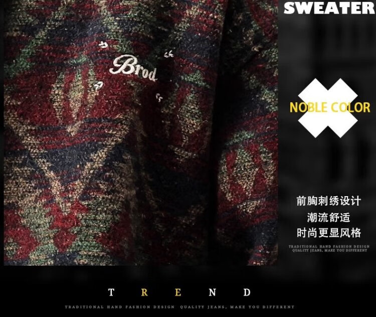 ROMON high-end ethnic style wool knitted jacket men's autumn and winter loose large size heavy retro cardigan sweater men's fashion red XL suitable for 140-160Jin Jin equals 0.5 kg