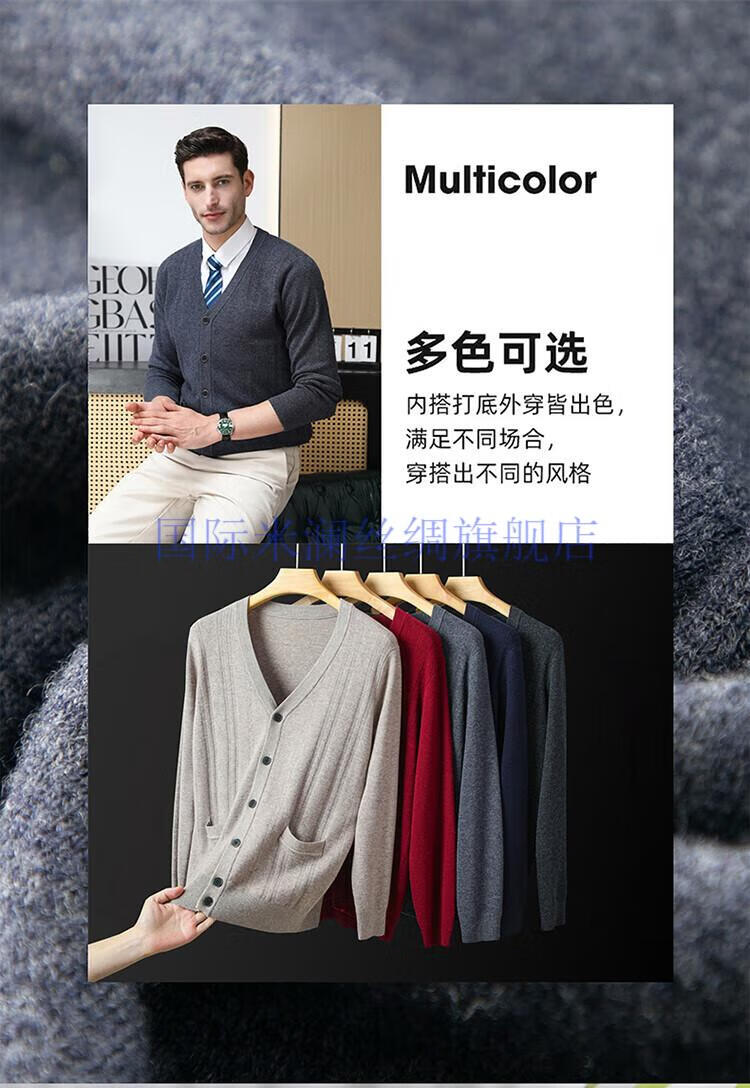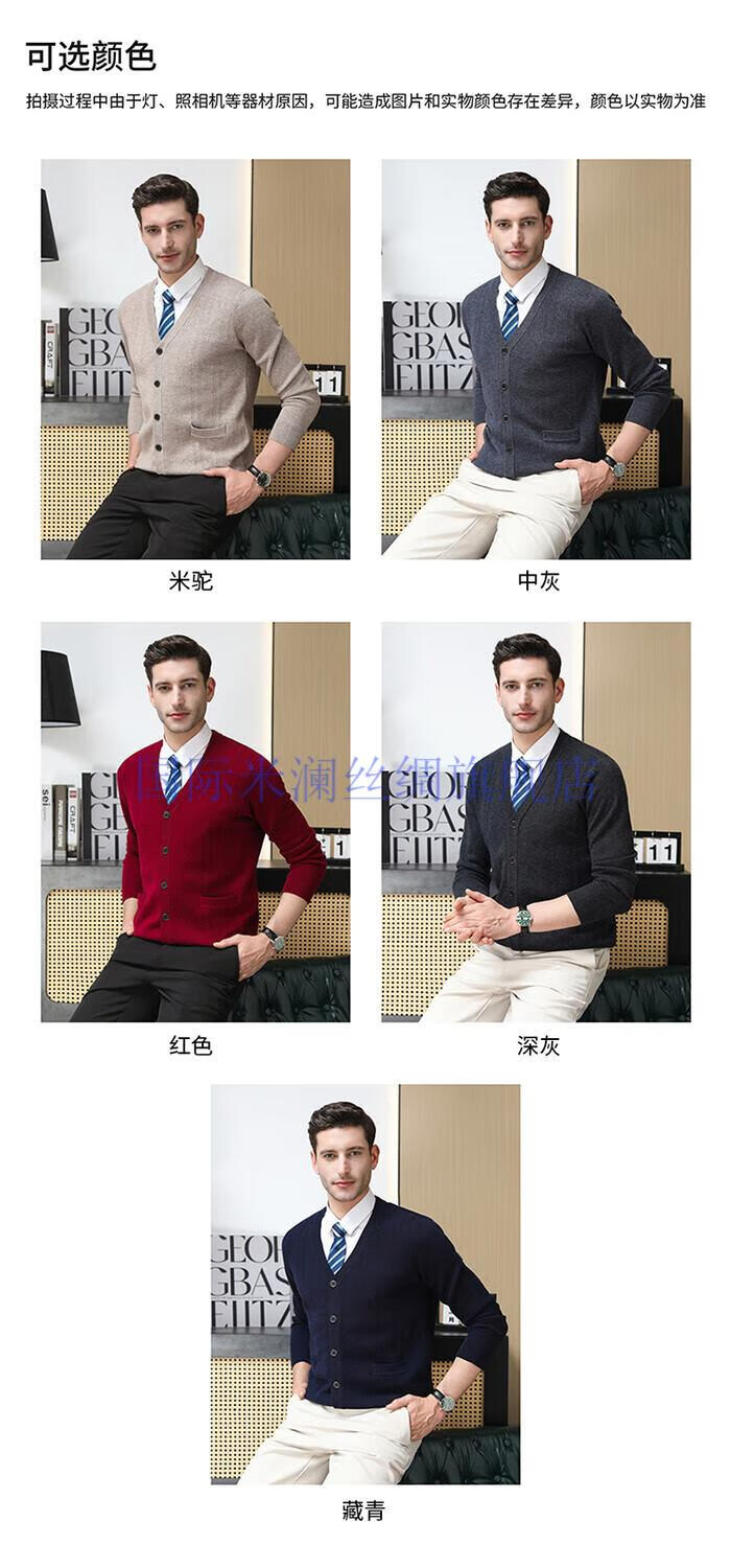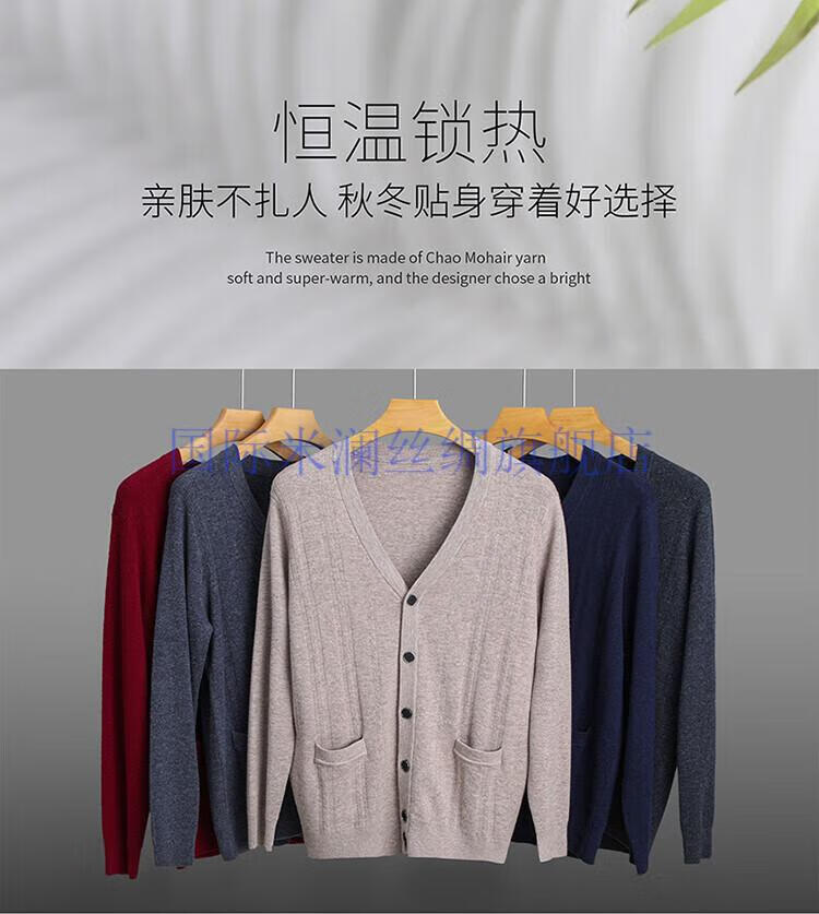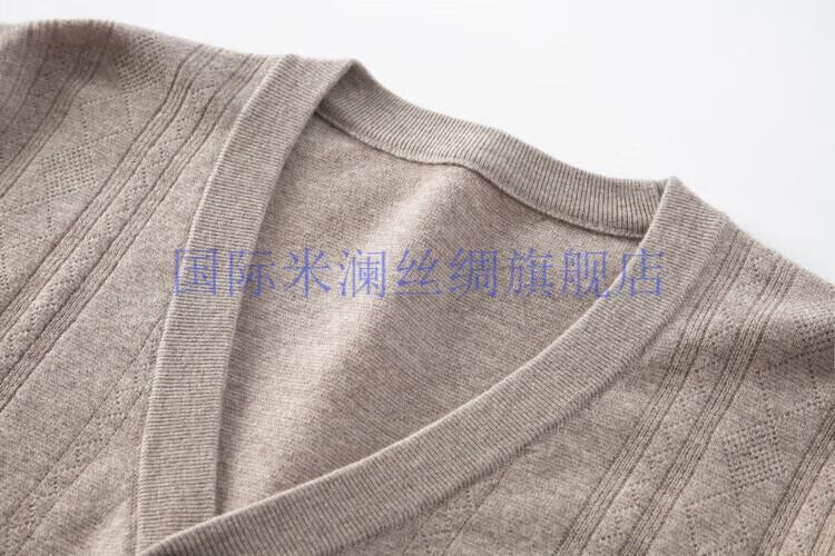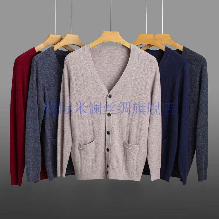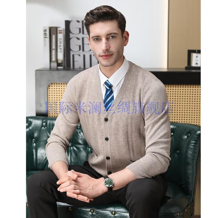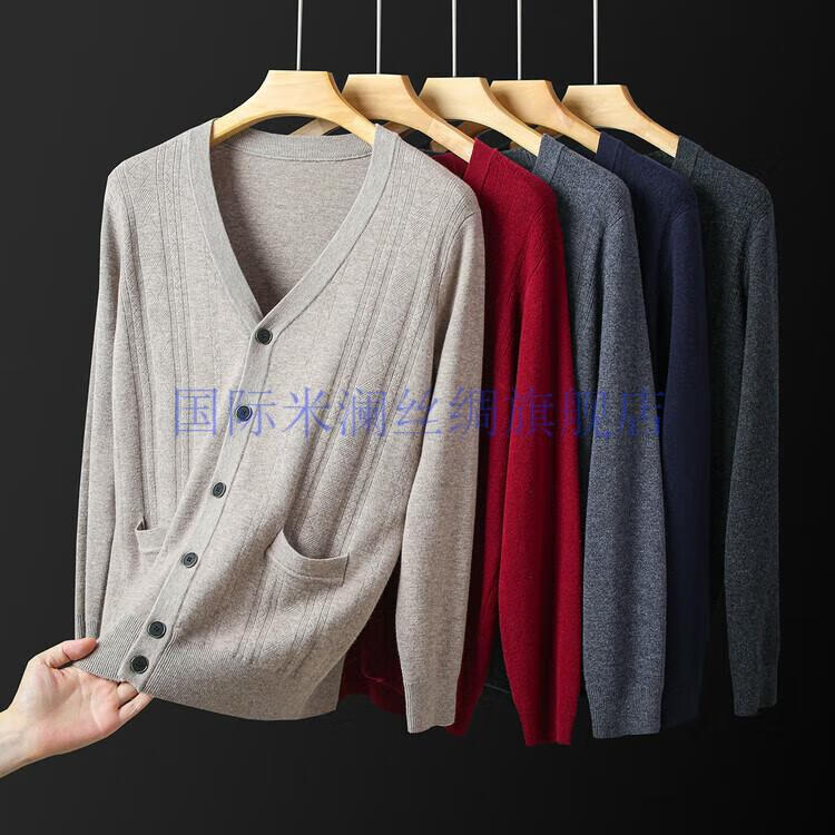 International Milan light luxury high-end 100% pure wool sweater men's cardigan V-neck thickened warm sweater for young and middle-aged people for leisure time camel gift box packaging L 170