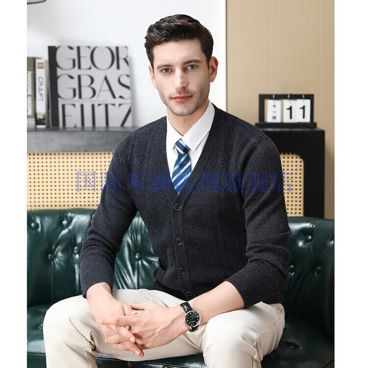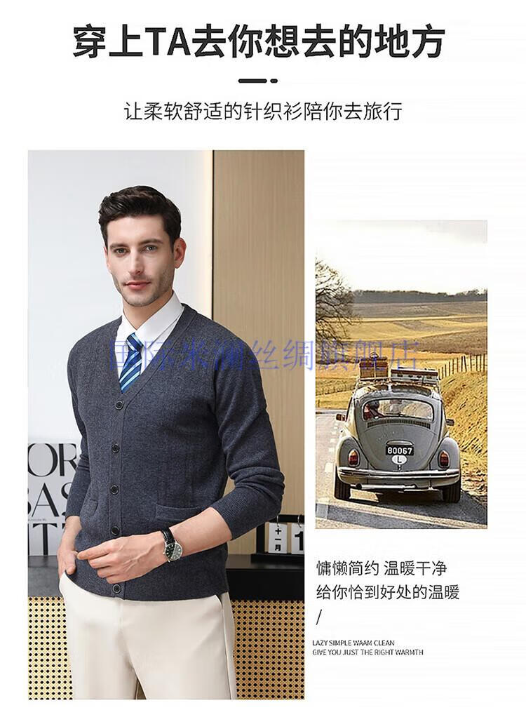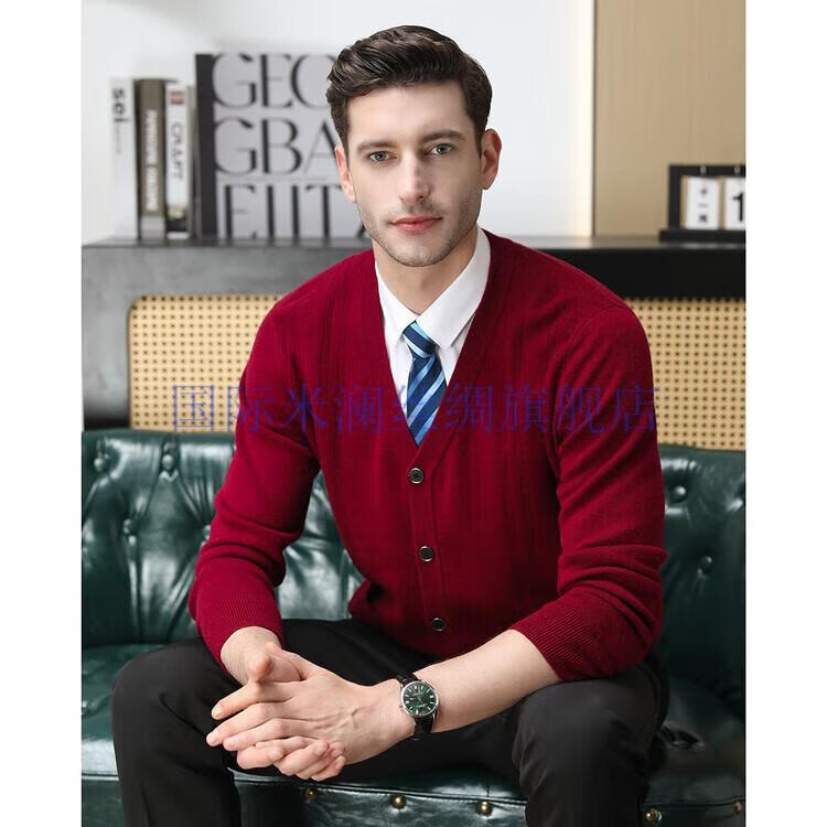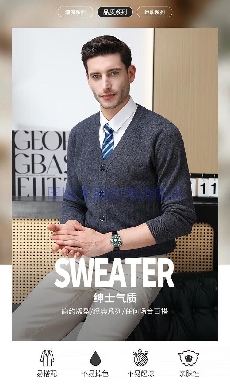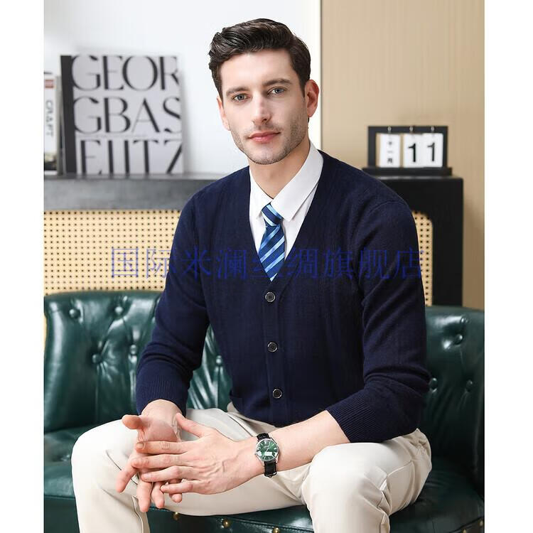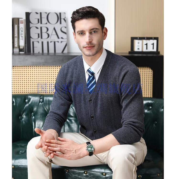 International Milan light luxury high-end 100% pure wool sweater men's cardigan V-neck thickened warm sweater for young and middle-aged people for leisure time camel gift box packaging L 170
