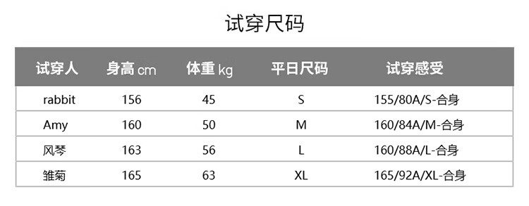 China (cm) 160-165/84-86 165-170 / 88-90 167-172 / 92-96 168-173 / 98-102 170-176 / 106-110