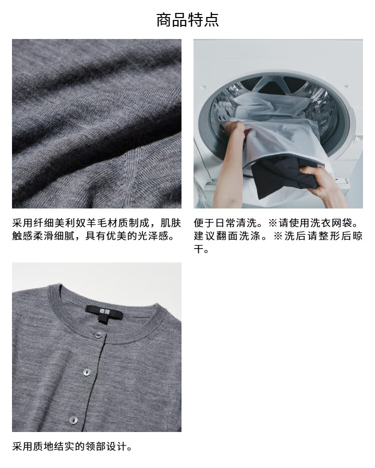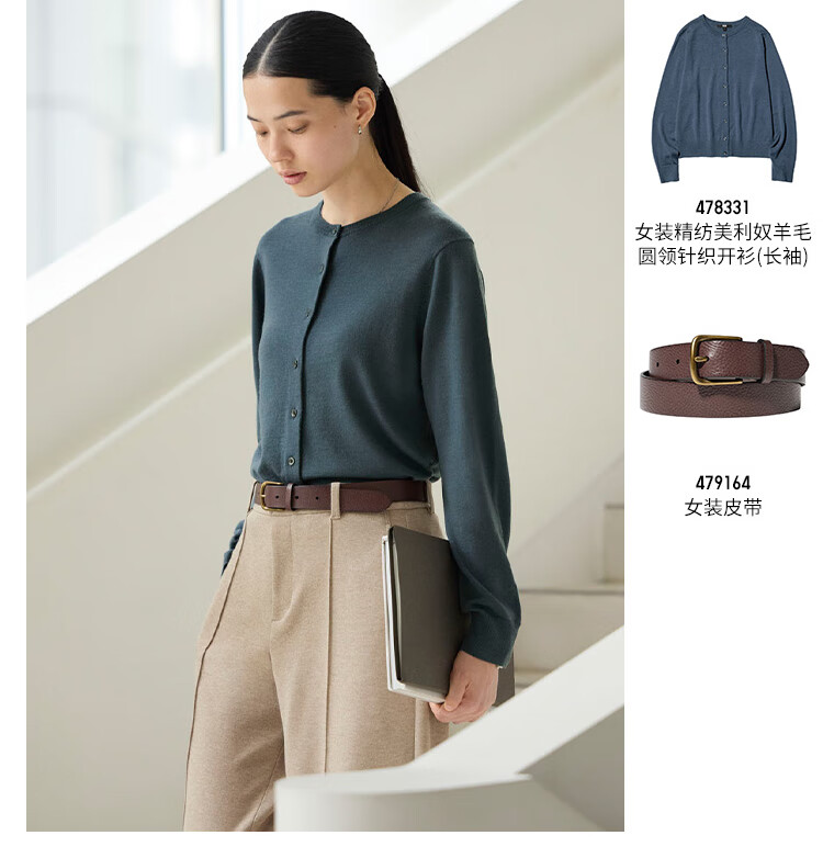 Uniqlo Women's Worsted Merino Wool Round Neck Knitted Cardigan/Long Sleeve Commuting 478331 68 Dark Blue L