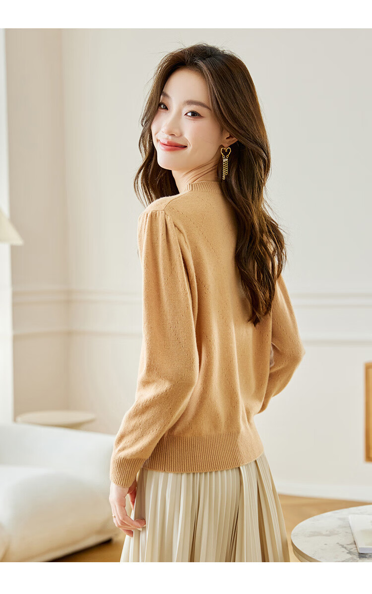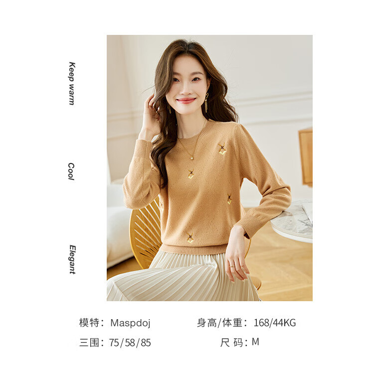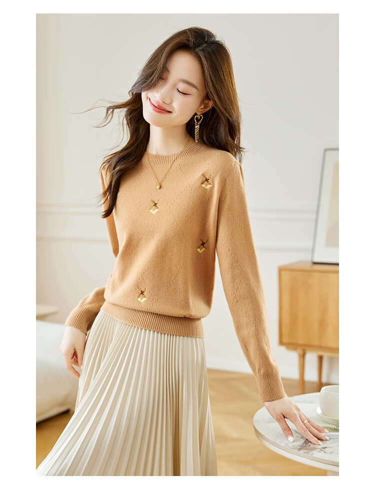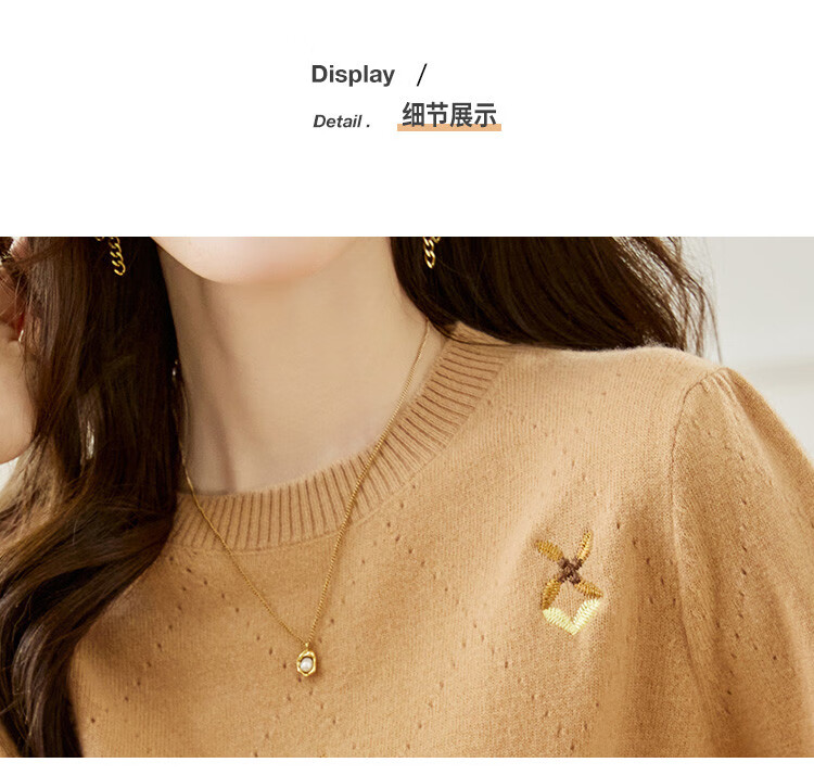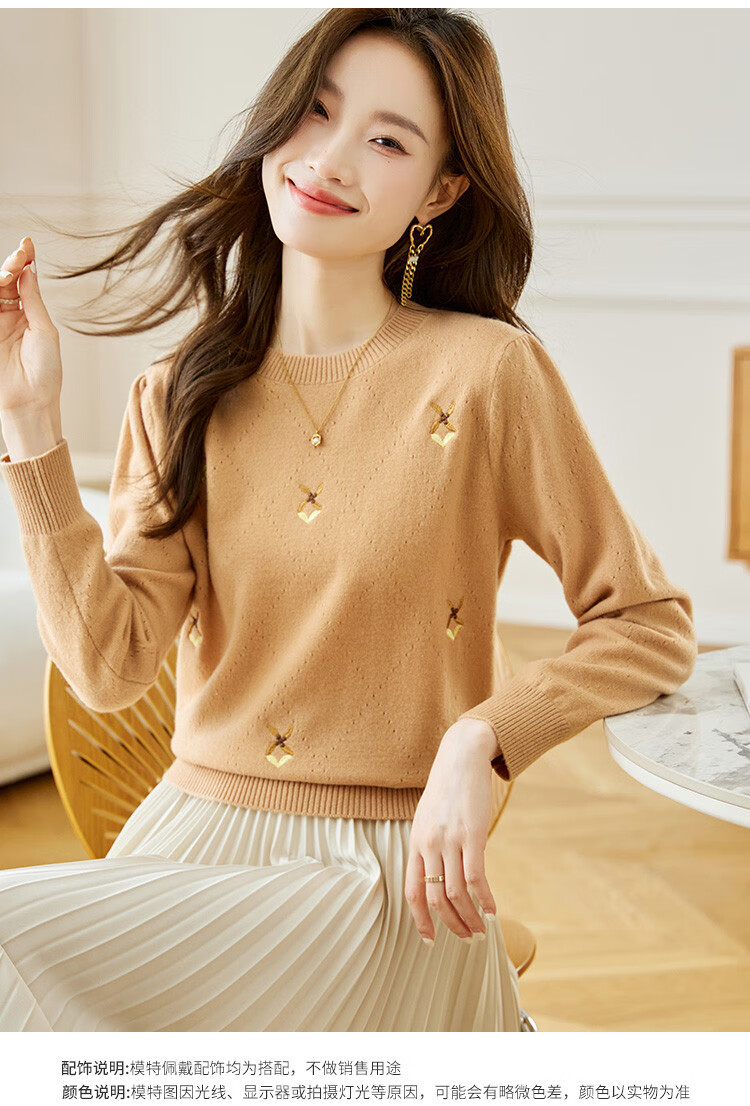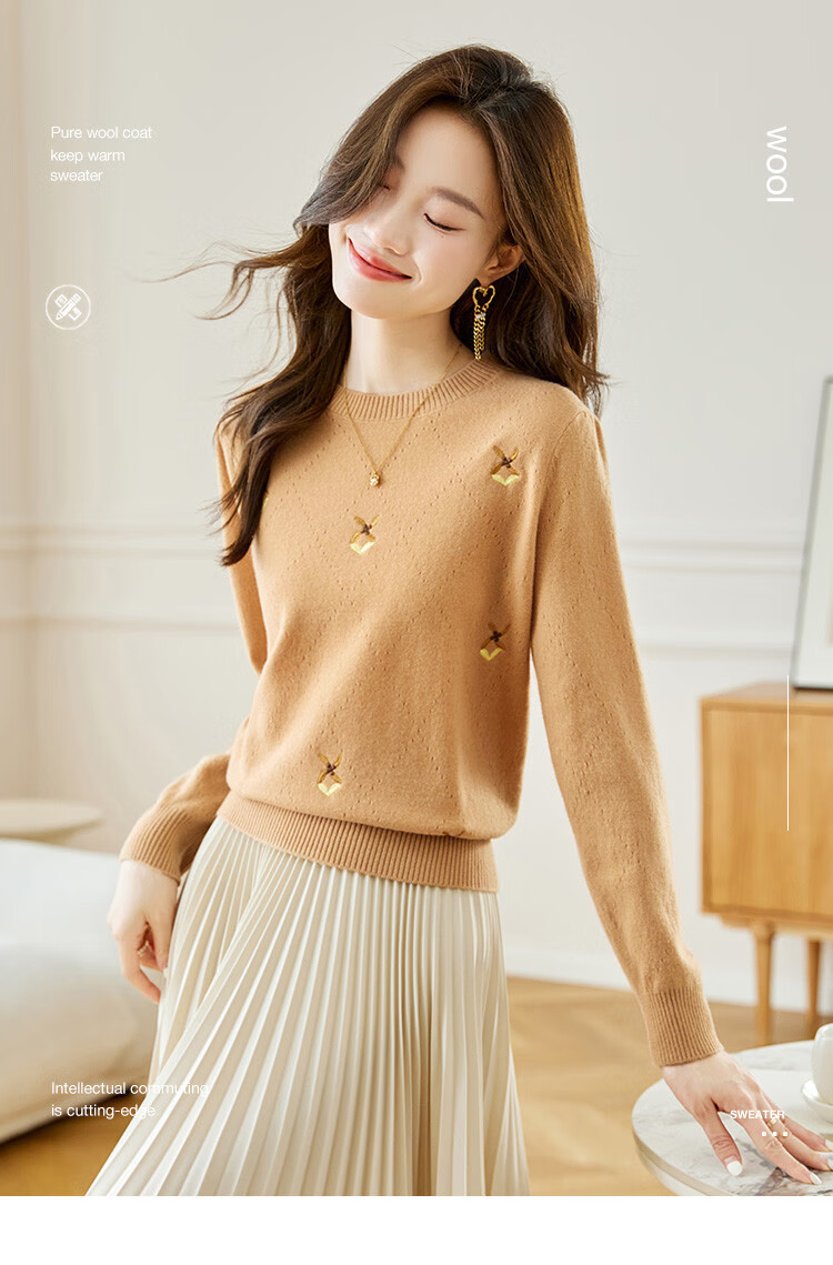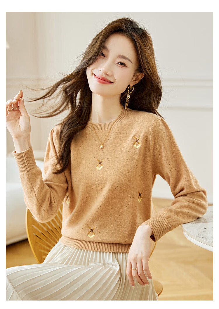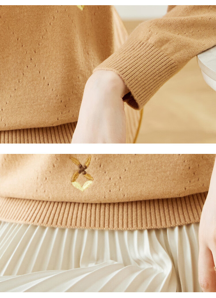 Shexi (Srcr) short pure wool sweater for women 100% wool sweater with autumn and winter rhombus embroidered knitted bottoming shirt