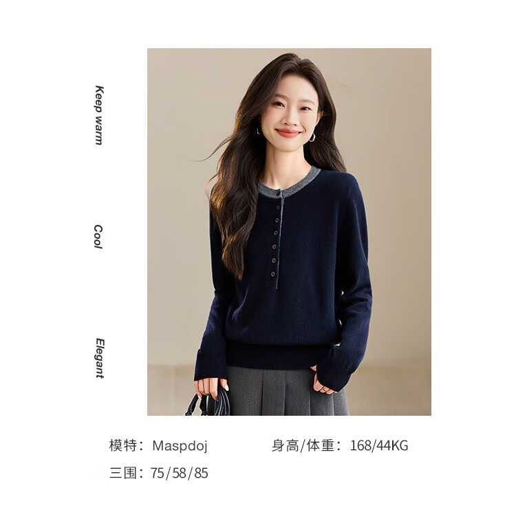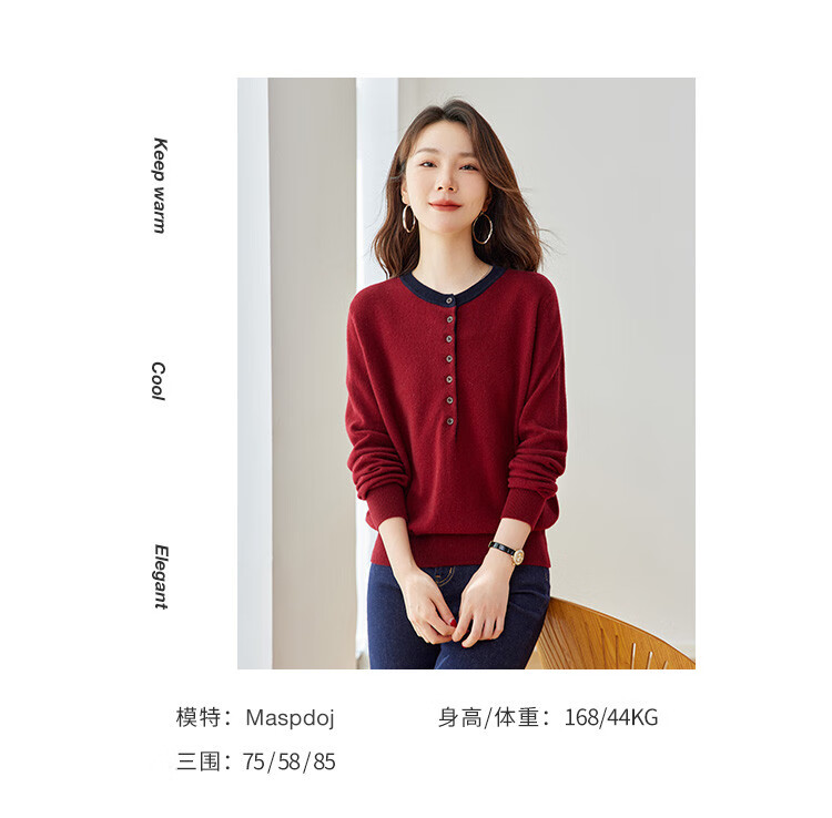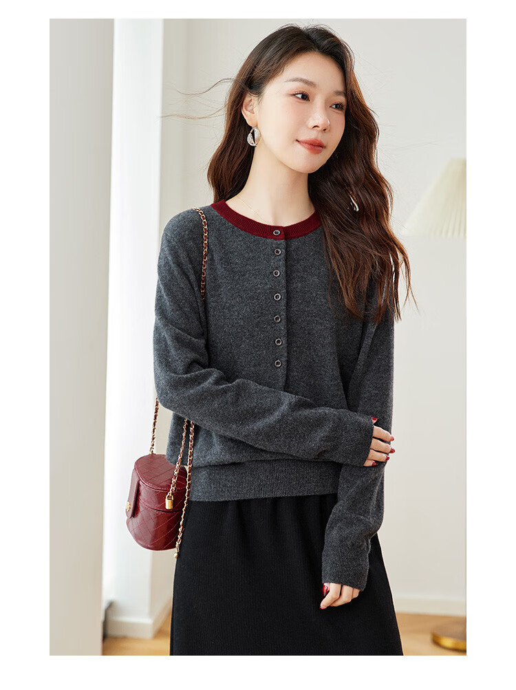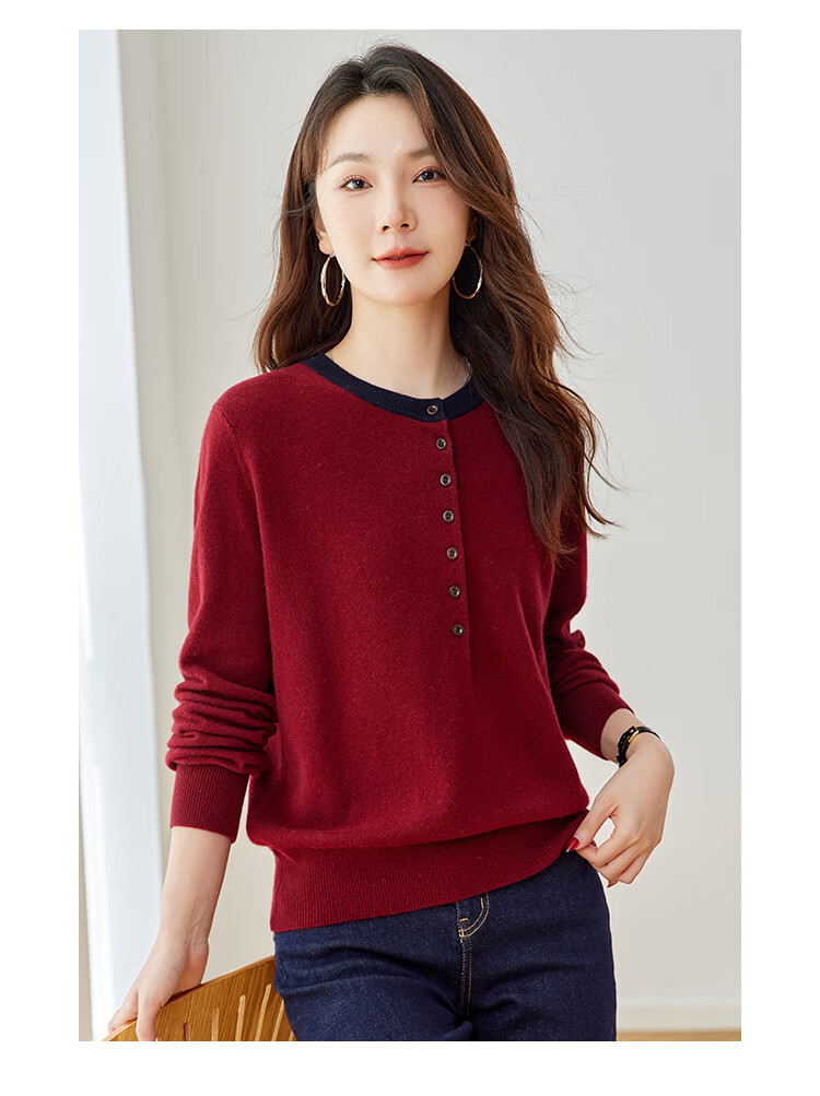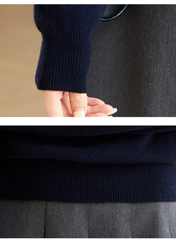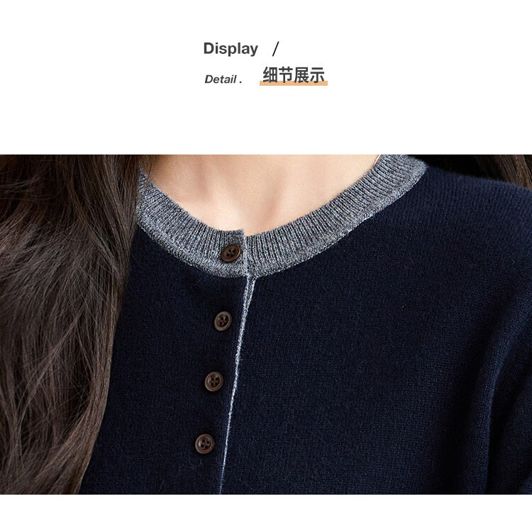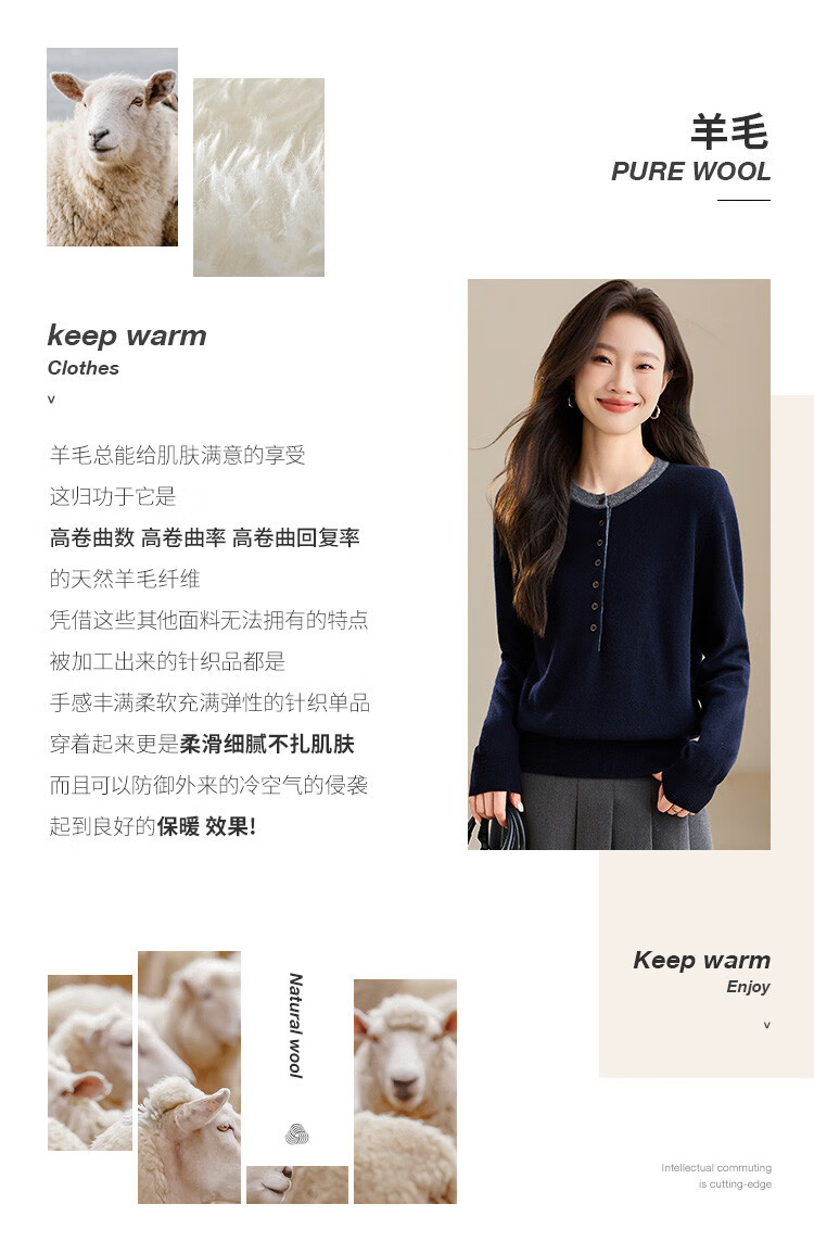 Shexi (Srcr) fake two-piece pure wool sweater for women, 100% wool inner layer, autumn and winter short loose contrasting color knitted sweater