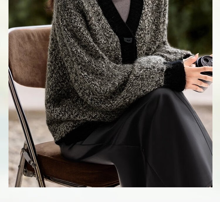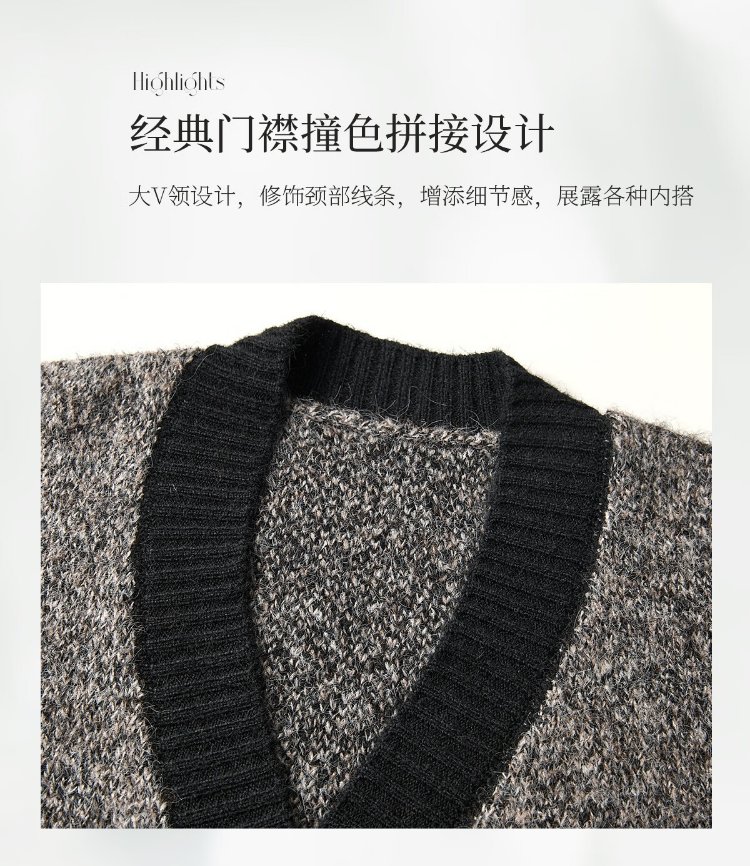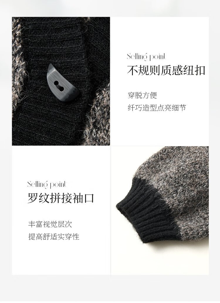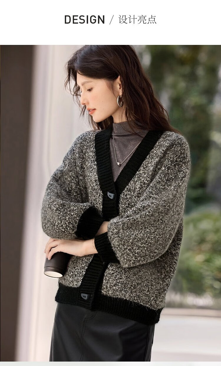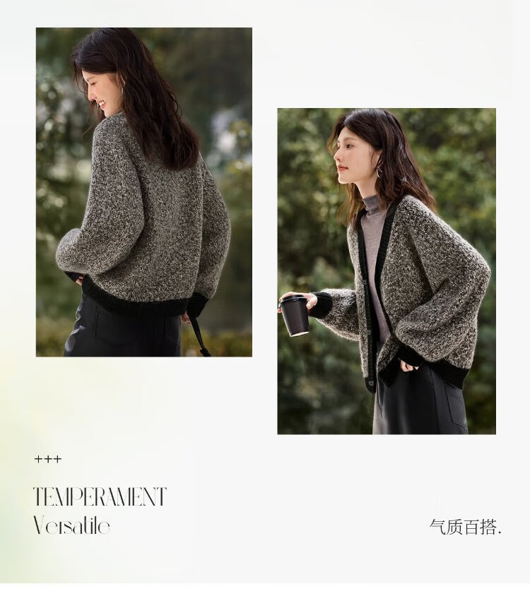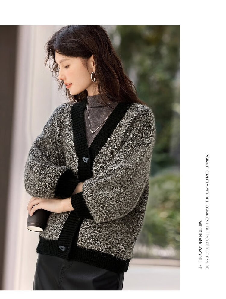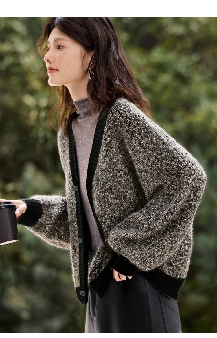 She enjoys autumn and winter sweater coat women's v-neck retro contrasting knitted cardigan lazy style loose sweater outer wear women's T54Z113