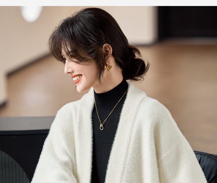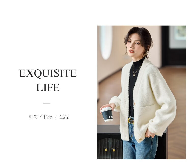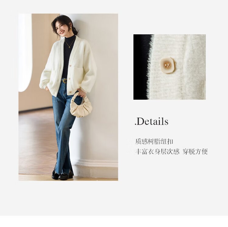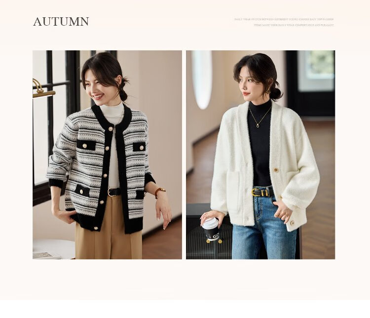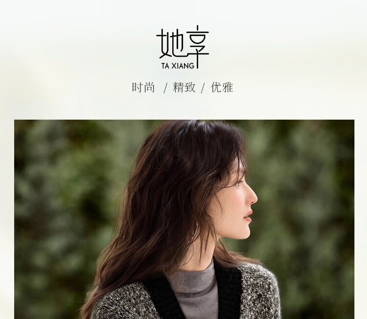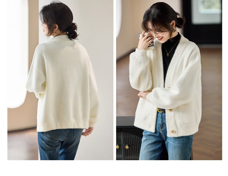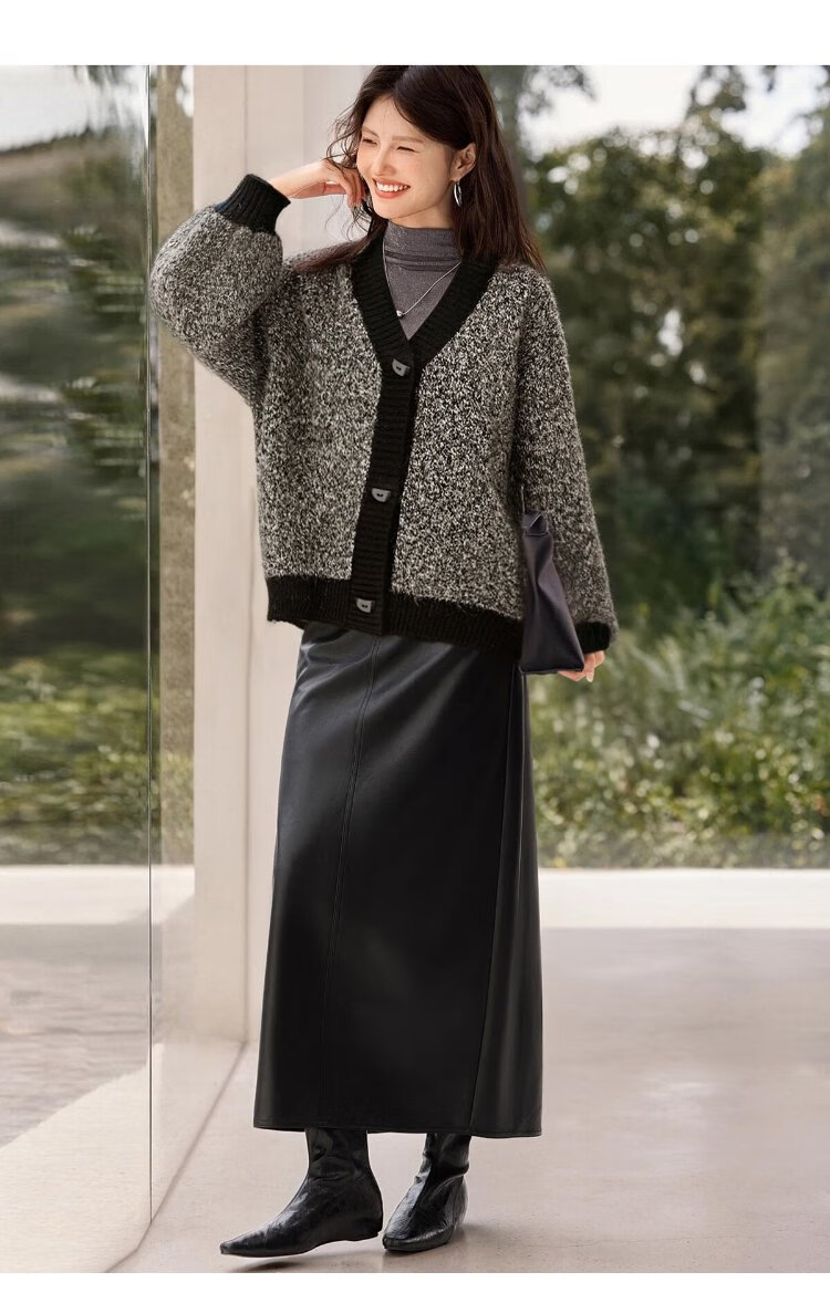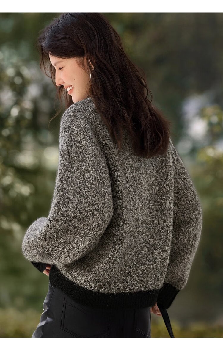 She enjoys autumn and winter sweater coat women's v-neck retro contrasting knitted cardigan lazy style loose sweater outer wear women's T54Z113