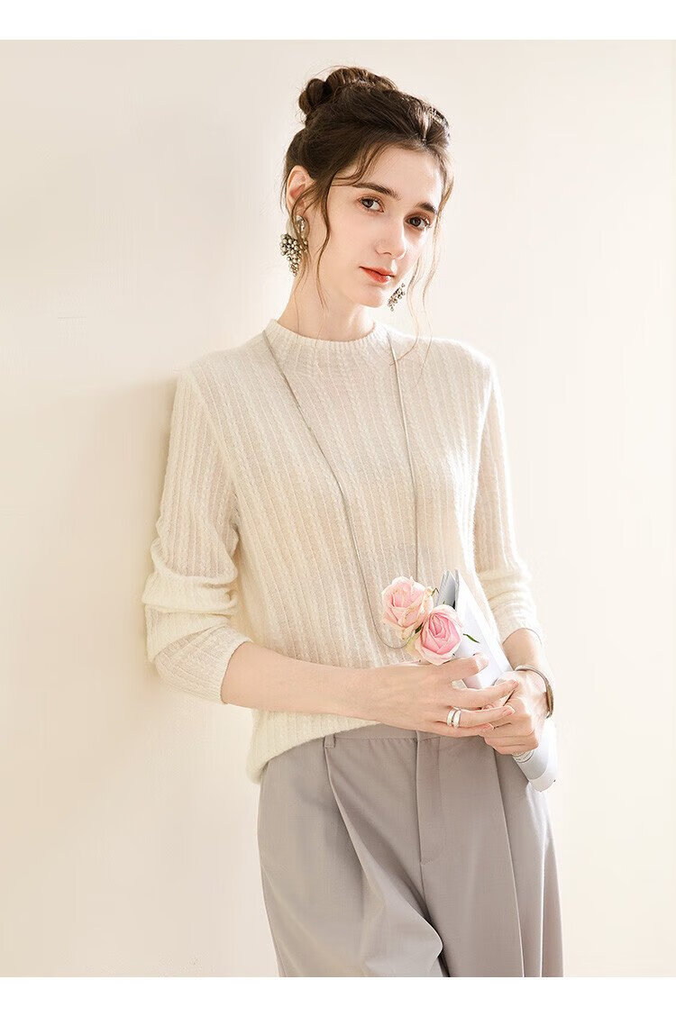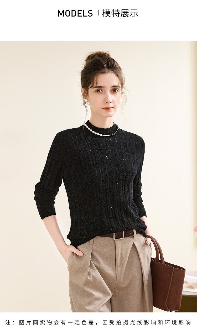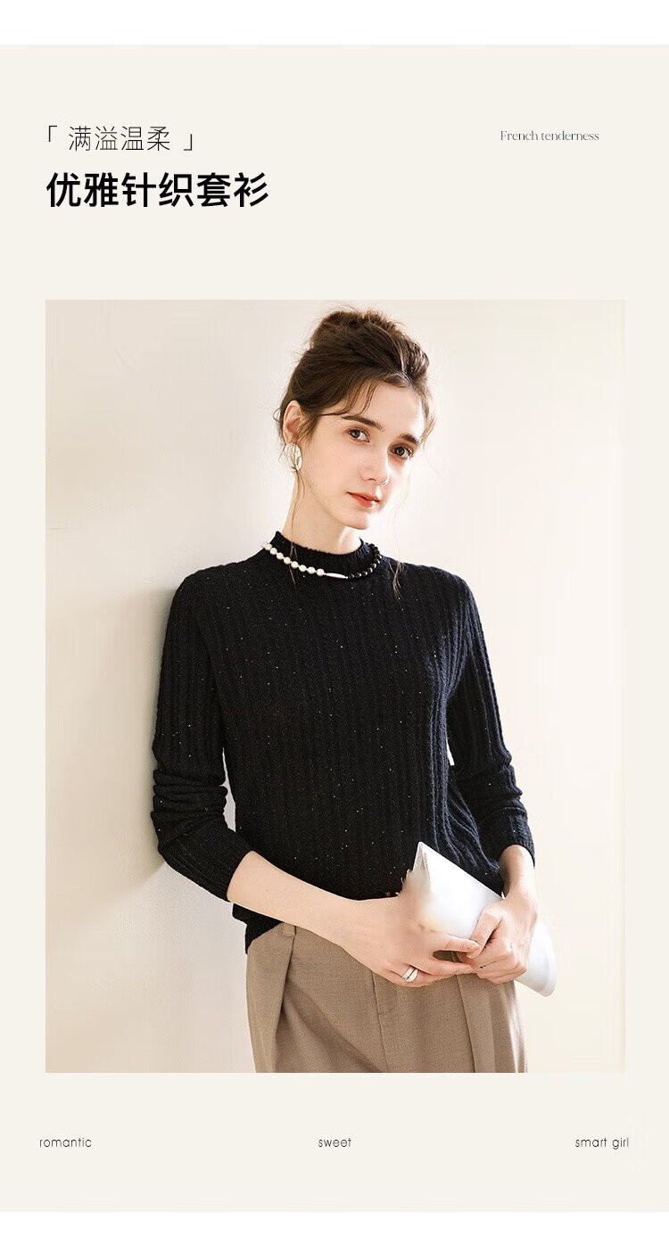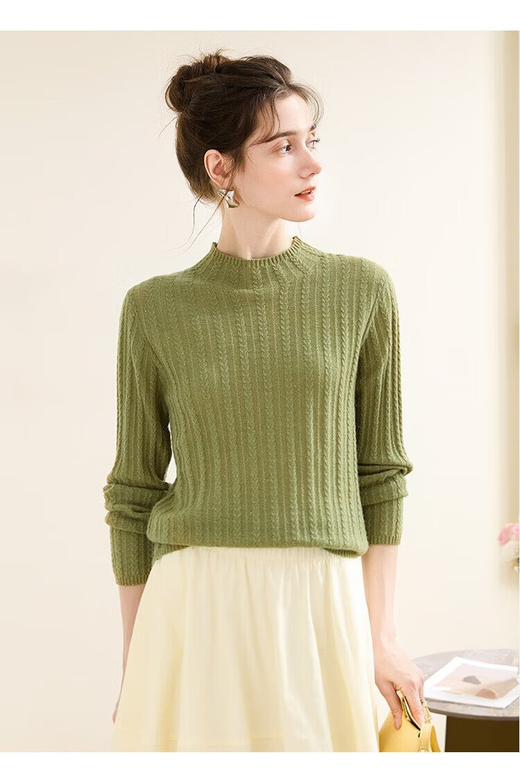 TUHUANG Cashmere 26 Count Cable Flower Star Slimming Bottoming Shirt 2025 Autumn and Winter Half Turtleneck Women's Sweater