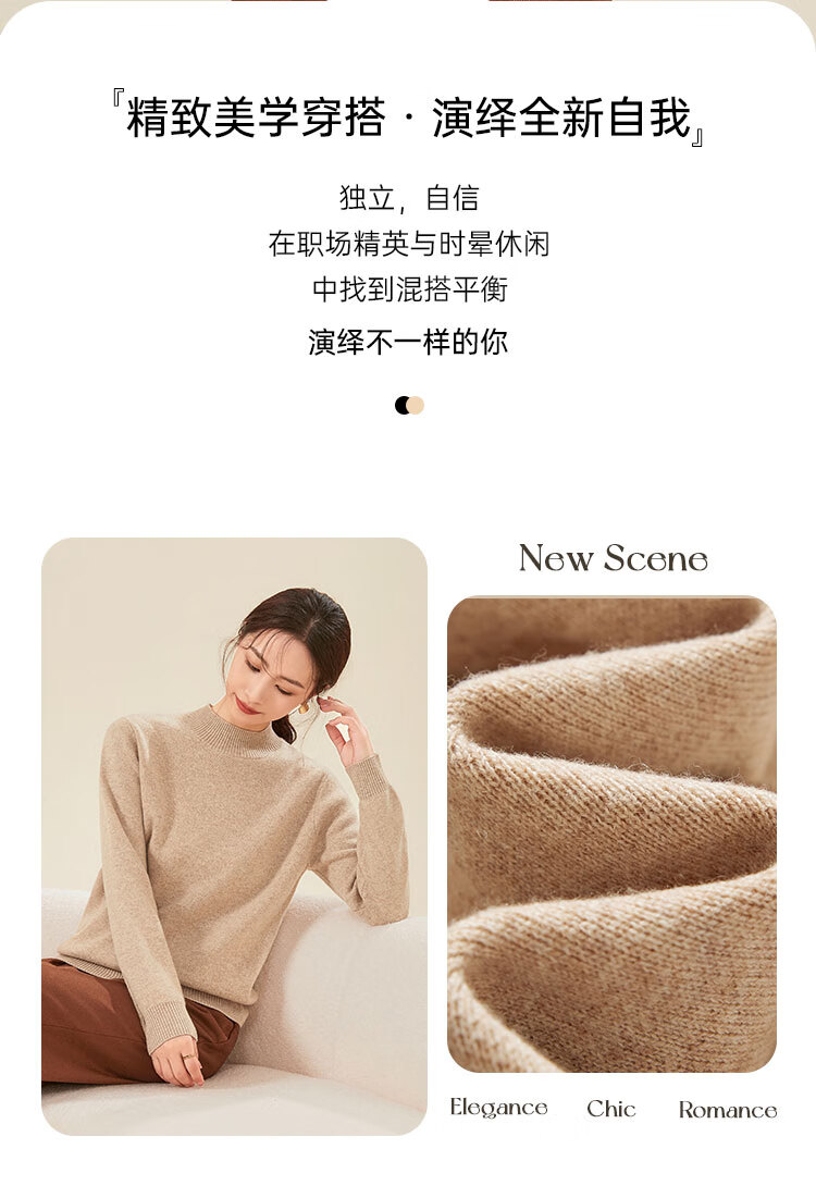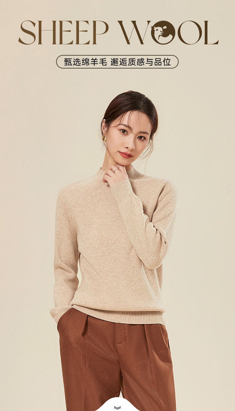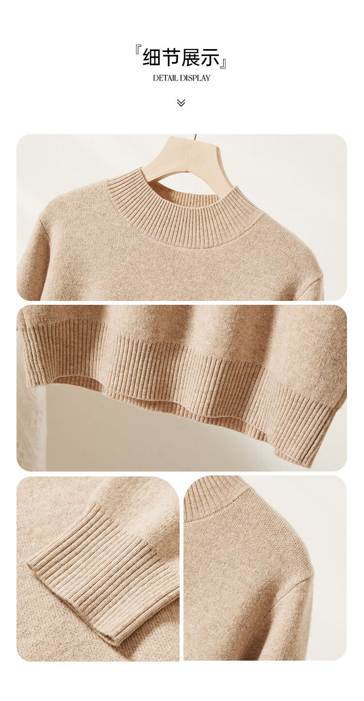 Chunzhu Autumn and Winter New 100% Sheep Wool Thick Warm Half-Turtleneck Sweater Basement Commuting Basic Women's Wool Sweater Burgundy L 115-130Jin Jin equals 0.5 kg