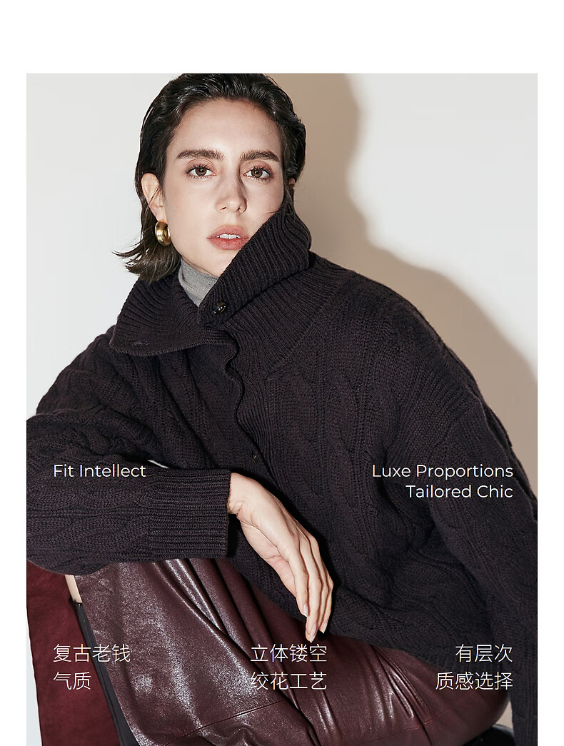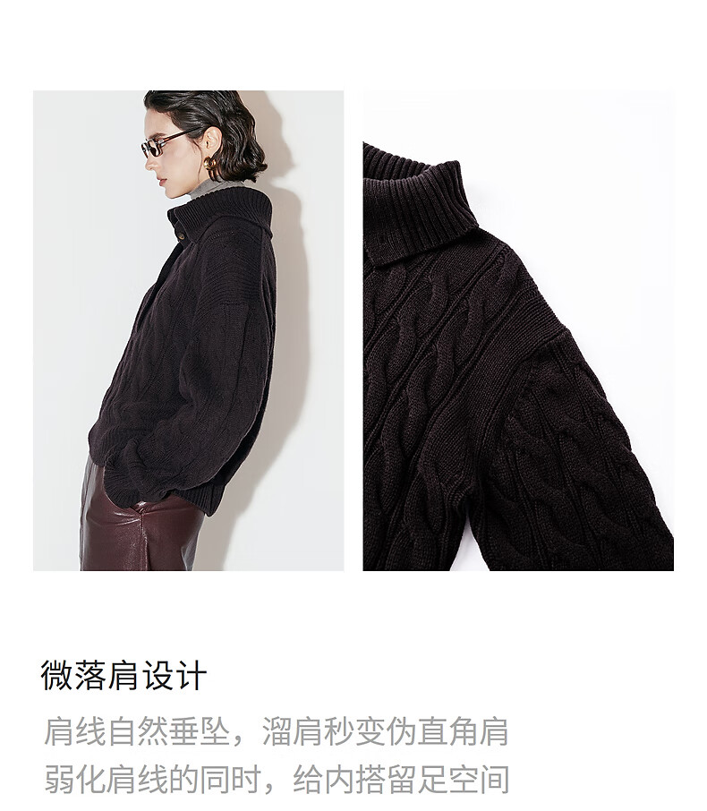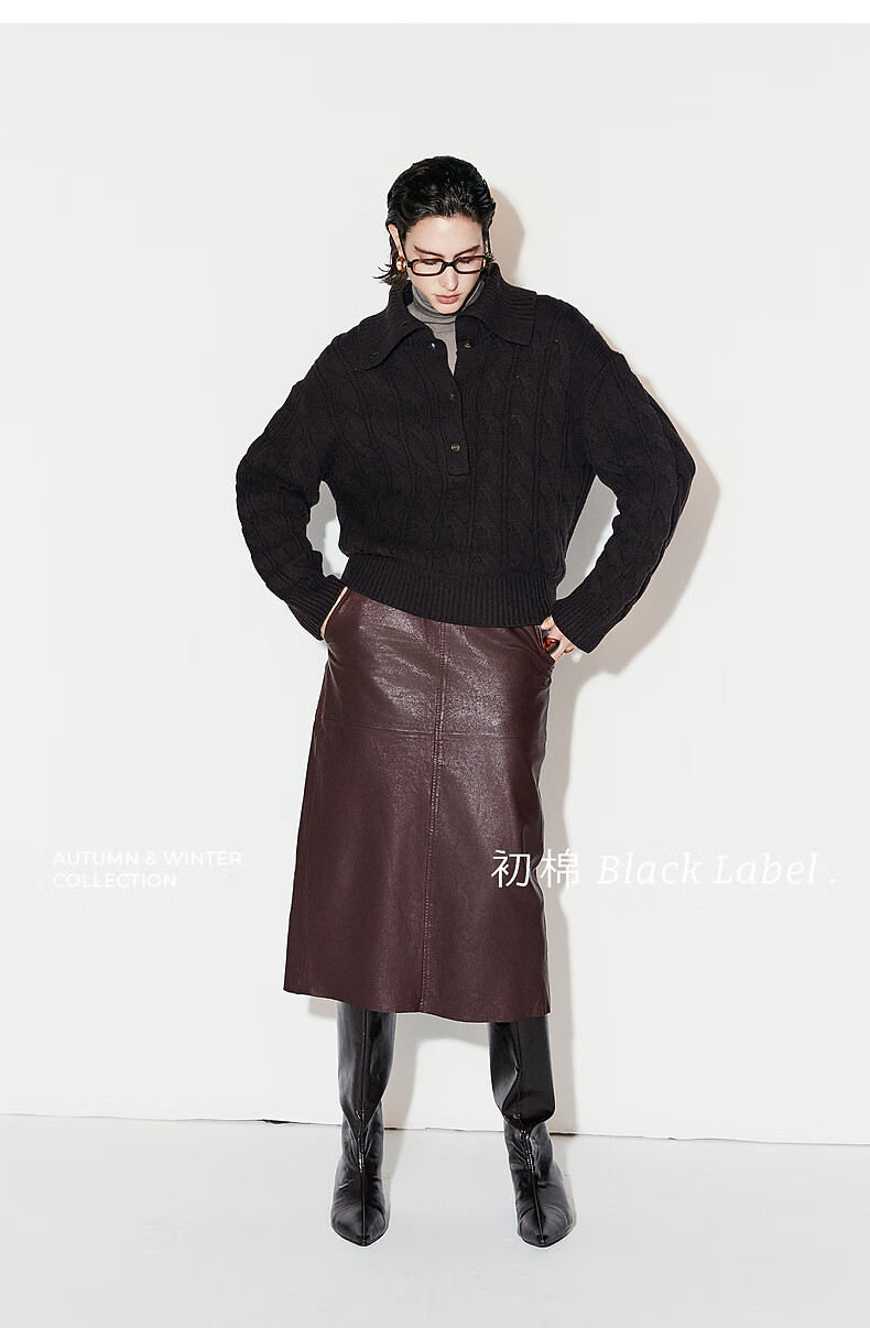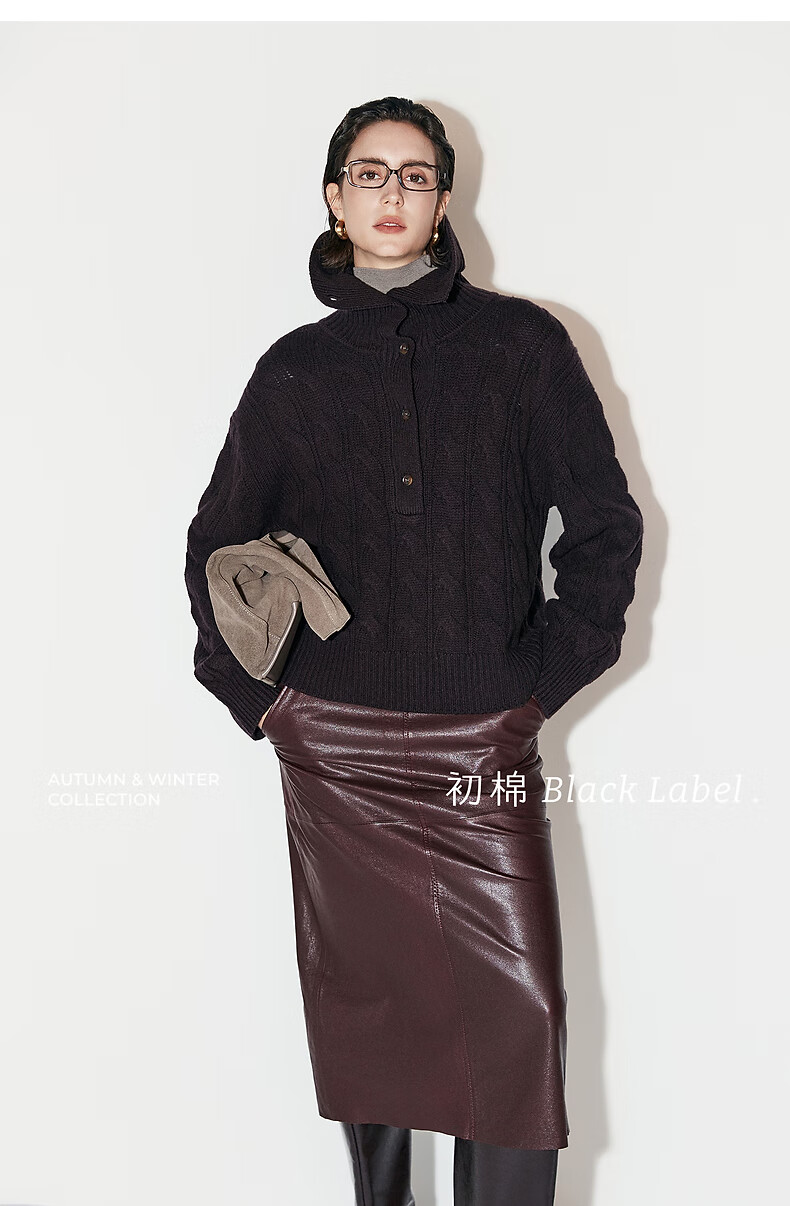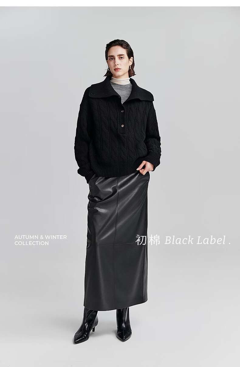 Chumian Black Label Hot Cocoa Chumian Large Lapel Cable Sweater for Women 25 Autumn and Winter Half Cardigan Knitted Sweater Retro Black S