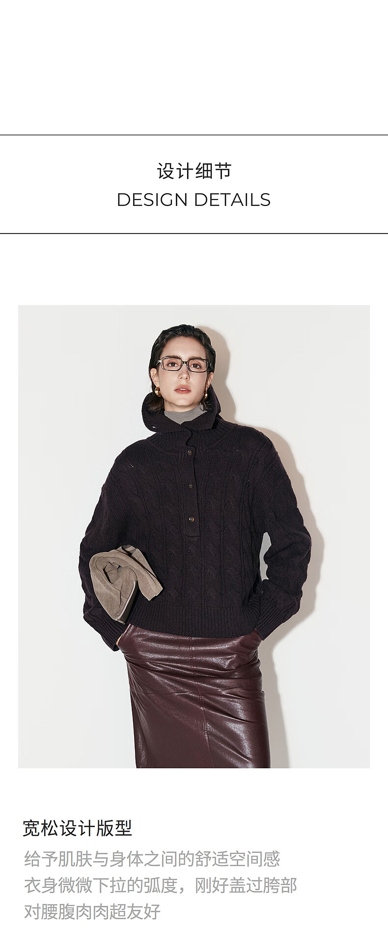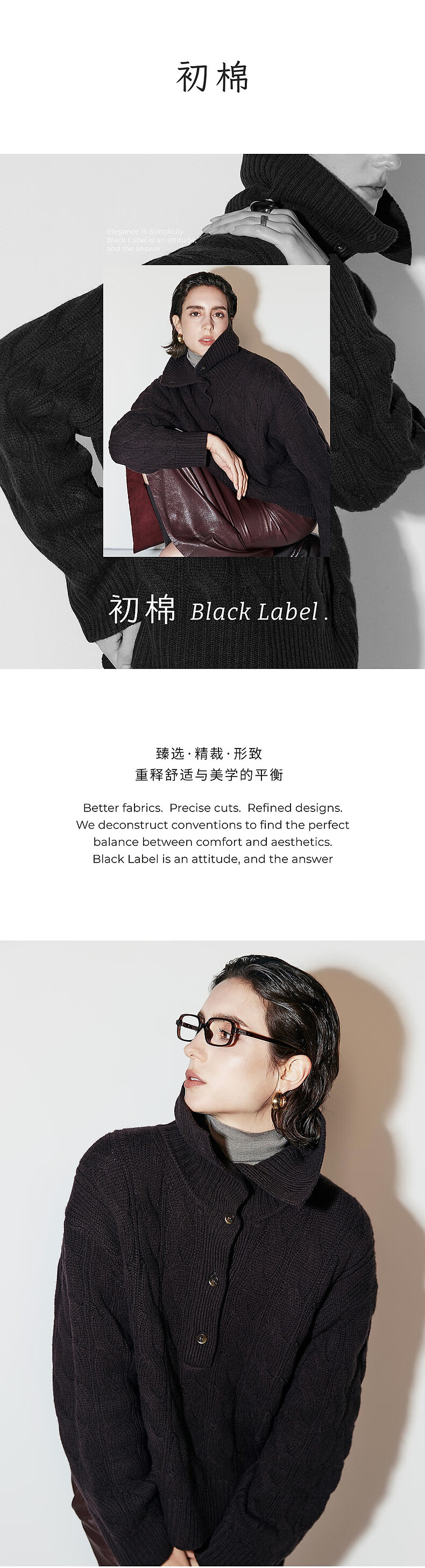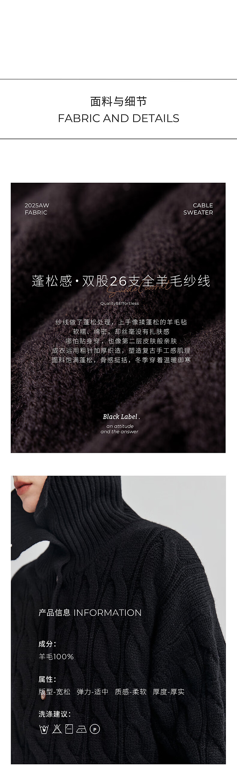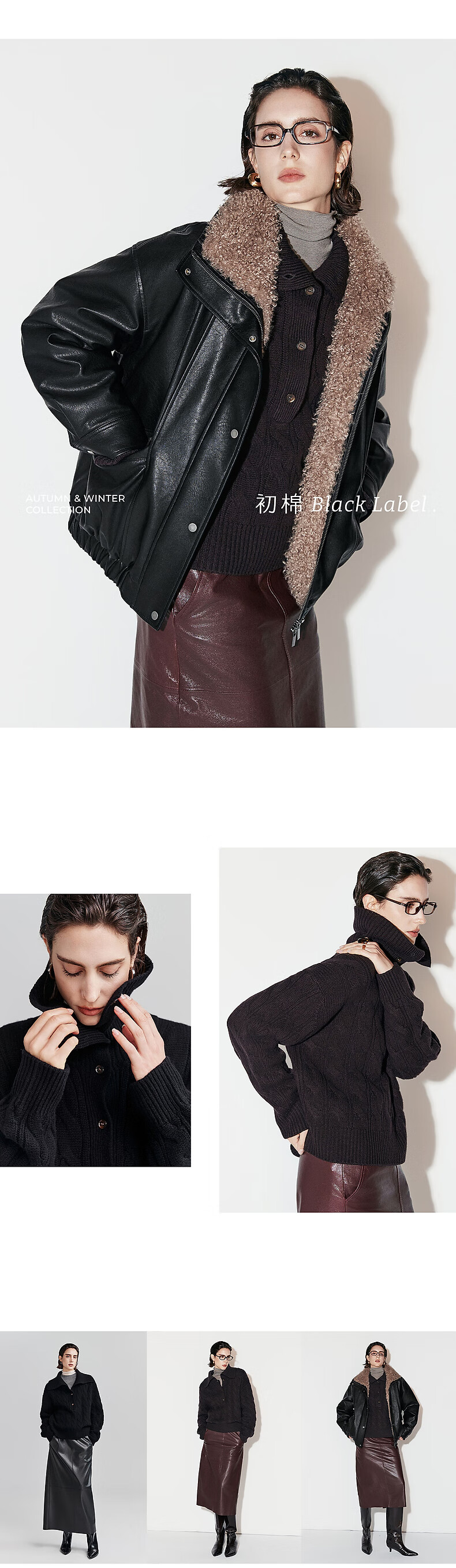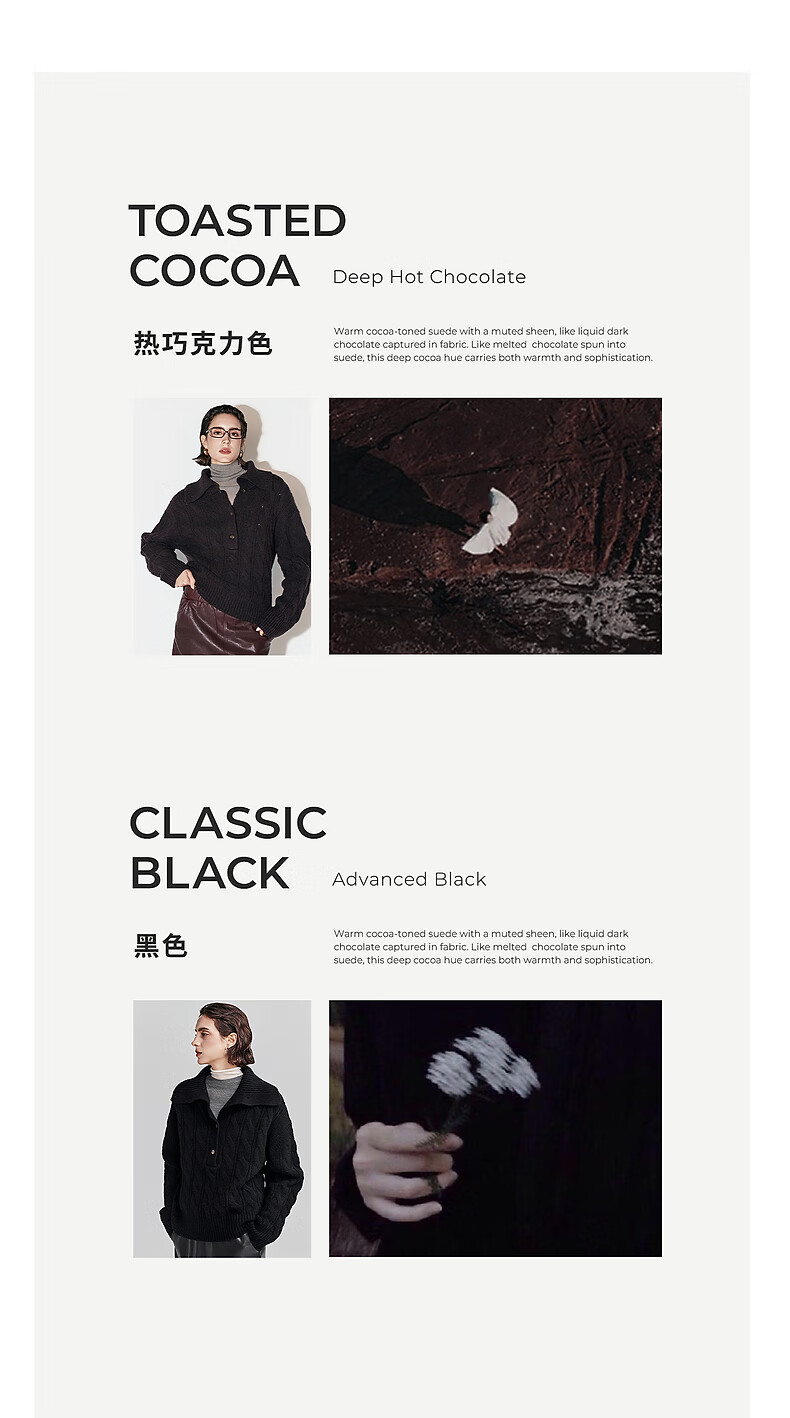 Chumian Black Label Hot Cocoa Chumian Large Lapel Cable Sweater for Women 25 Autumn and Winter Half Cardigan Knitted Sweater Retro Black S