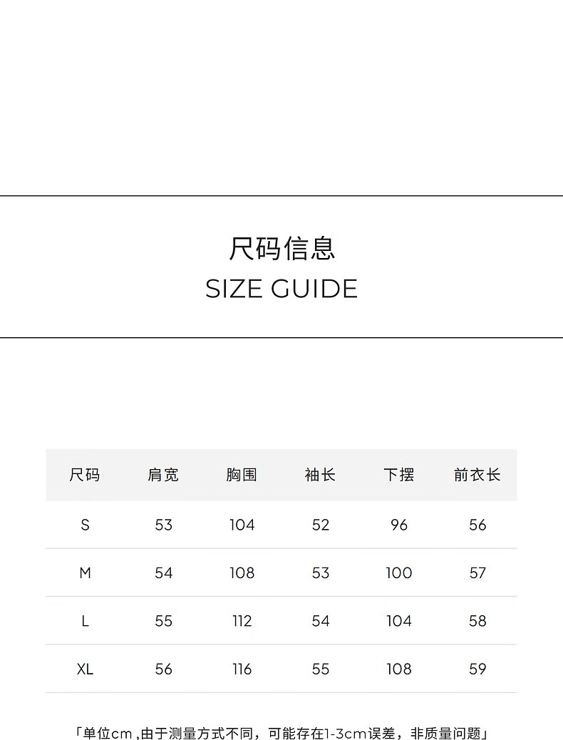 China (cm) 160-165/84-86 165-170 / 88-90 167-172 / 92-96 168-173 / 98-102 170-176 / 106-110