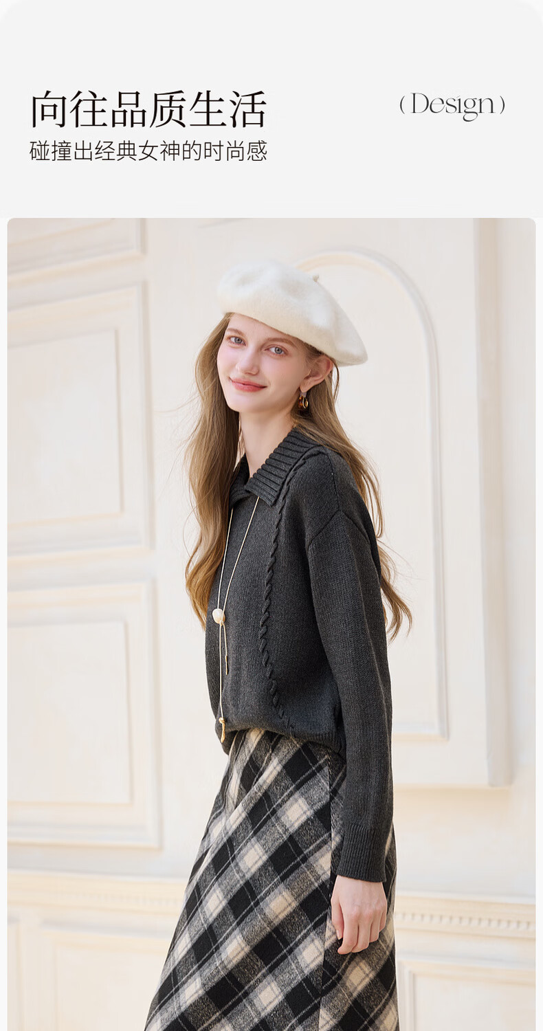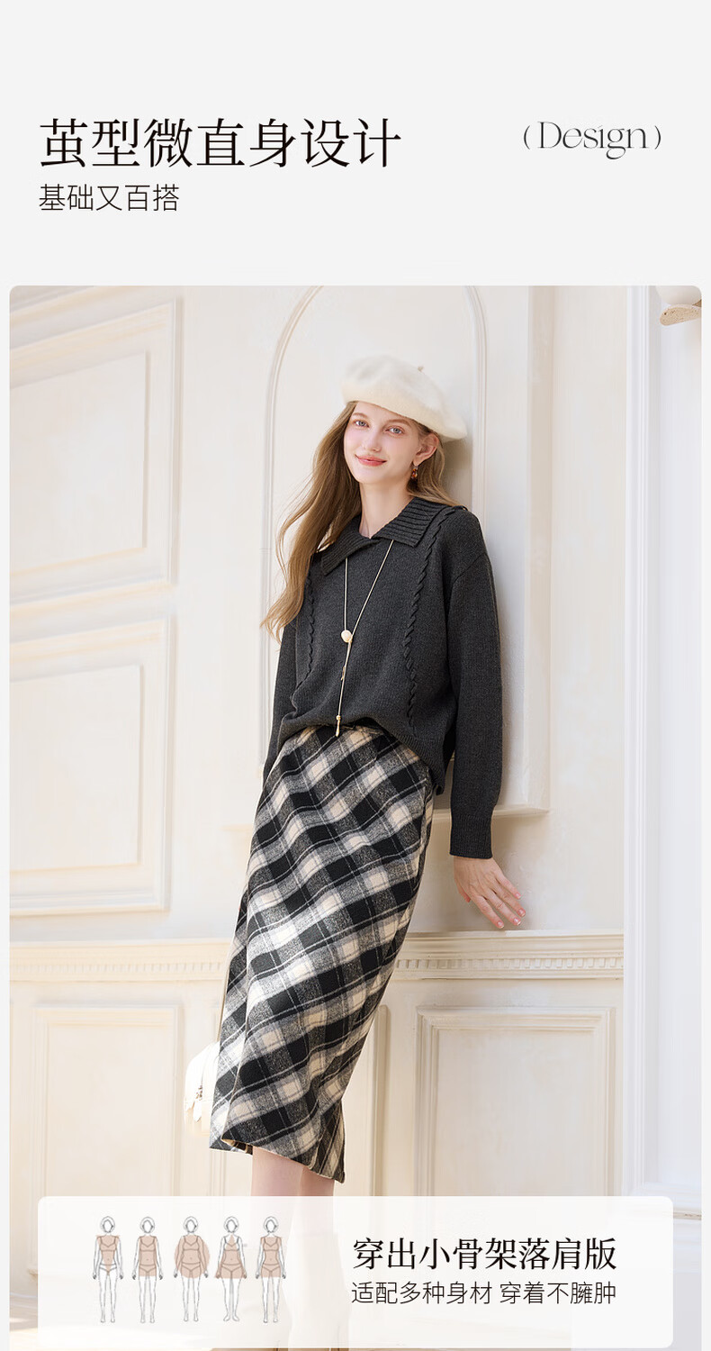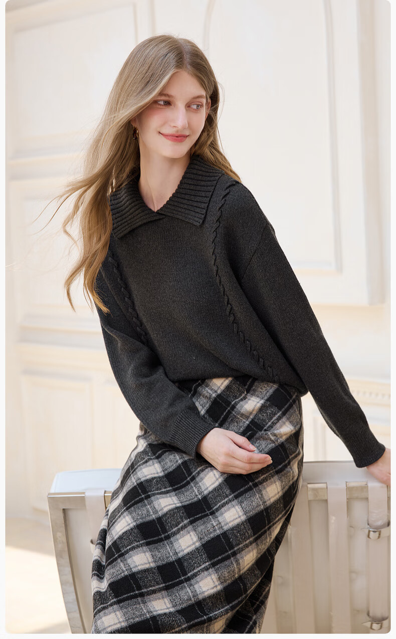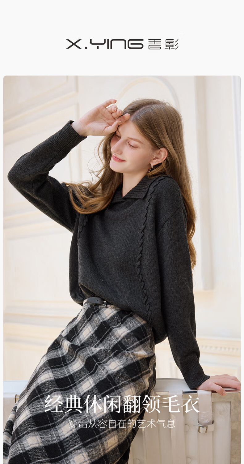 Xiangying Gray Lapel Sweater Women's 2025 Winter New Relaxed Pullover Loose Wool Sweater Top Dark Gray L 165/88A/110-125Jin Jin is equal to 0.5 kg