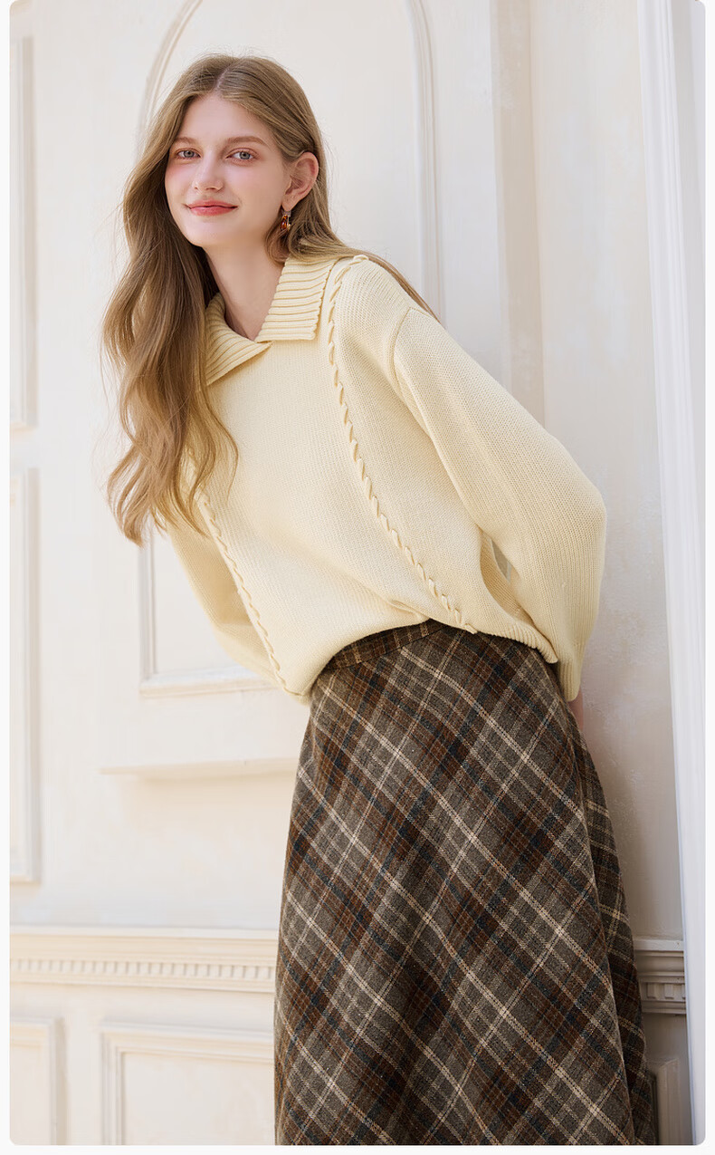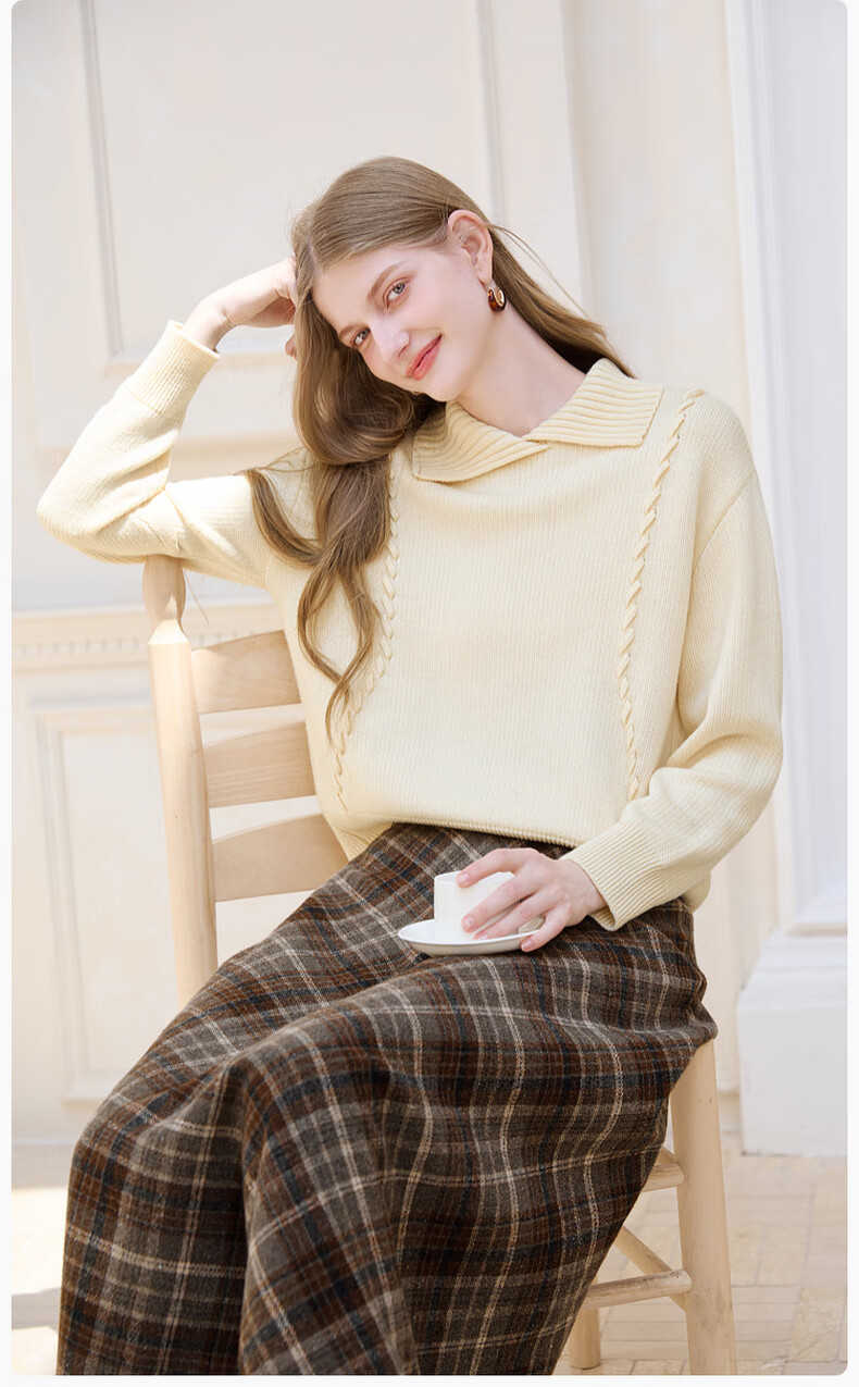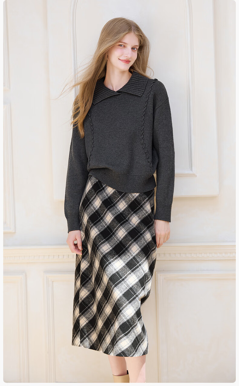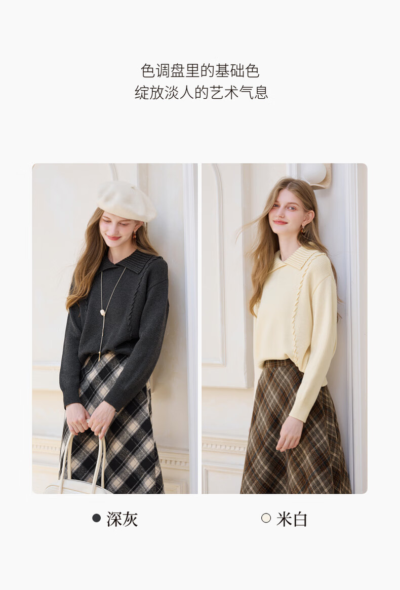 Xiangying Gray Lapel Sweater Women's 2025 Winter New Relaxed Pullover Loose Wool Sweater Top Dark Gray L 165/88A/110-125Jin Jin is equal to 0.5 kg