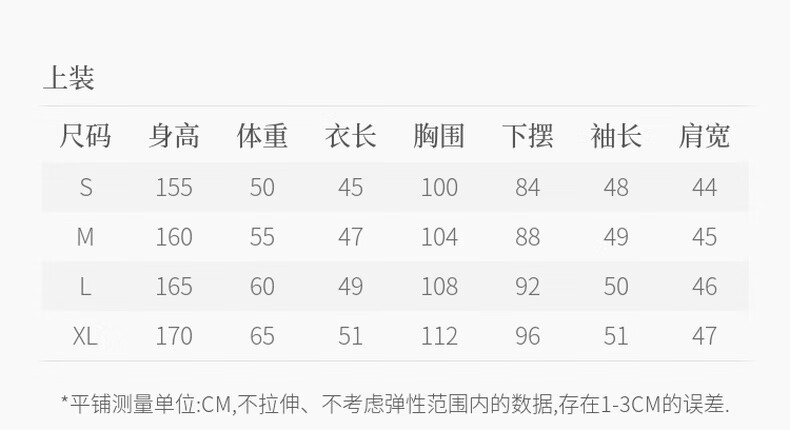China (cm) 160-165/84-86 165-170 / 88-90 167-172 / 92-96 168-173 / 98-102 170-176 / 106-110