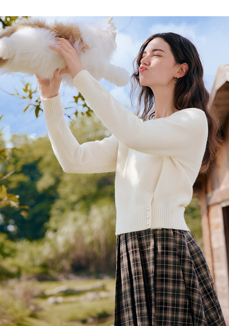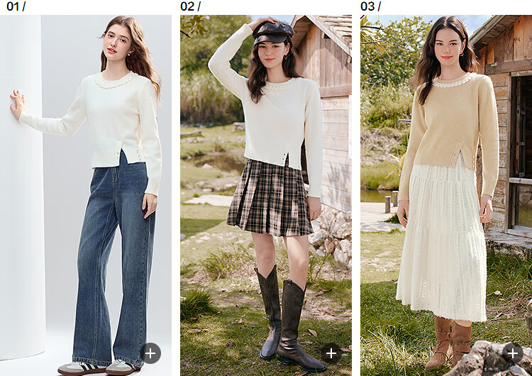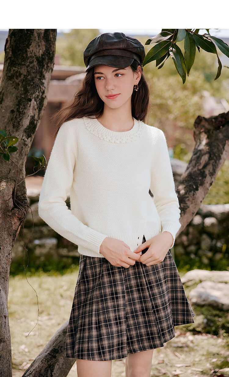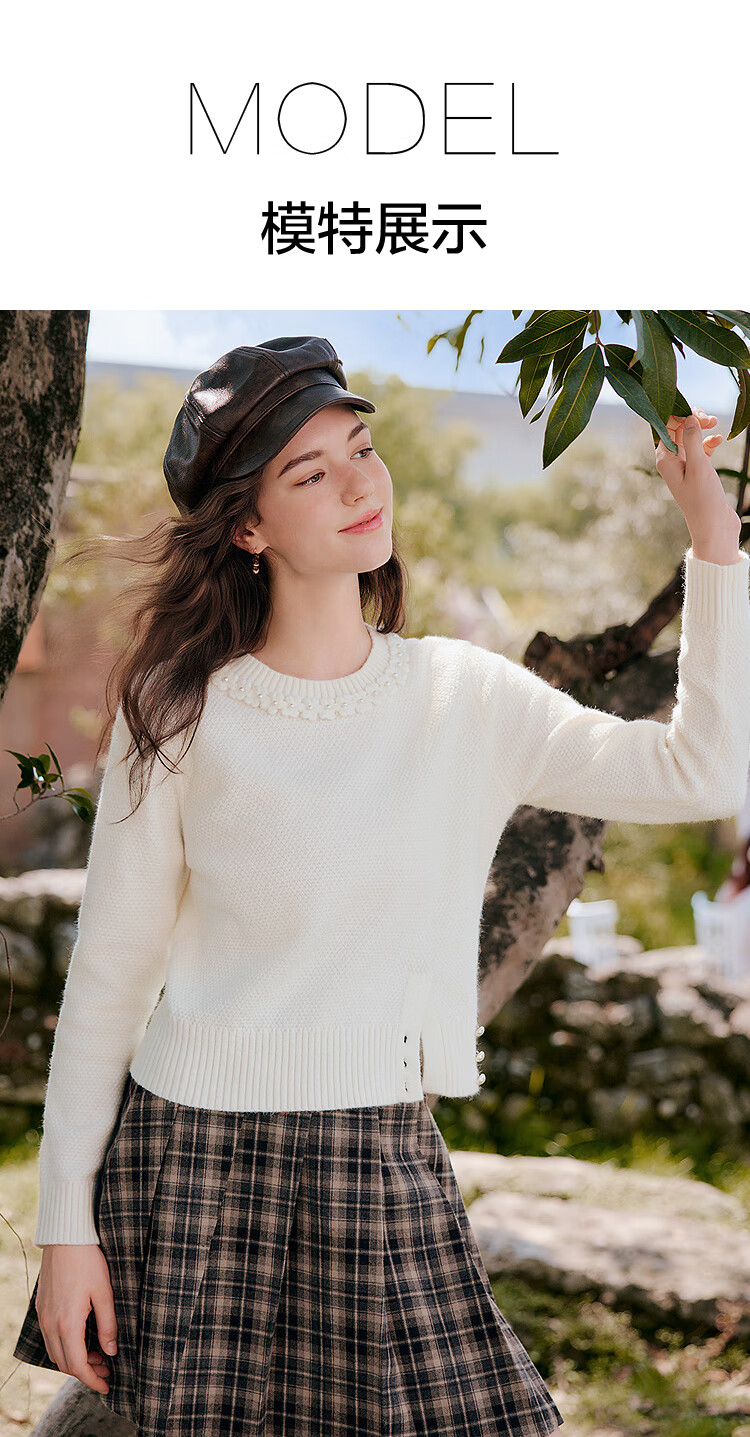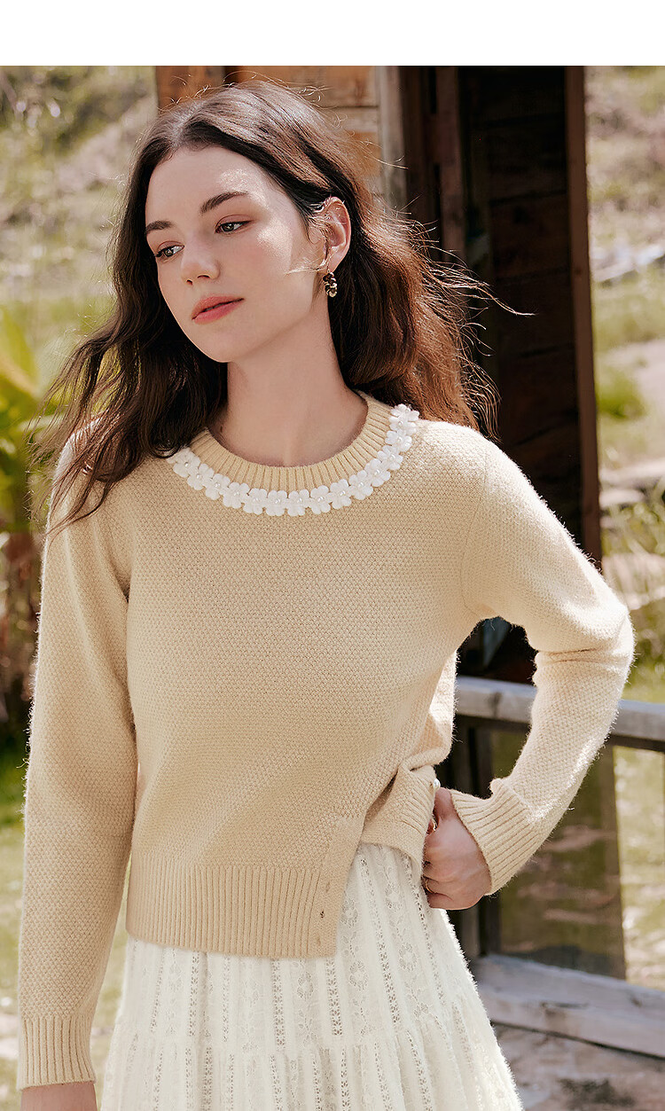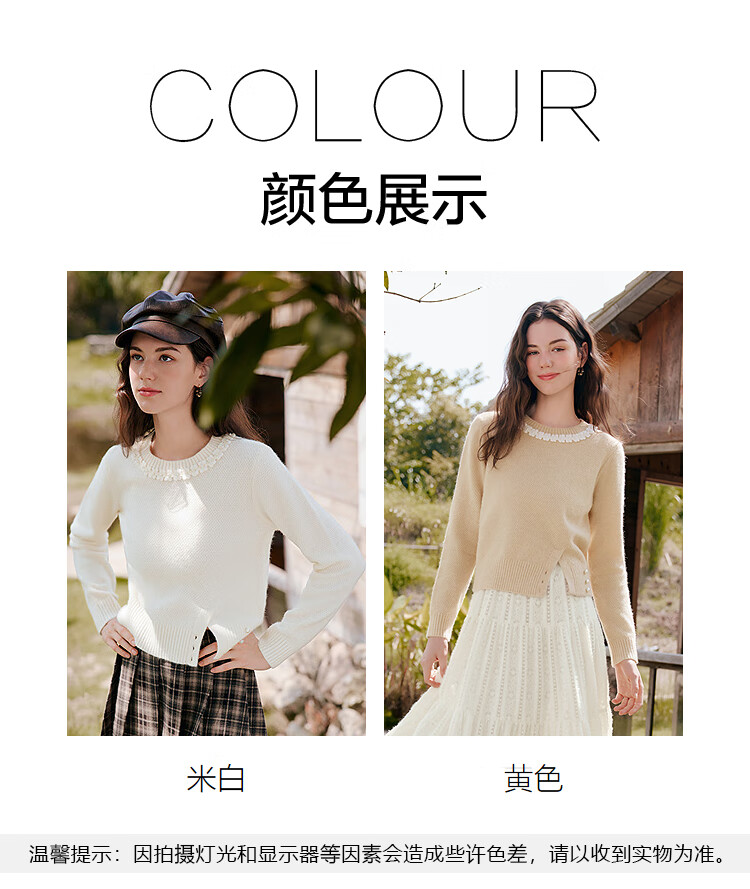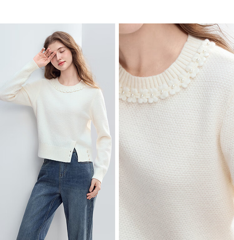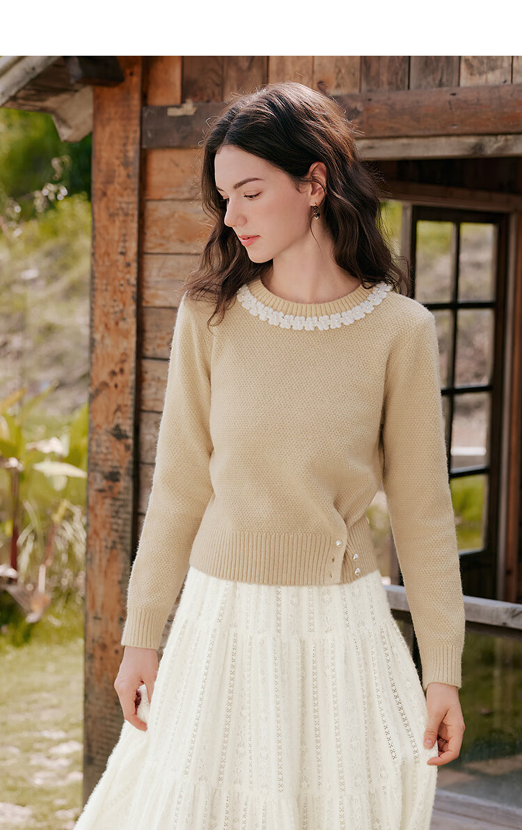 Betu women's 2025 winter new sweater neckline lace slit design gentle simple top women 2510T36 off-white L