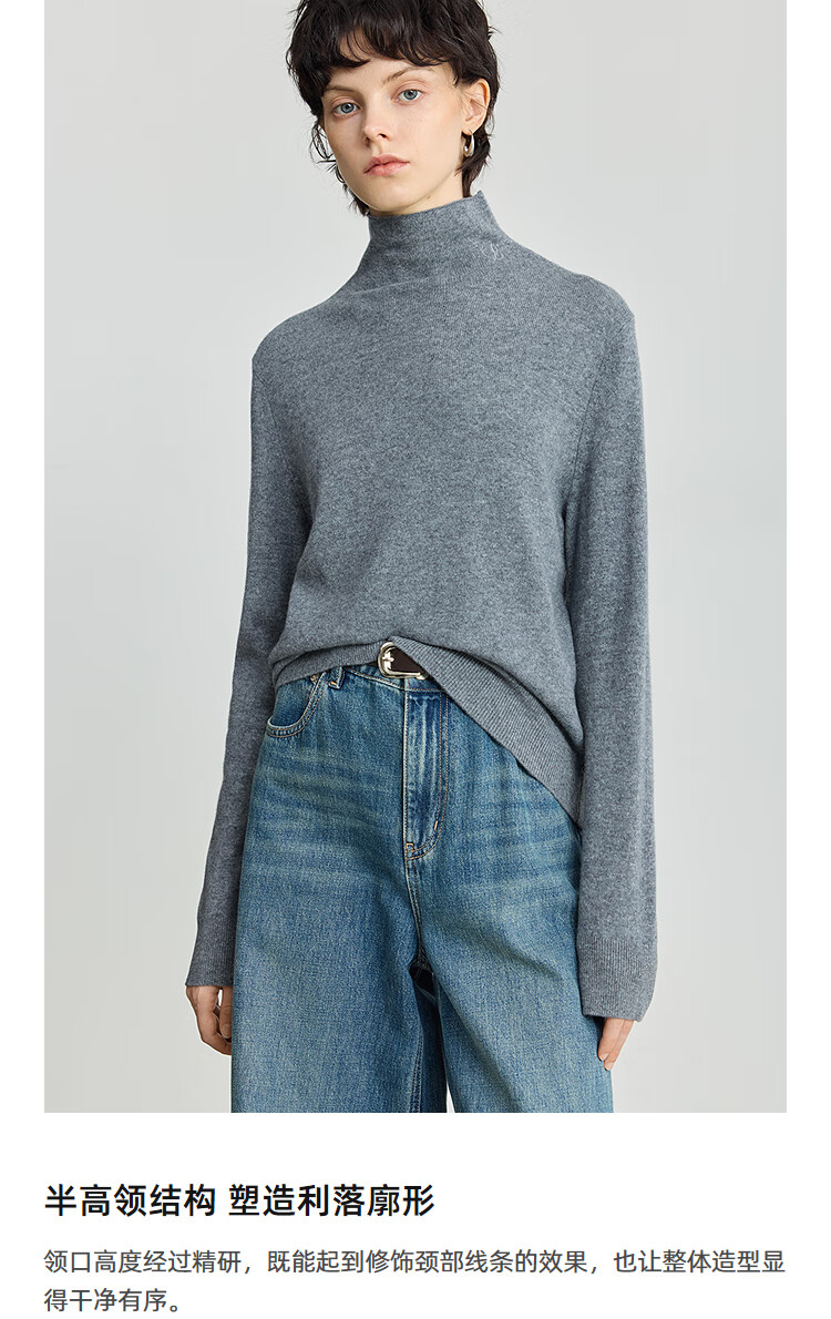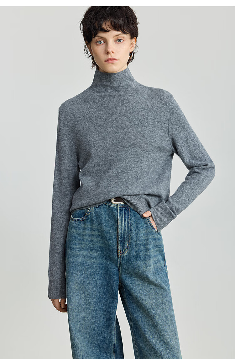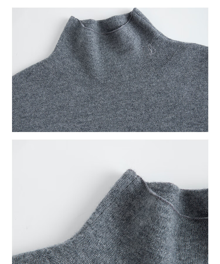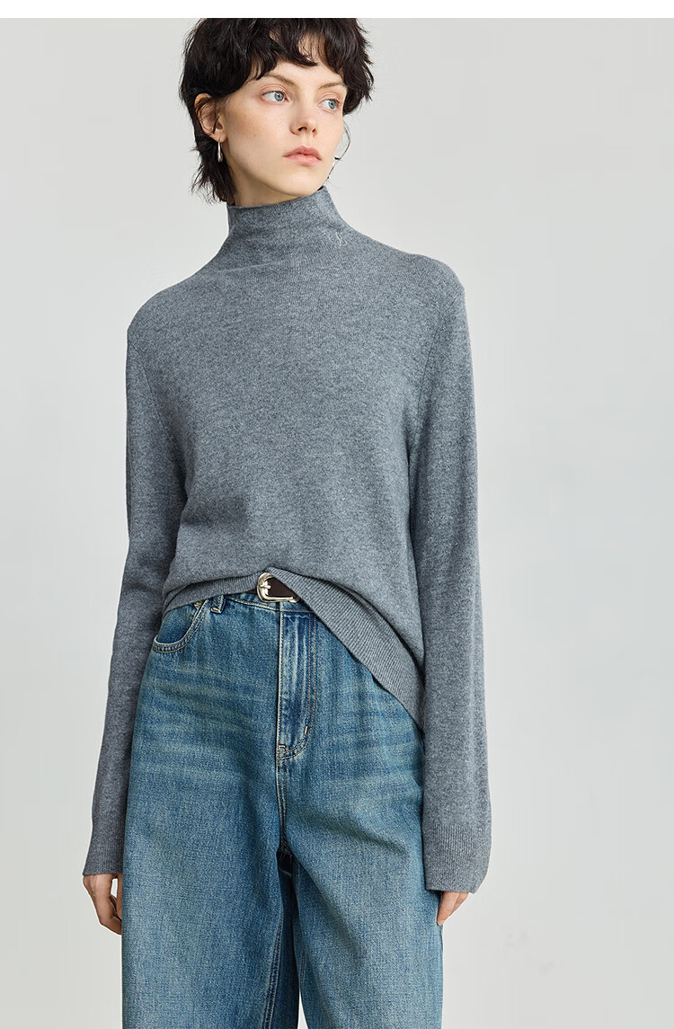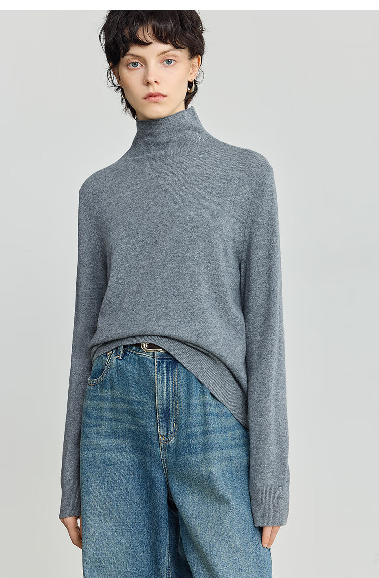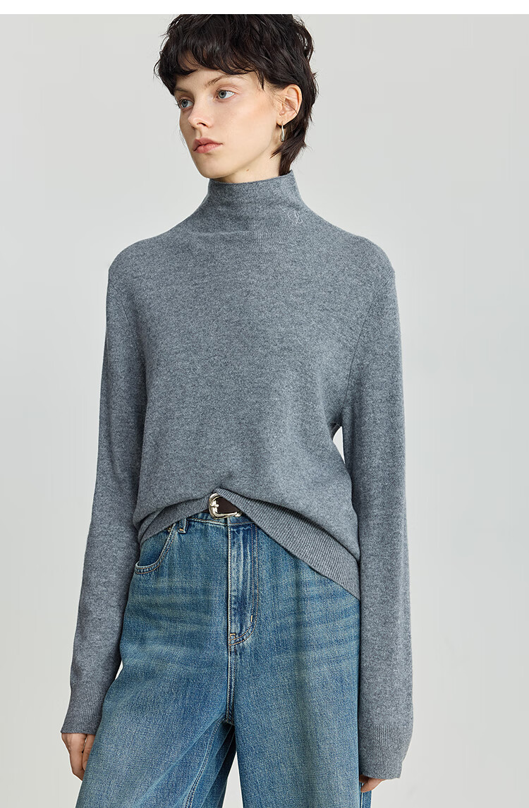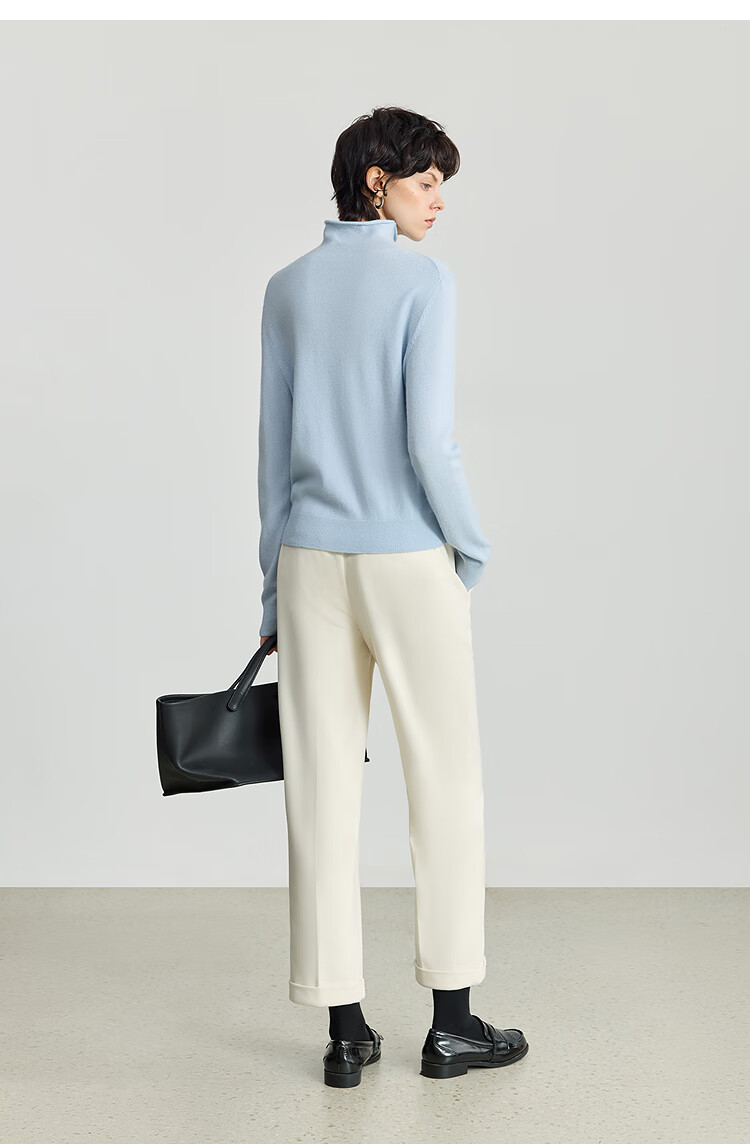 LILY 100% wool 2025 winter new style half turtleneck solid color versatile temperament commuter sweater sweater tops for women 505 light gray S