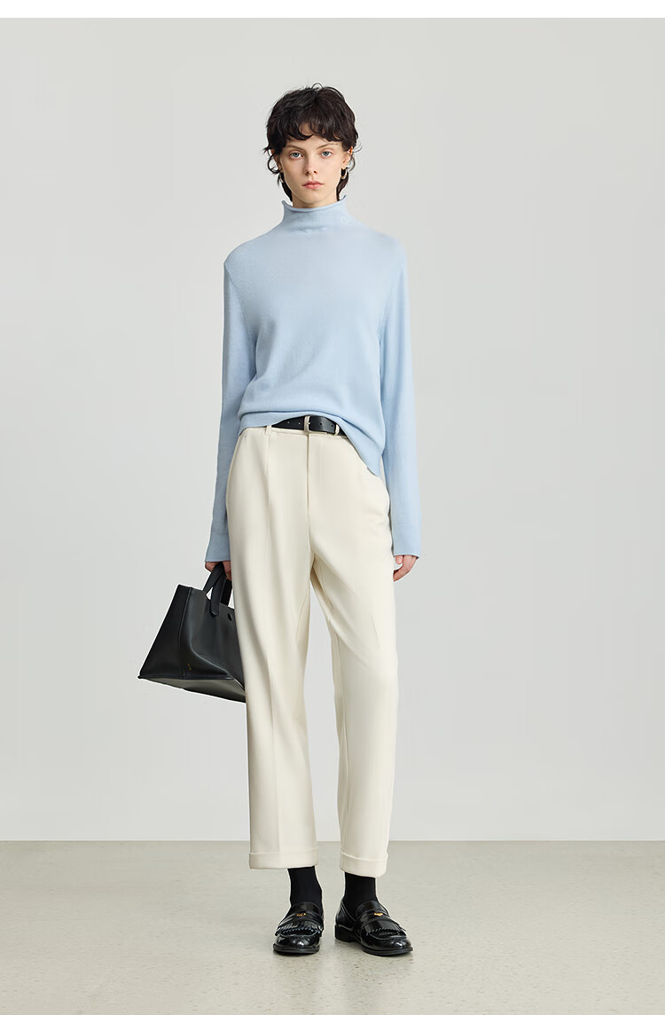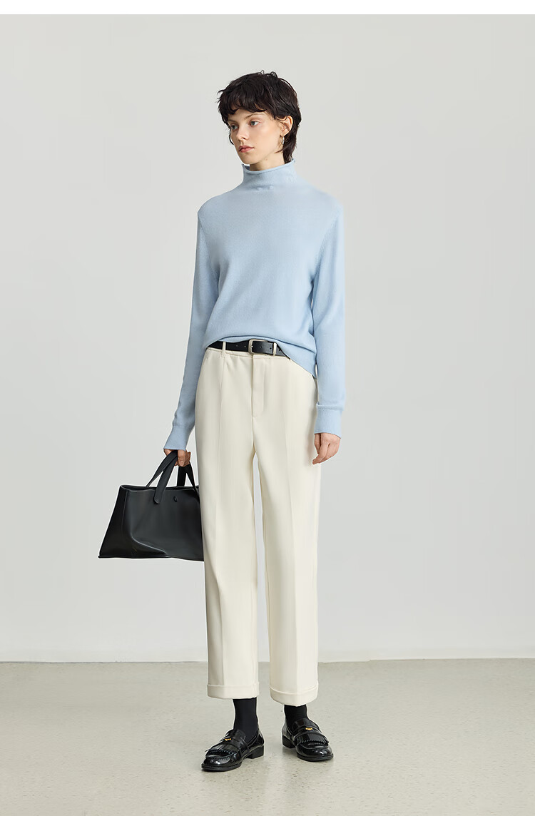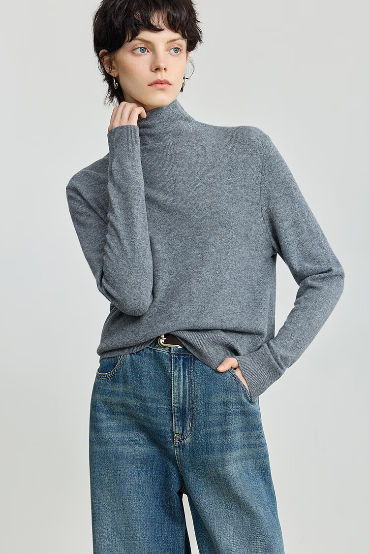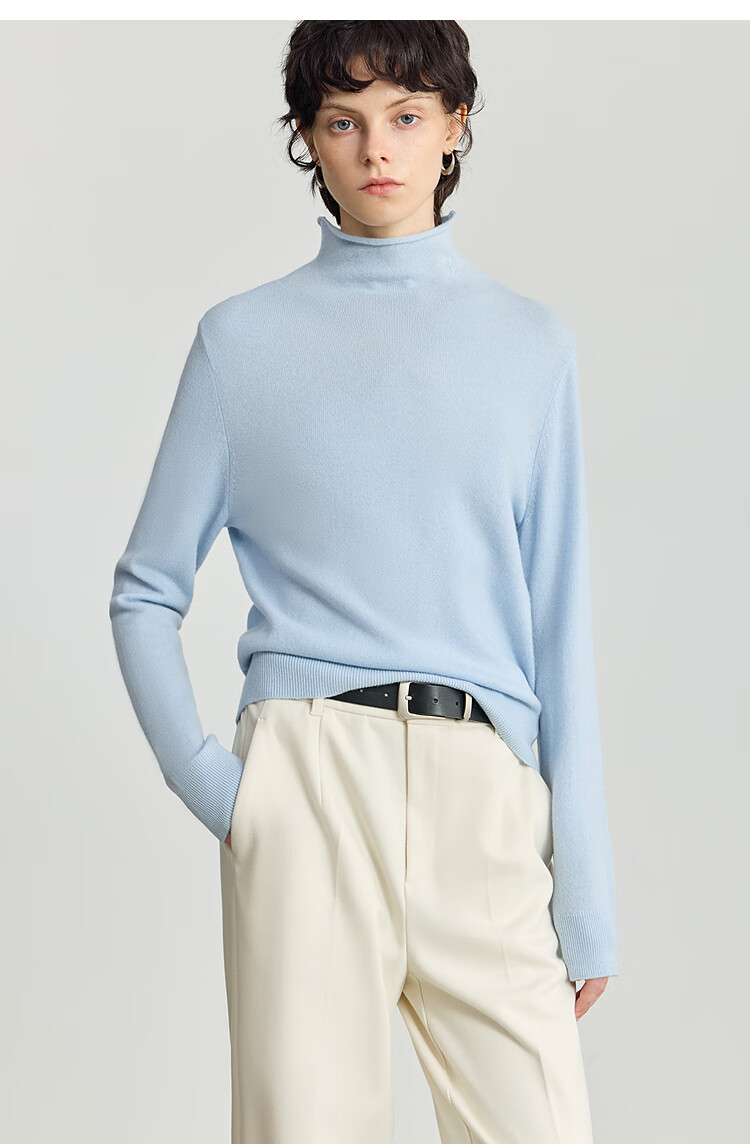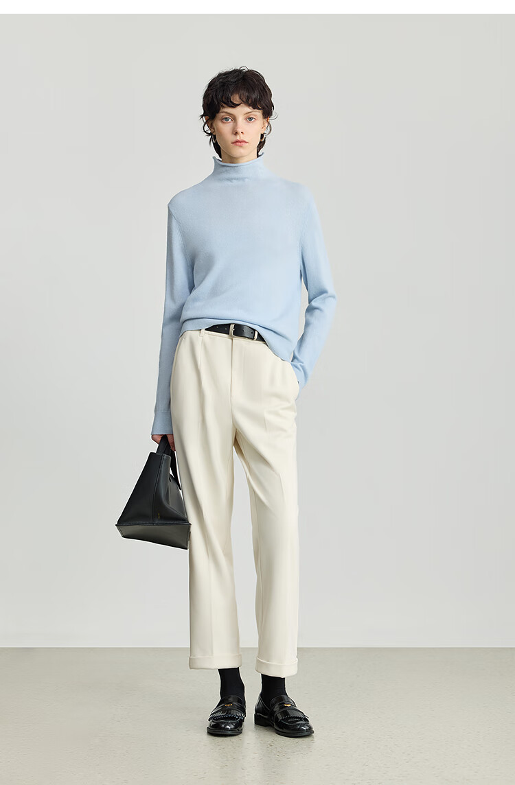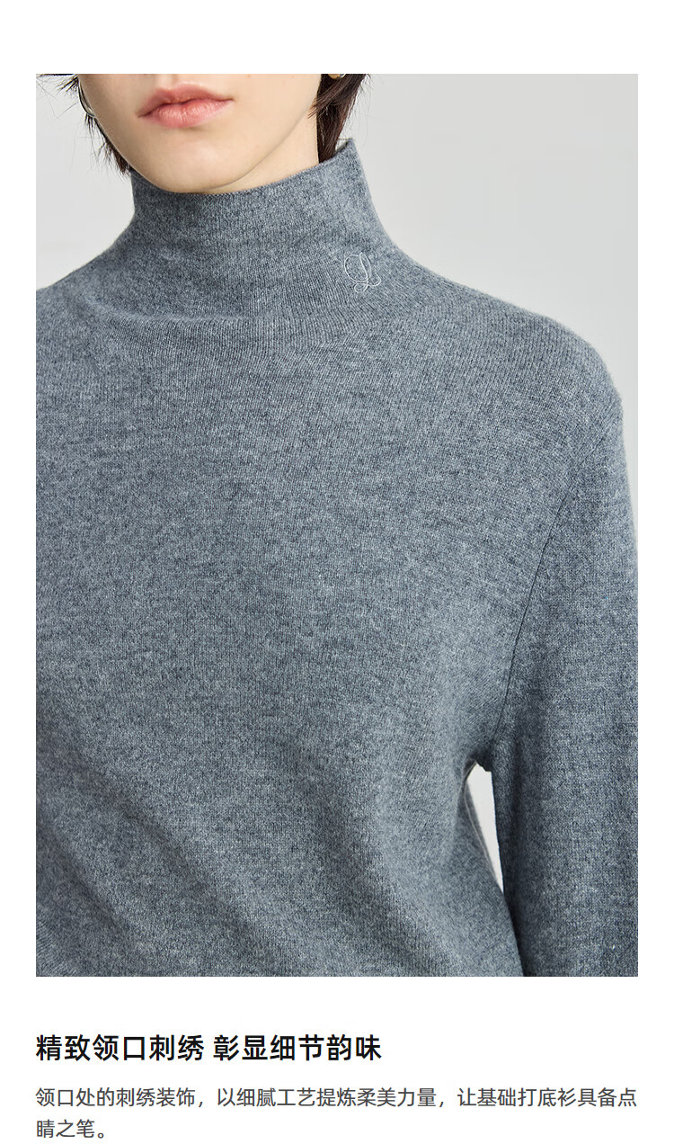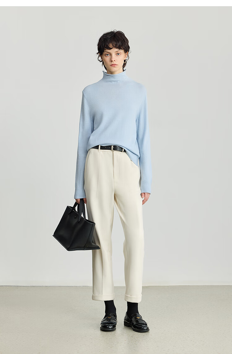 LILY 100% wool 2025 winter new style half turtleneck solid color versatile temperament commuter sweater sweater tops for women 505 light gray S