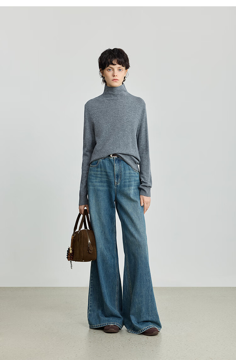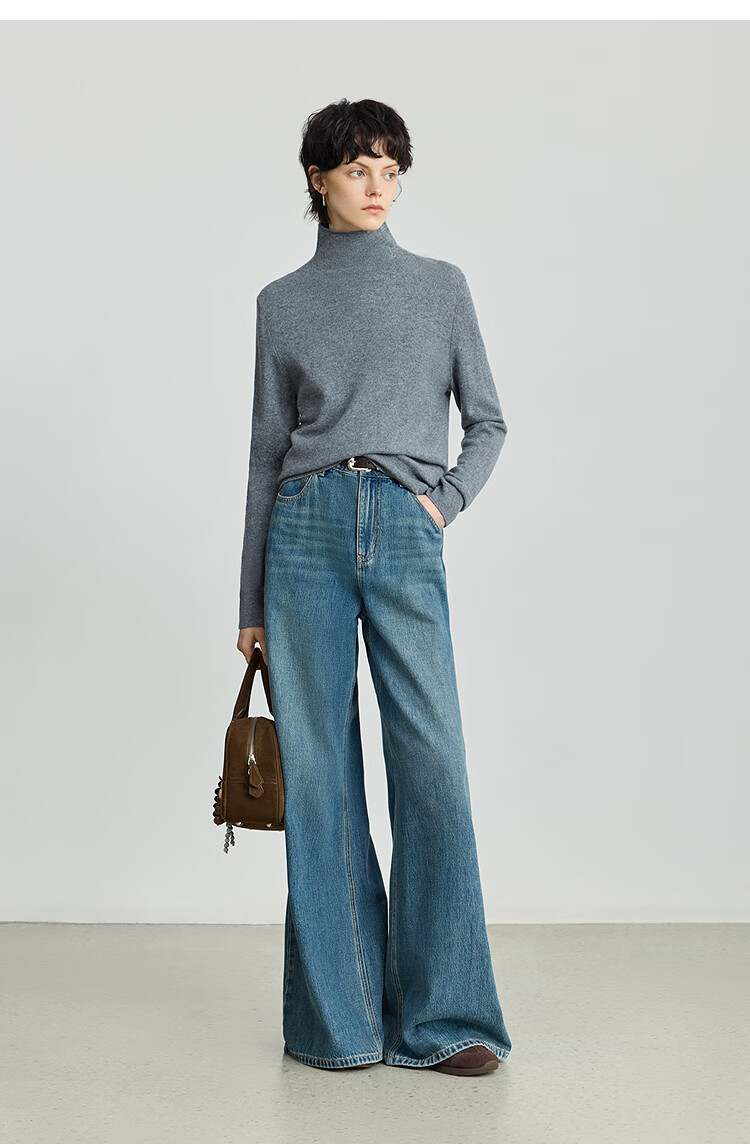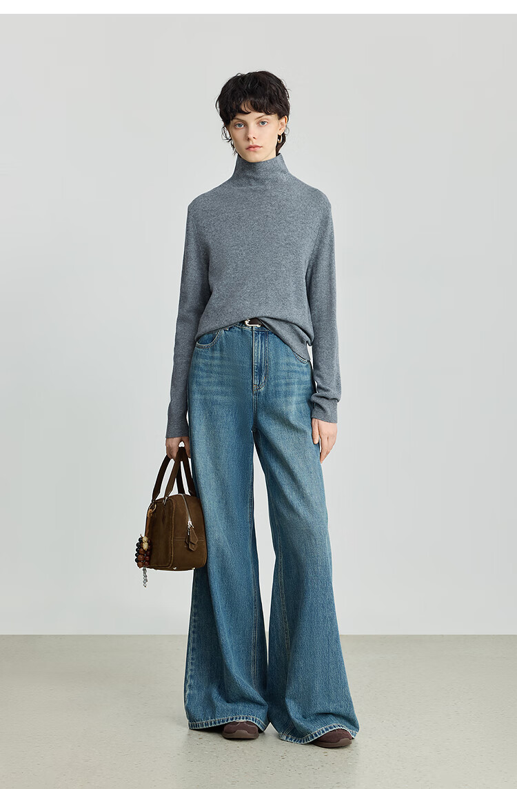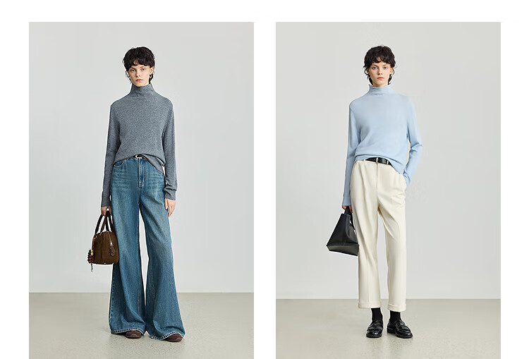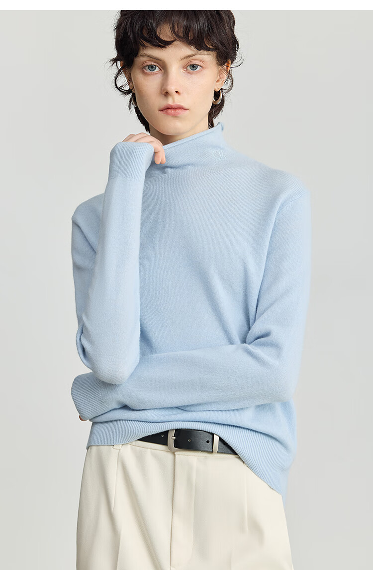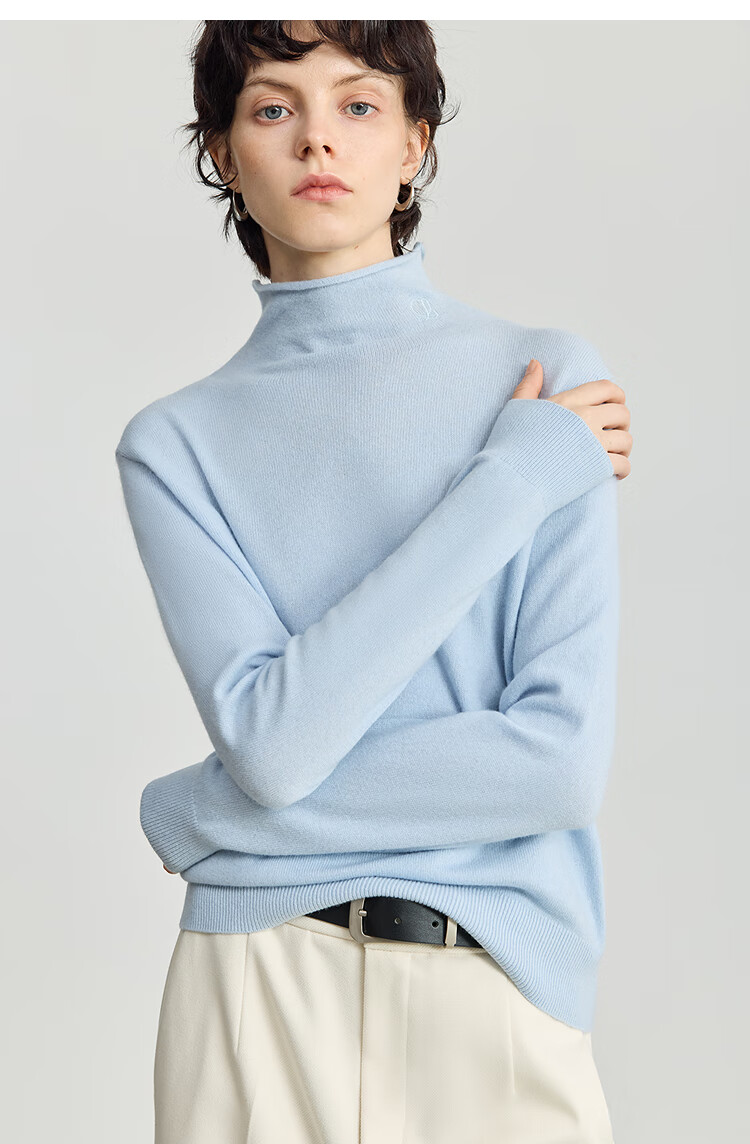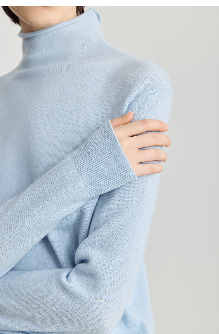 LILY 100% wool 2025 winter new style half turtleneck solid color versatile temperament commuter sweater sweater tops for women 505 light gray S