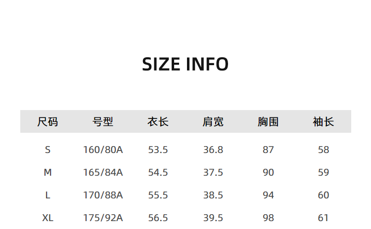 China(cm) 72-76 76-81 81-87 87-93 93-98