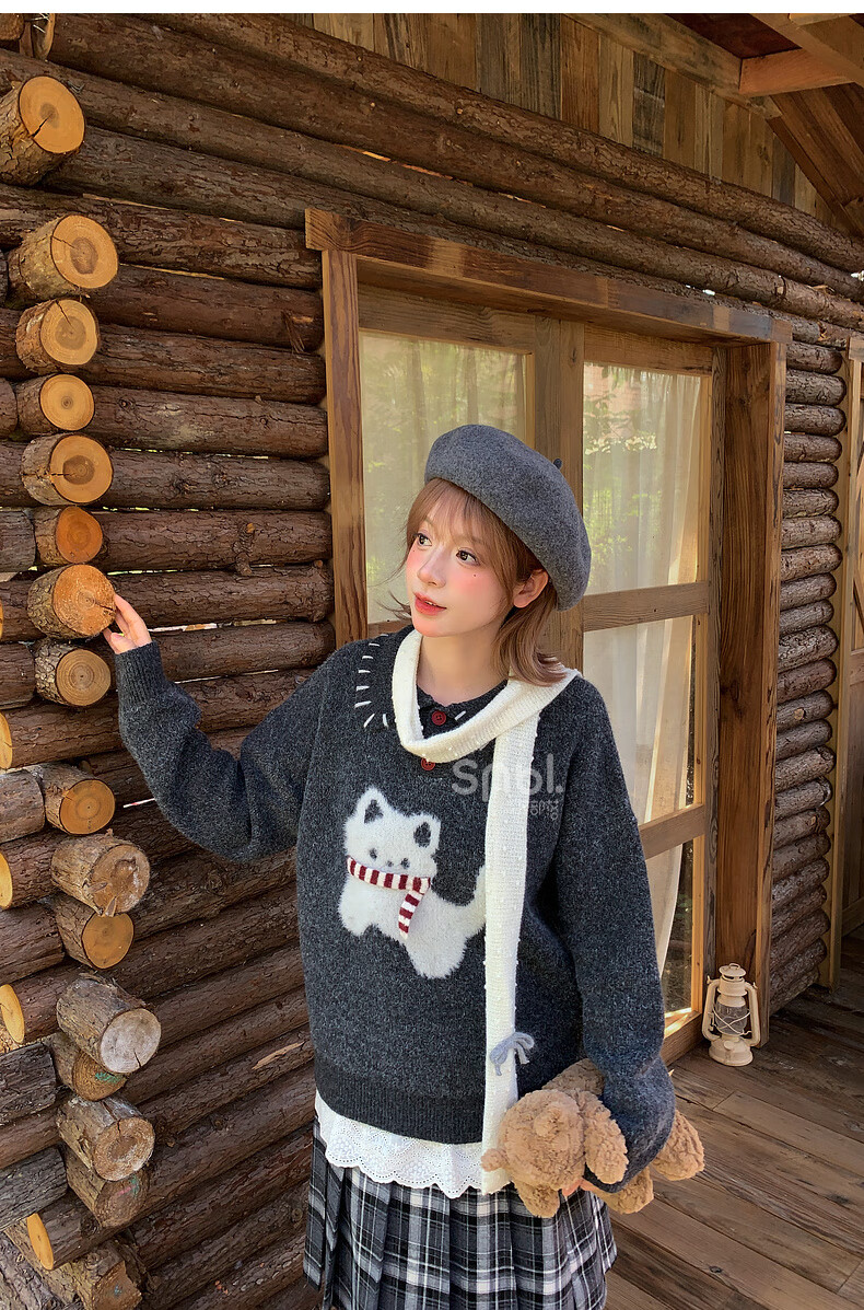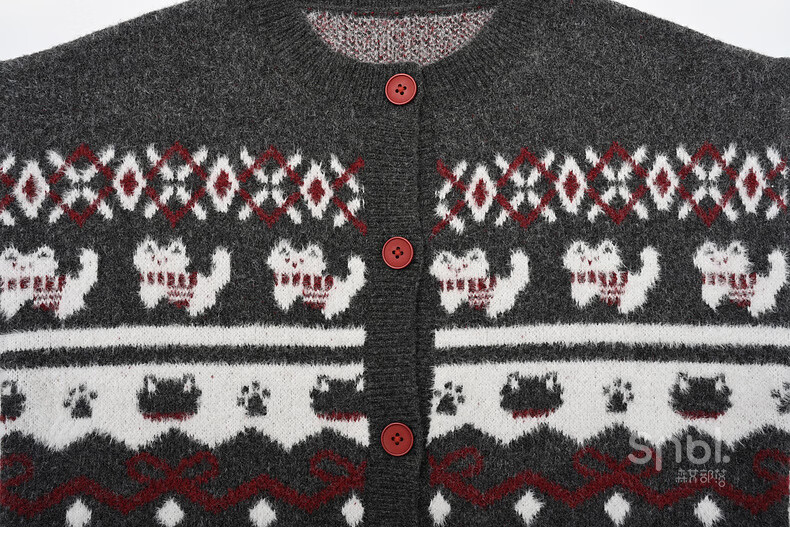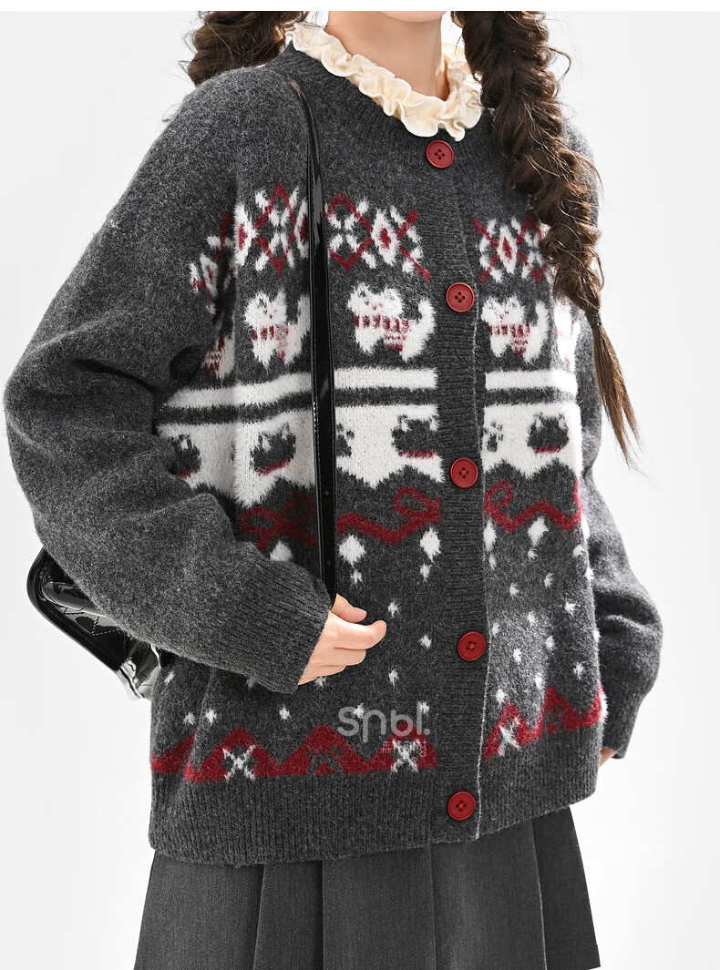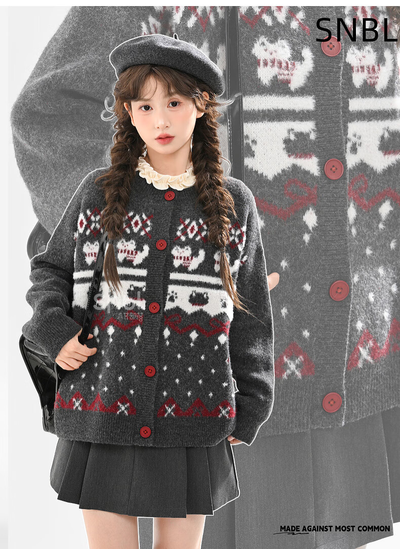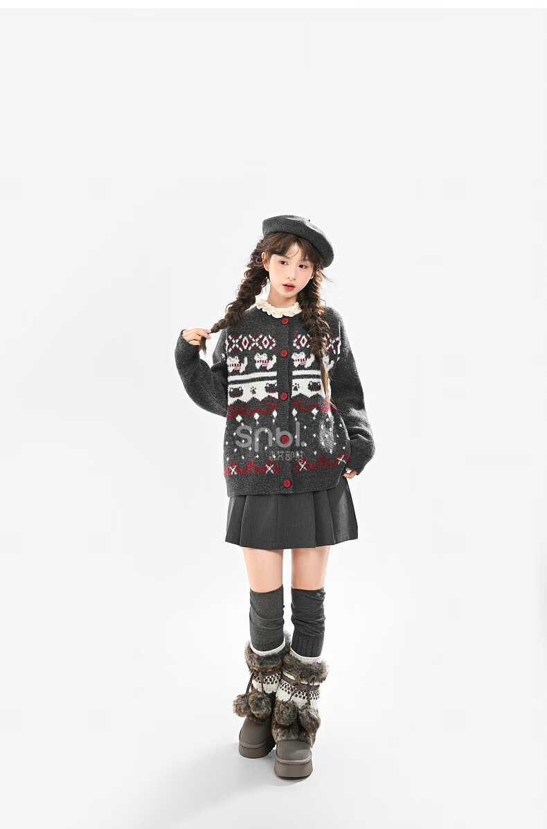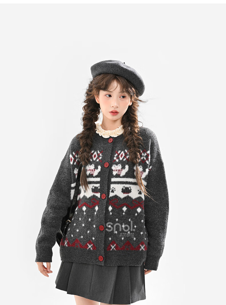 Mori tribe autumn and winter gray sweater for women 2025 new sweet style cat design versatile loose sweater dark gray pullover S model size
