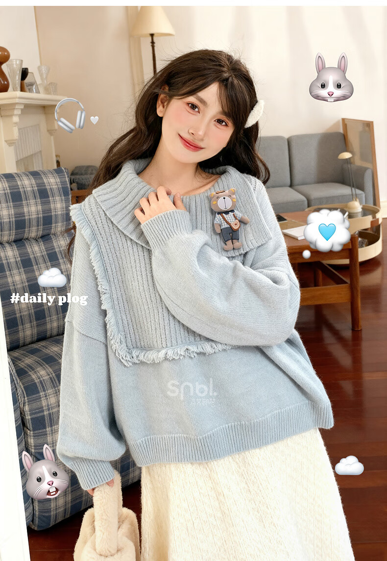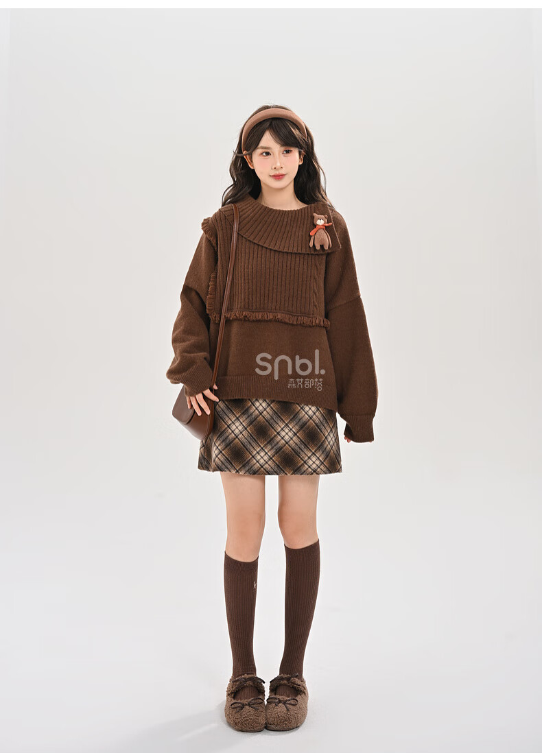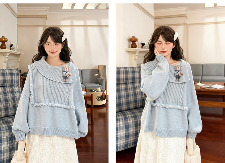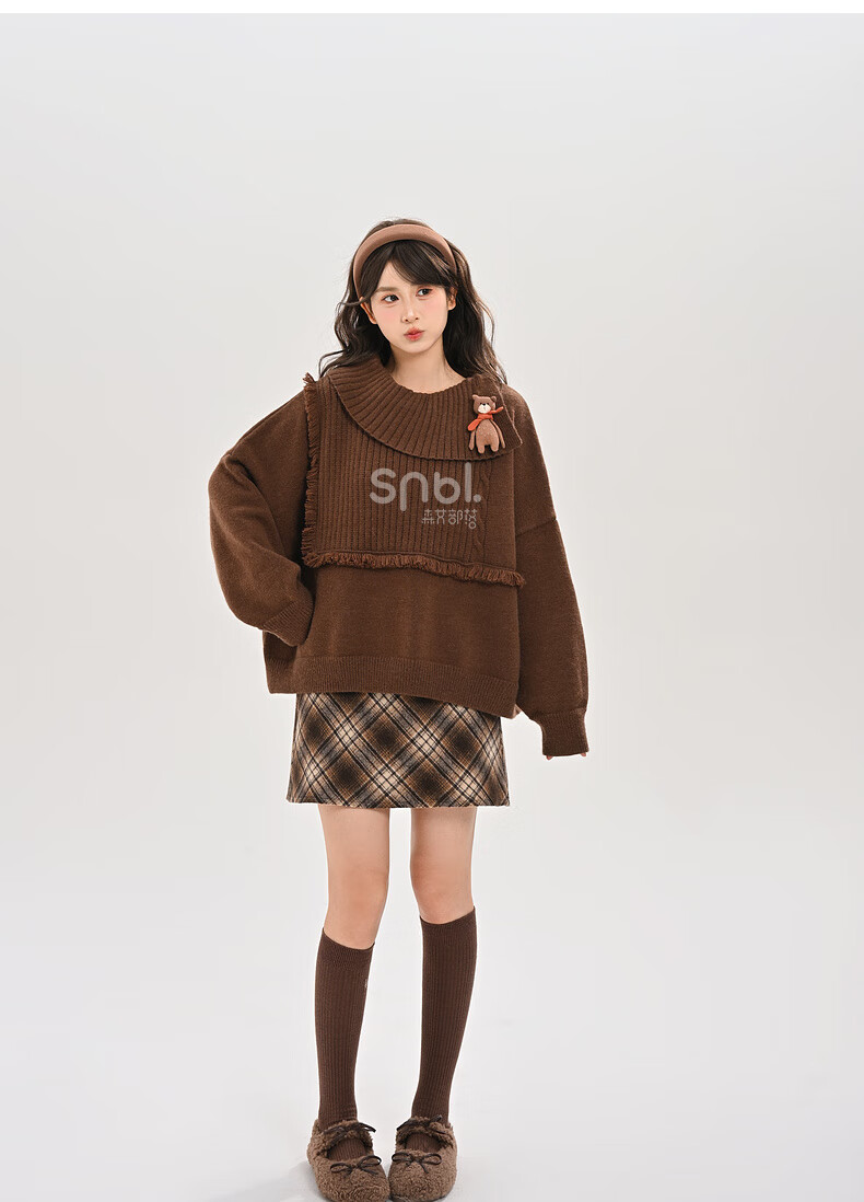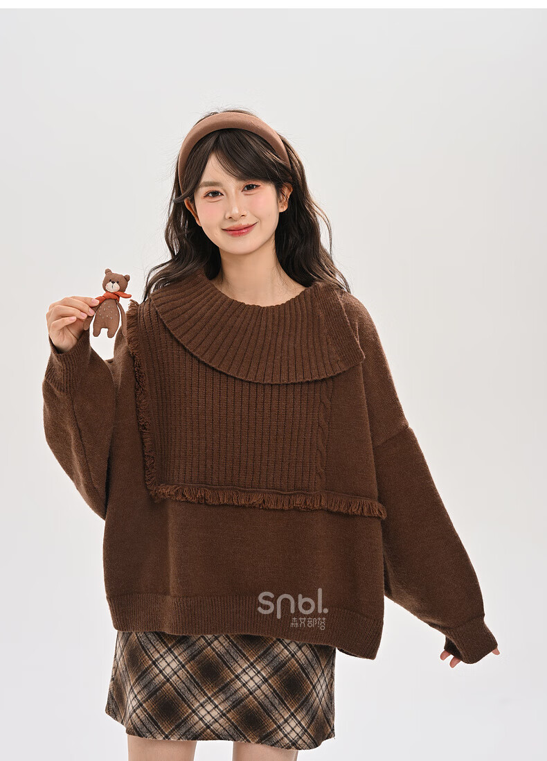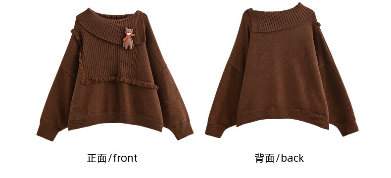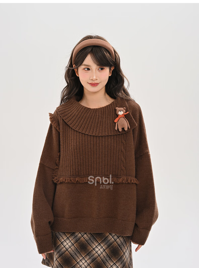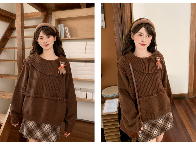 Mori Girl Tribe Lazy Style Autumn and Winter Cute Bear Design Sweater Women's 2025 New Loose Pullover Sweater Caramel Brown S Model Size