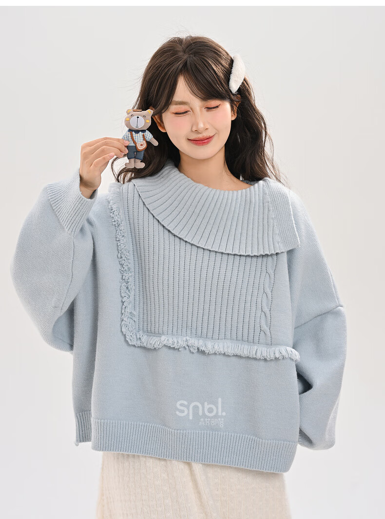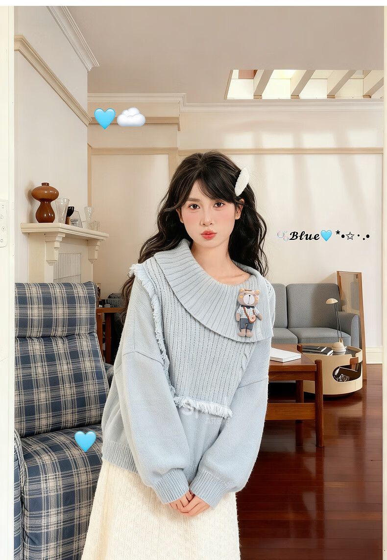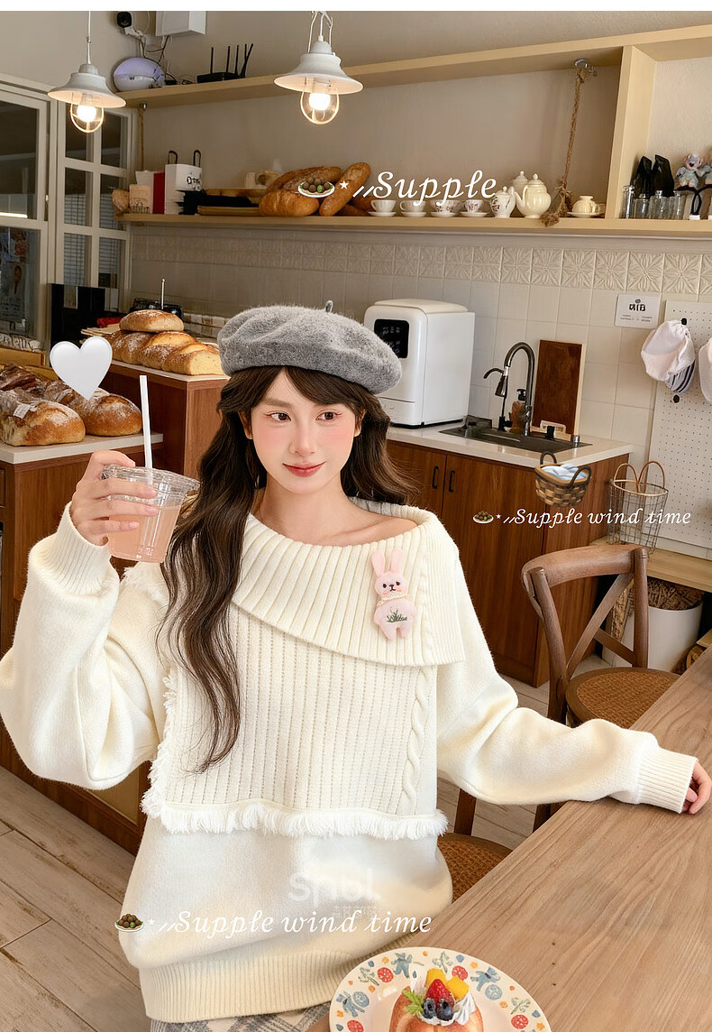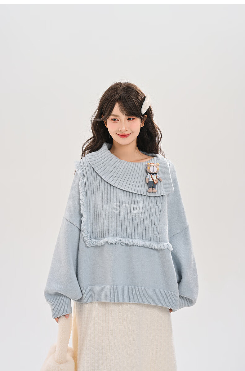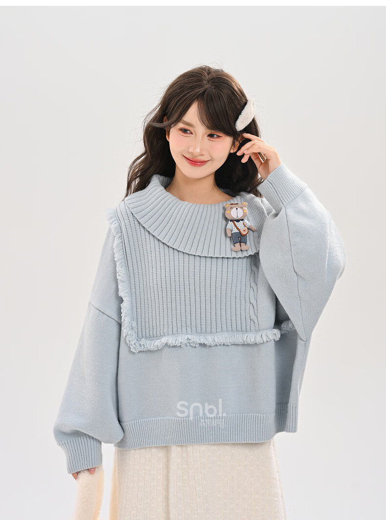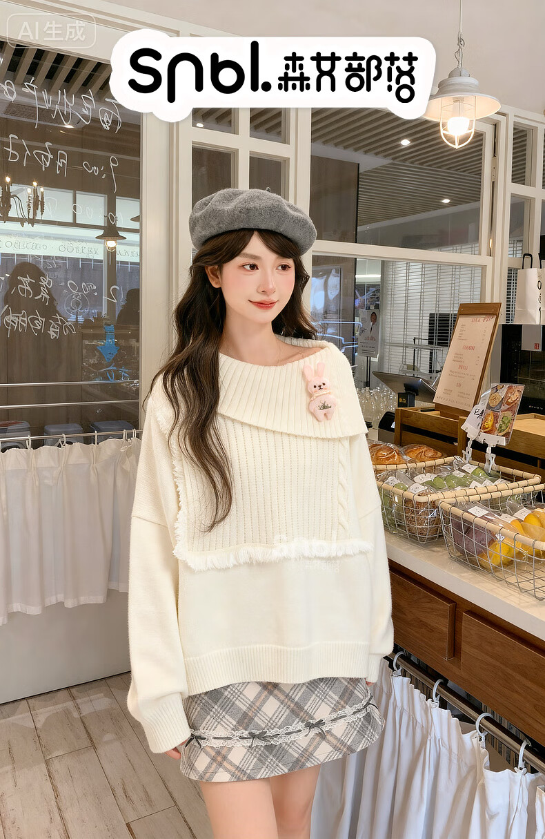 Mori Girl Tribe Lazy Style Autumn and Winter Cute Bear Design Sweater Women's 2025 New Loose Pullover Sweater Caramel Brown S Model Size