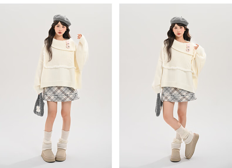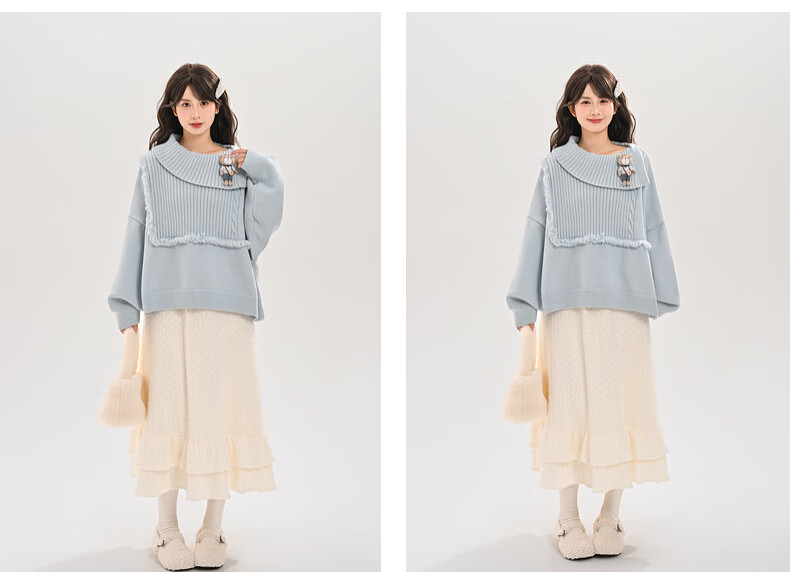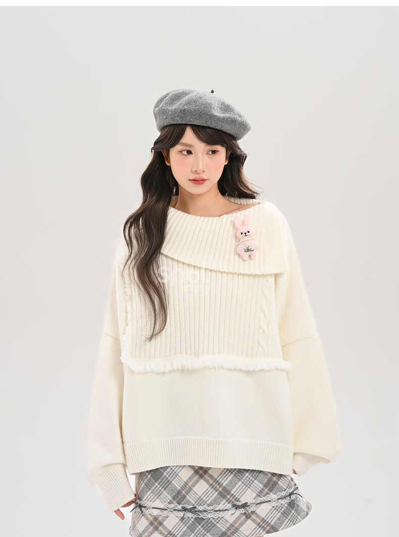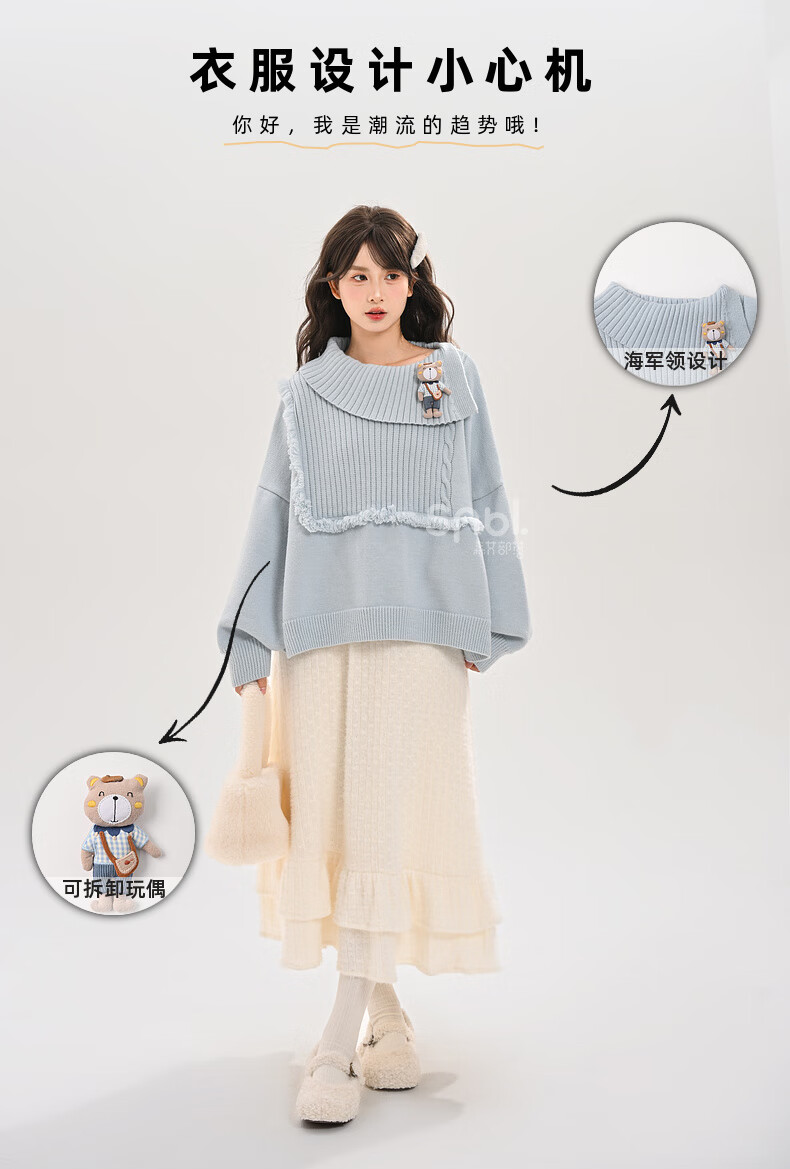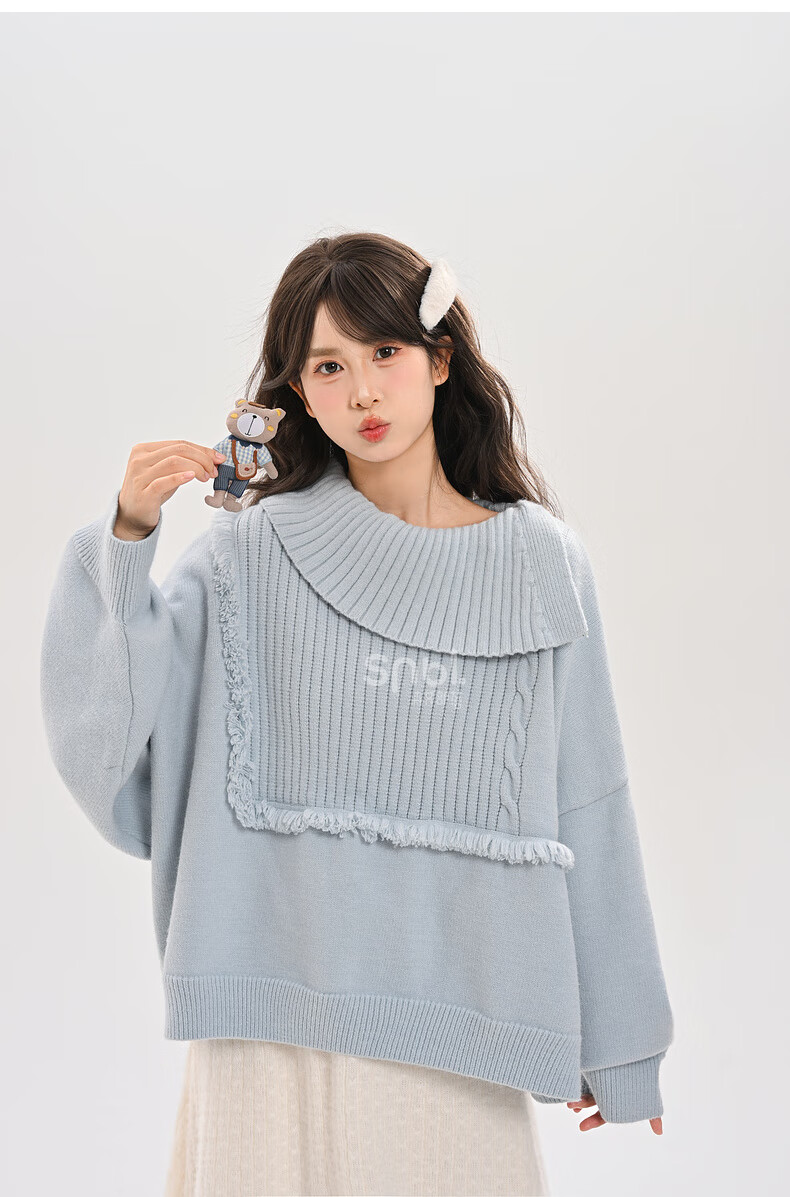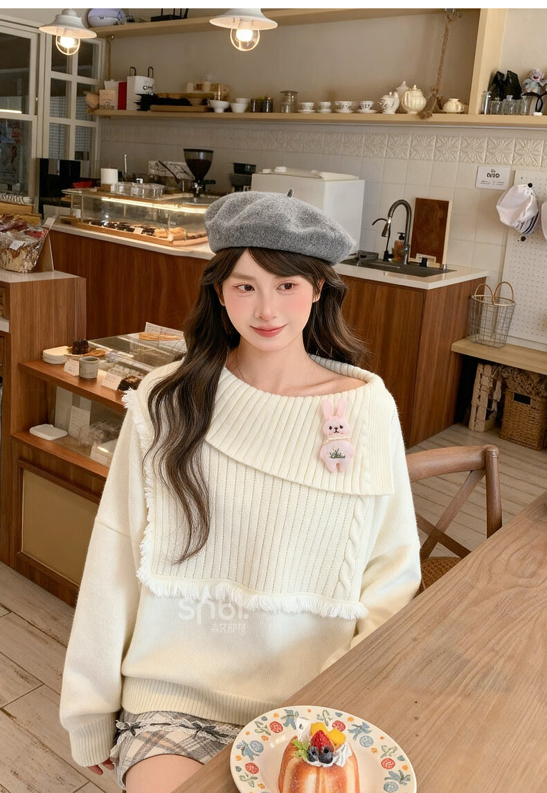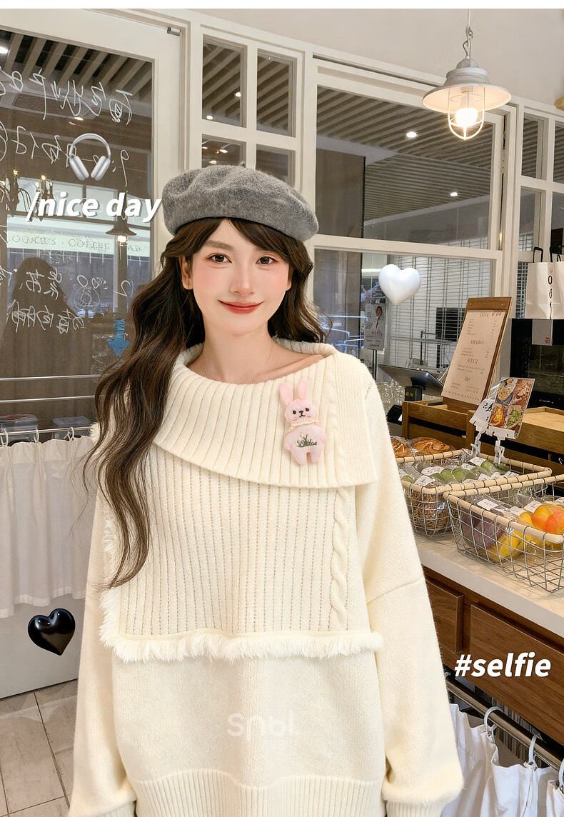 Mori Girl Tribe Lazy Style Autumn and Winter Cute Bear Design Sweater Women's 2025 New Loose Pullover Sweater Caramel Brown S Model Size