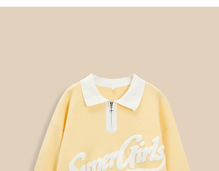 IEF/Aiyifu 2025 winter new American fashion casual letter jacquard loose and versatile woolen mid-top, light yellow, one size fits all