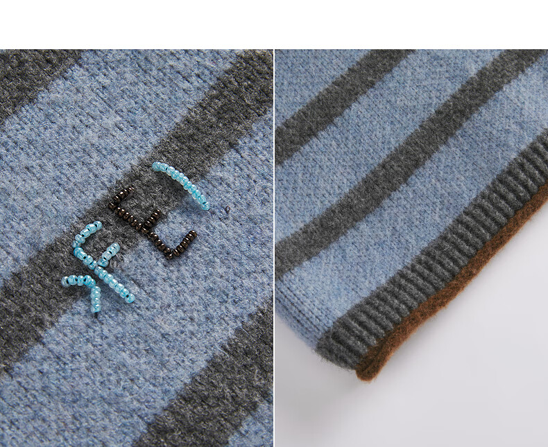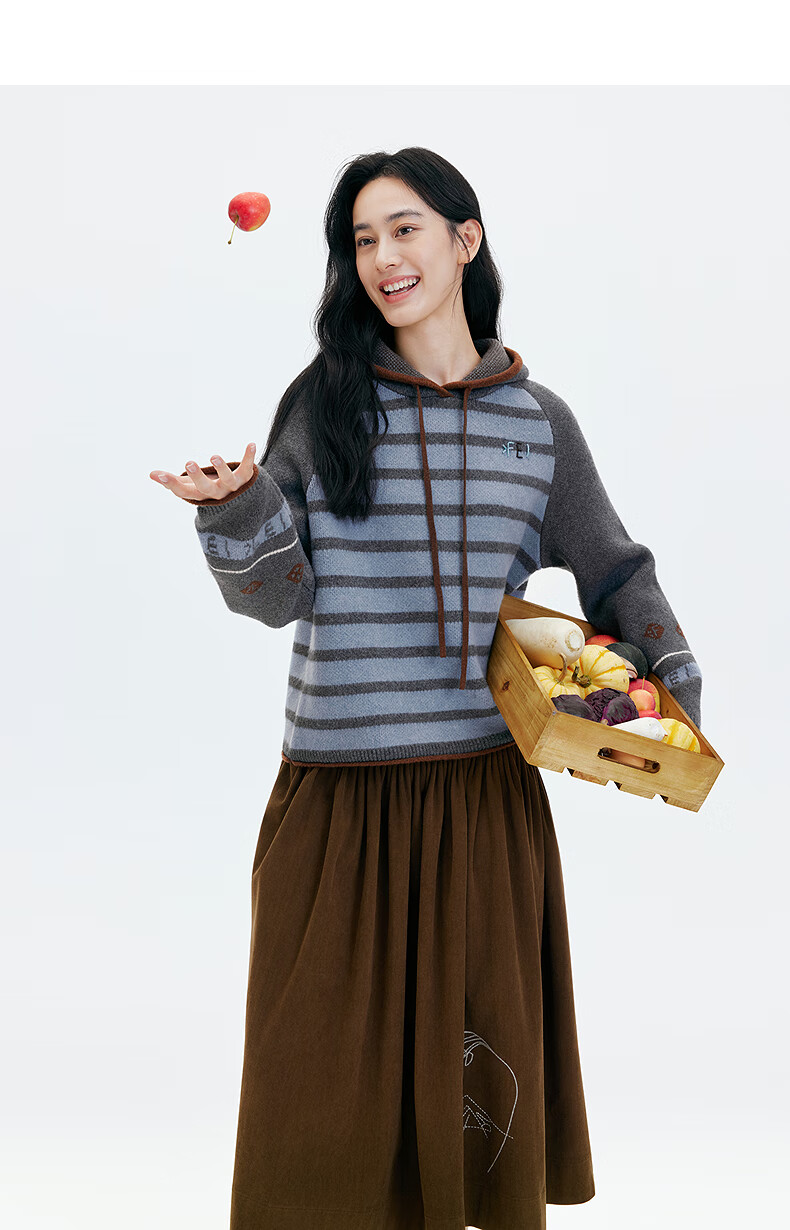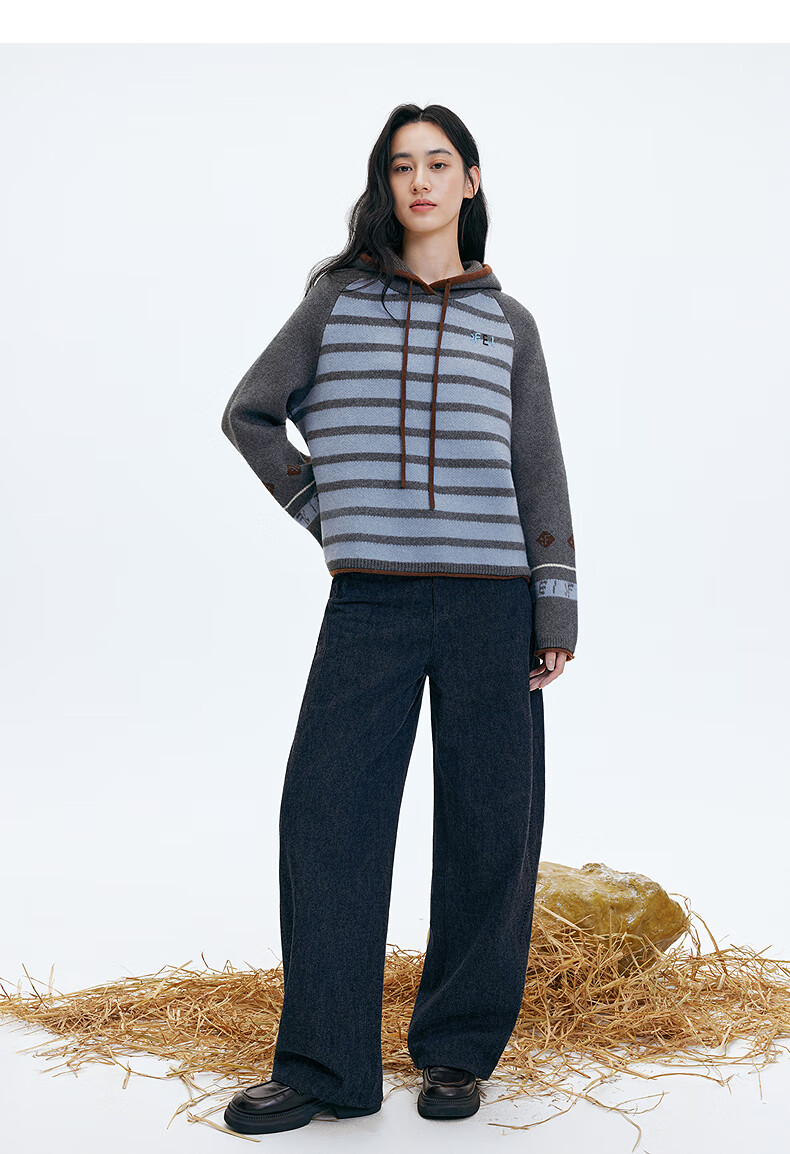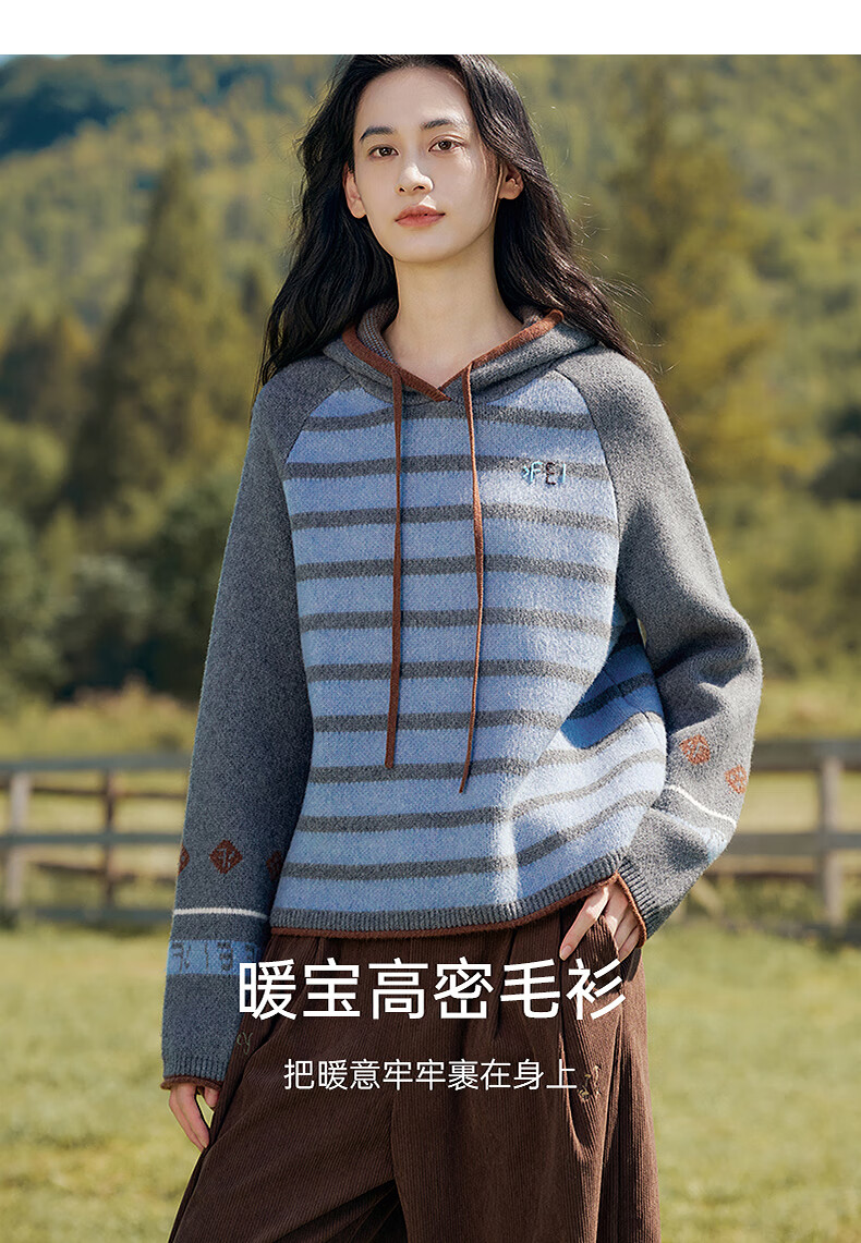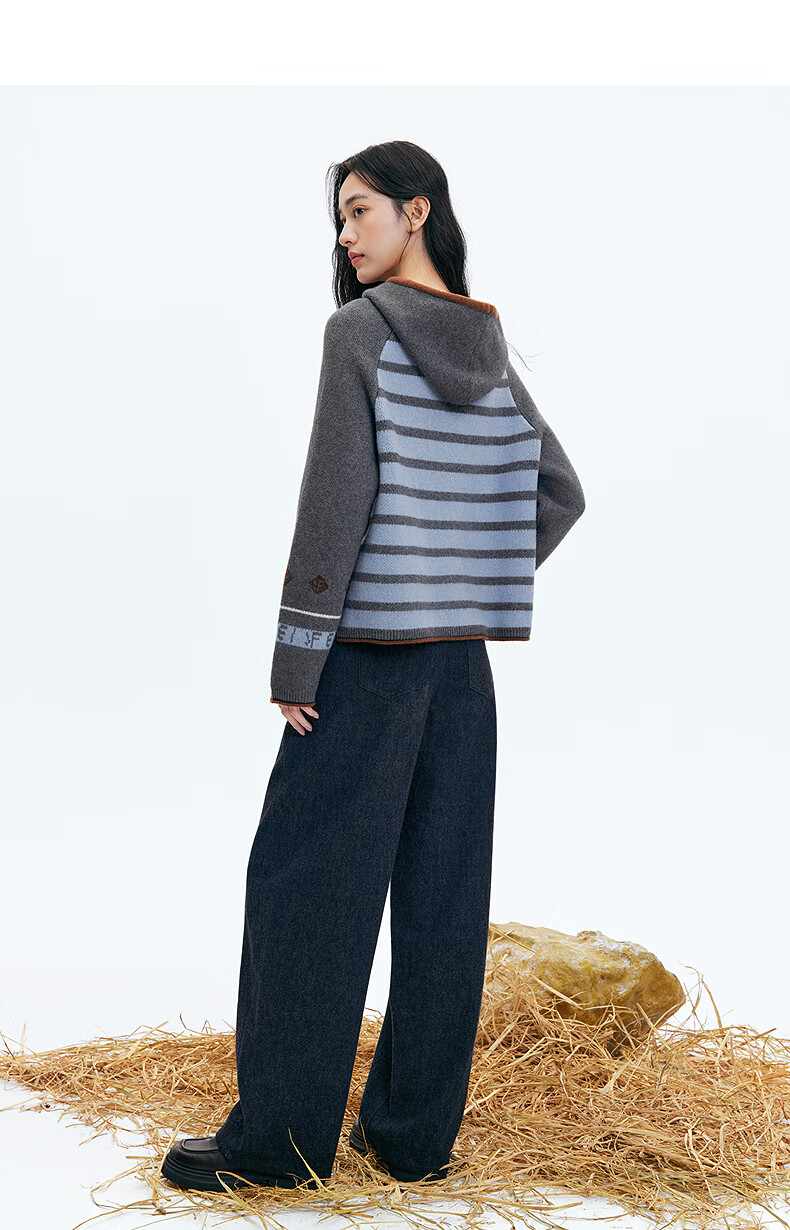 Birds and New Wine Spliced ​​Striped Colorful Gray Sweater Women's 2025 Winter New Slim Sweater Hoodie Striped Ash HNC02 Pre-sale November 28 S