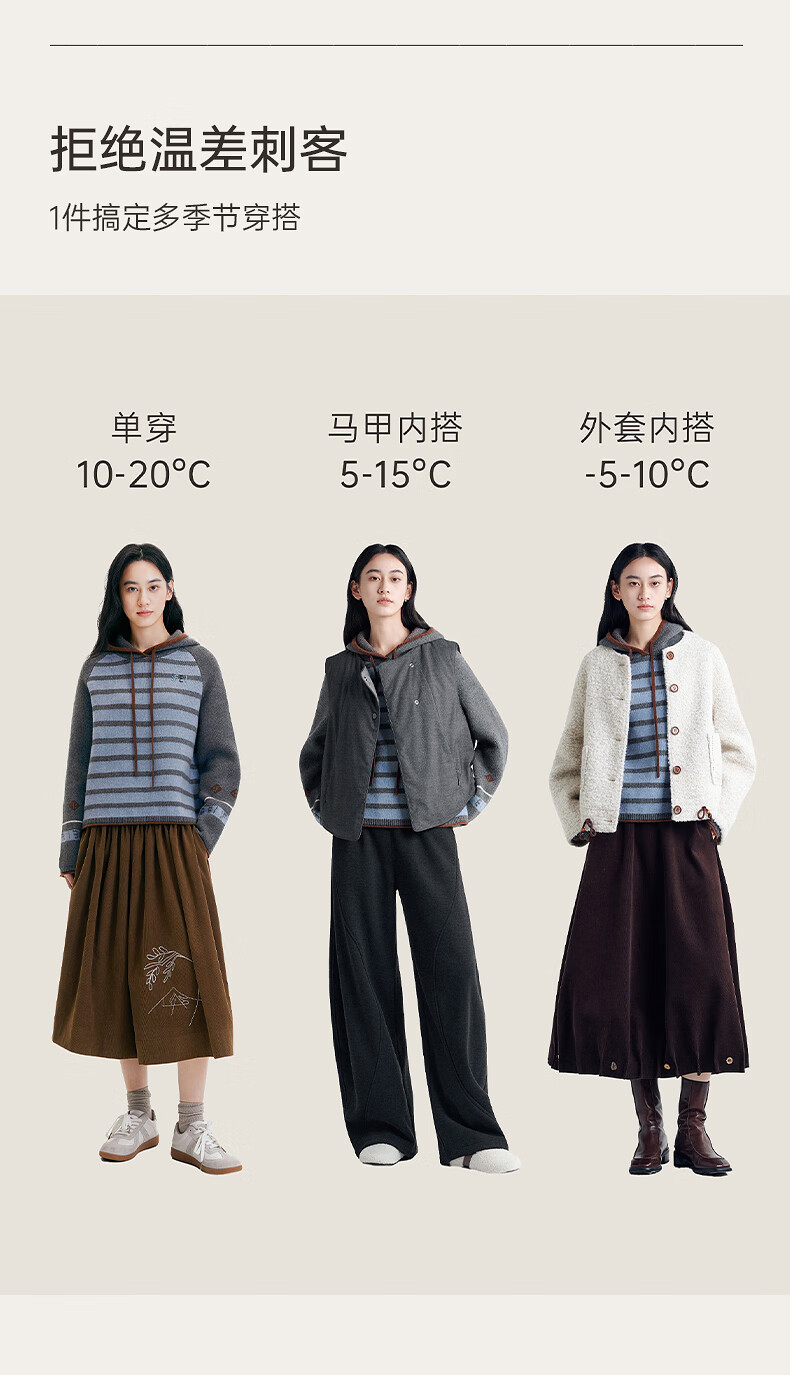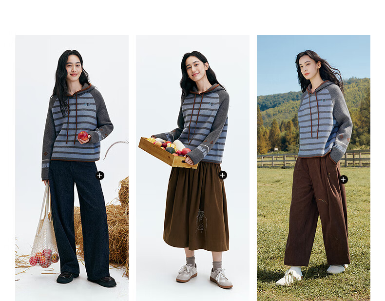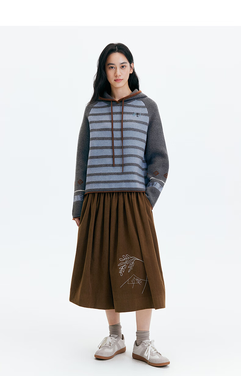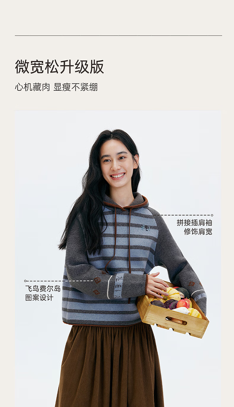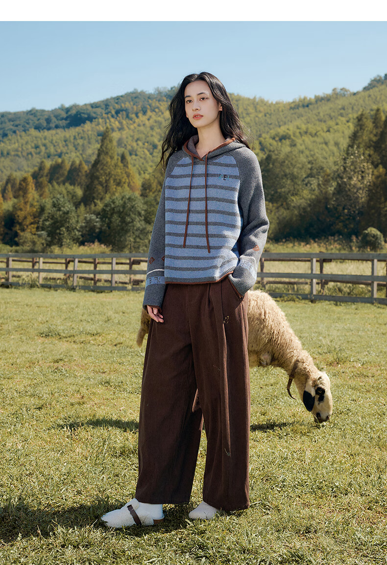 Birds and New Wine Spliced ​​Striped Colorful Gray Sweater Women's 2025 Winter New Slim Sweater Hoodie Striped Ash HNC02 Pre-sale November 28 S