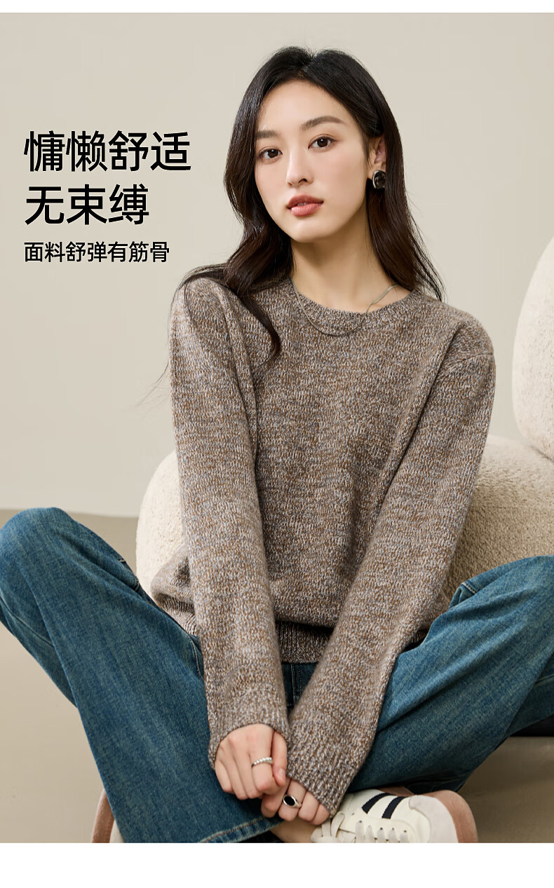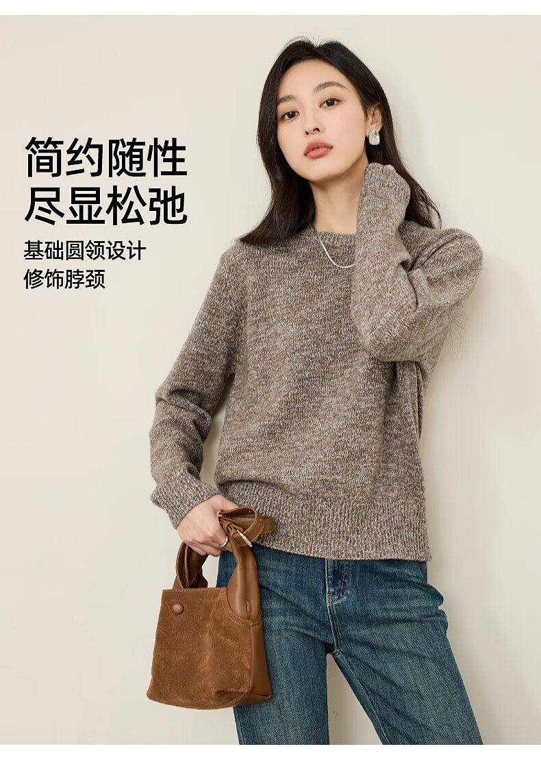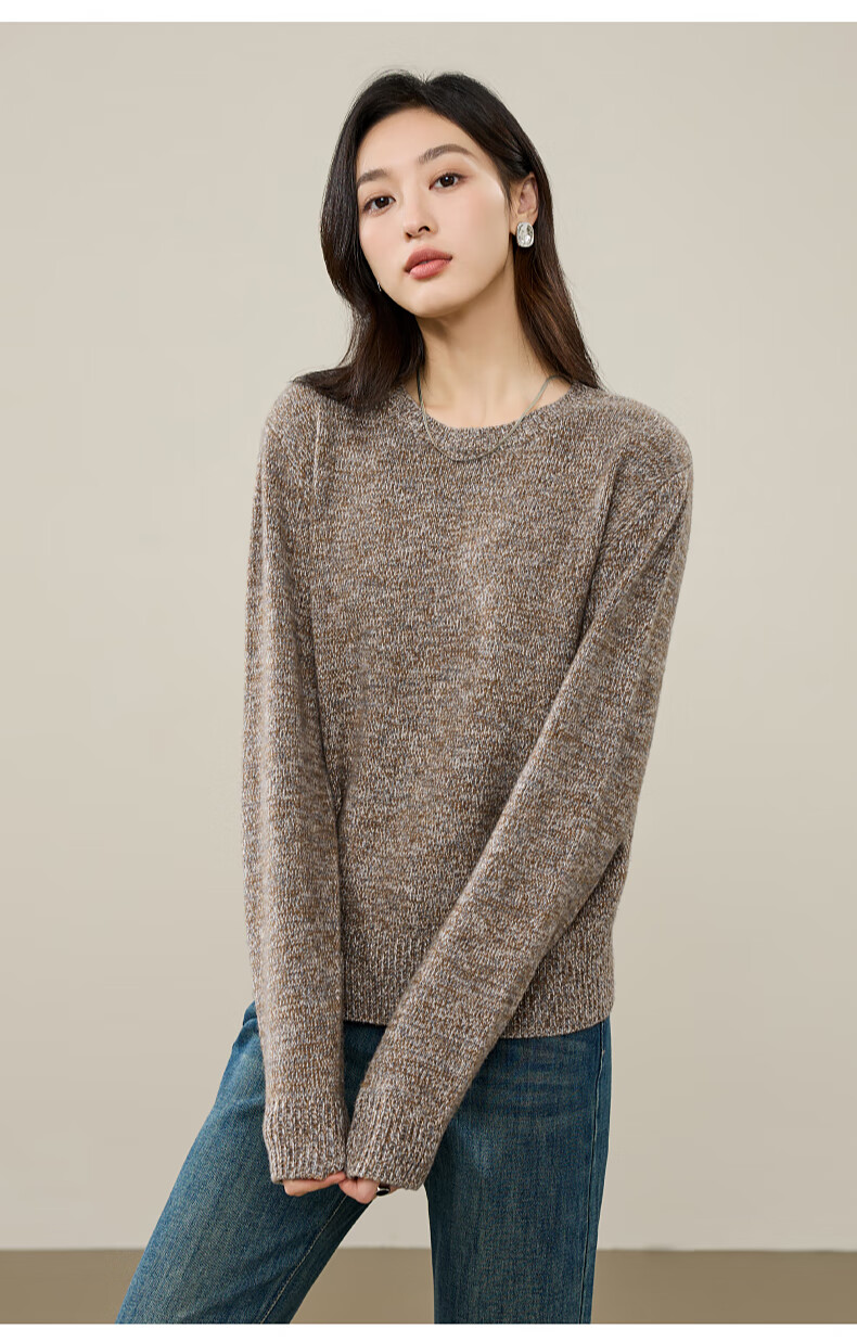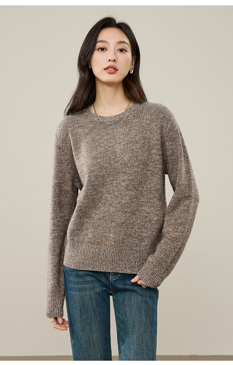 ESE-Y Yiyang 100% Wool Sweater Women's 2025 Autumn and Winter New Round Neck Versatile Casual Slim Thickened Bottoming Sweater Milk Coffee XL