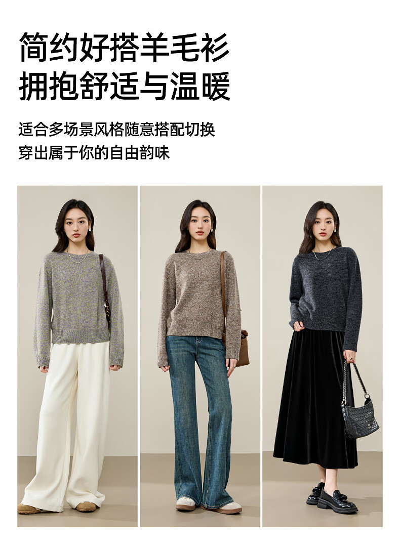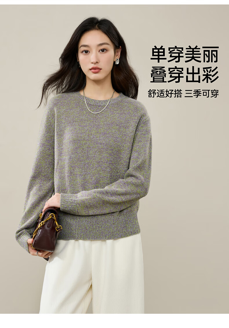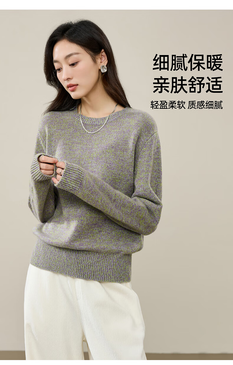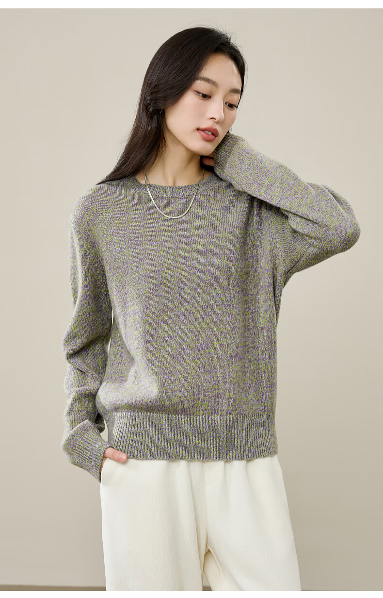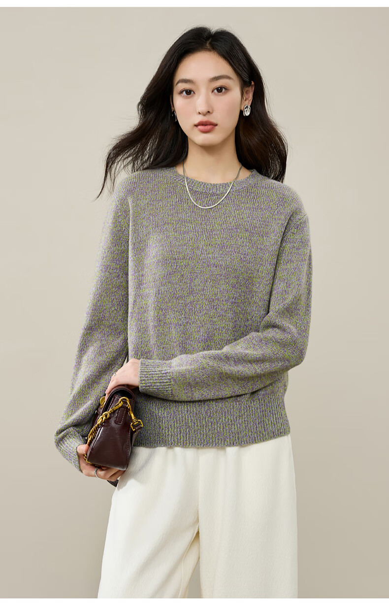 ESE-Y Yiyang 100% Wool Sweater Women's 2025 Autumn and Winter New Round Neck Versatile Casual Slim Thickened Bottoming Sweater Milk Coffee XL