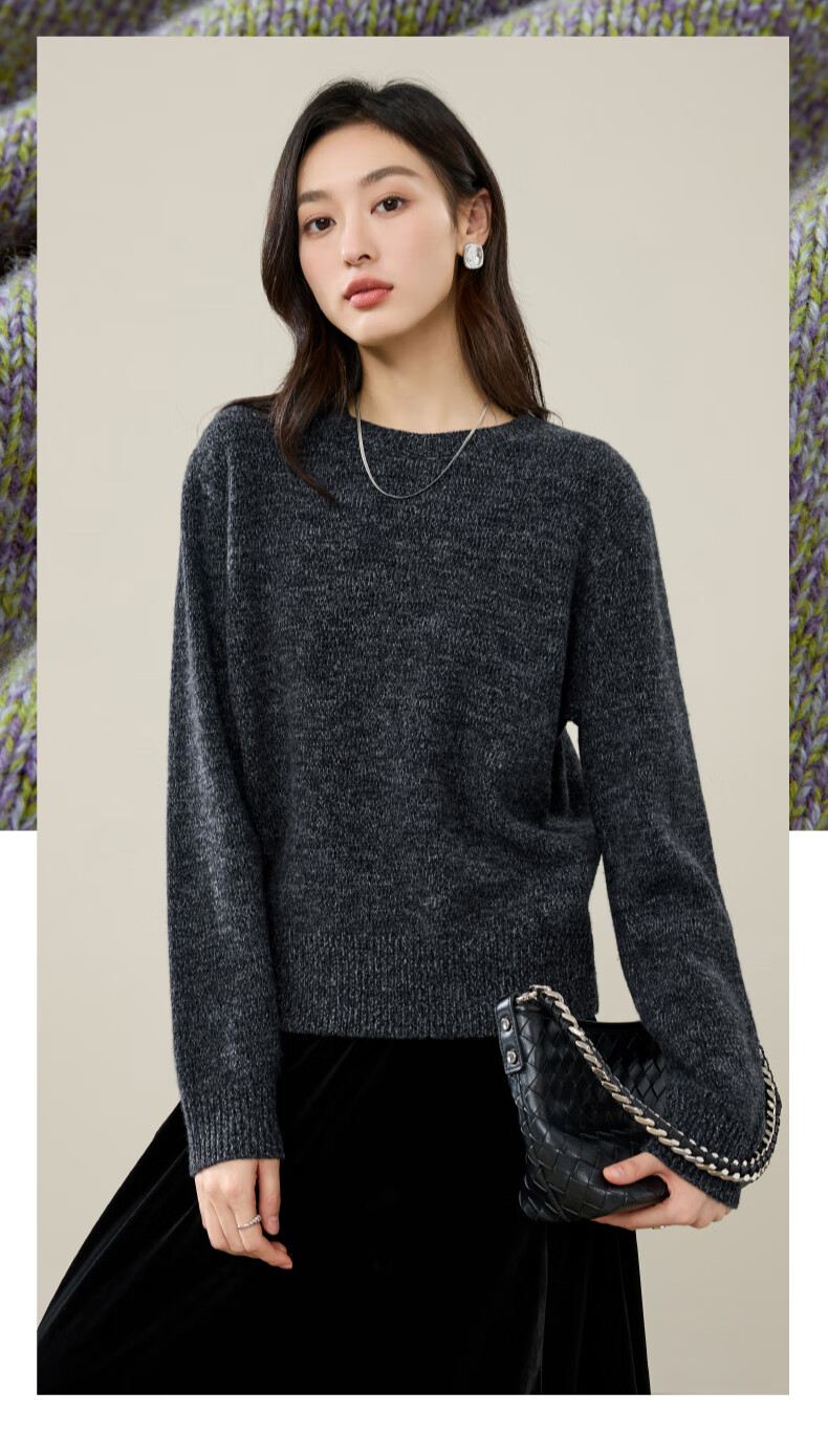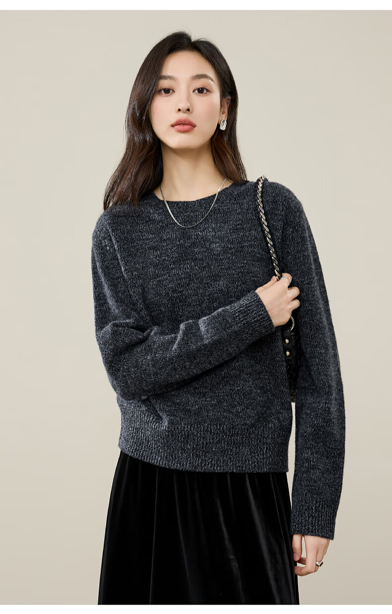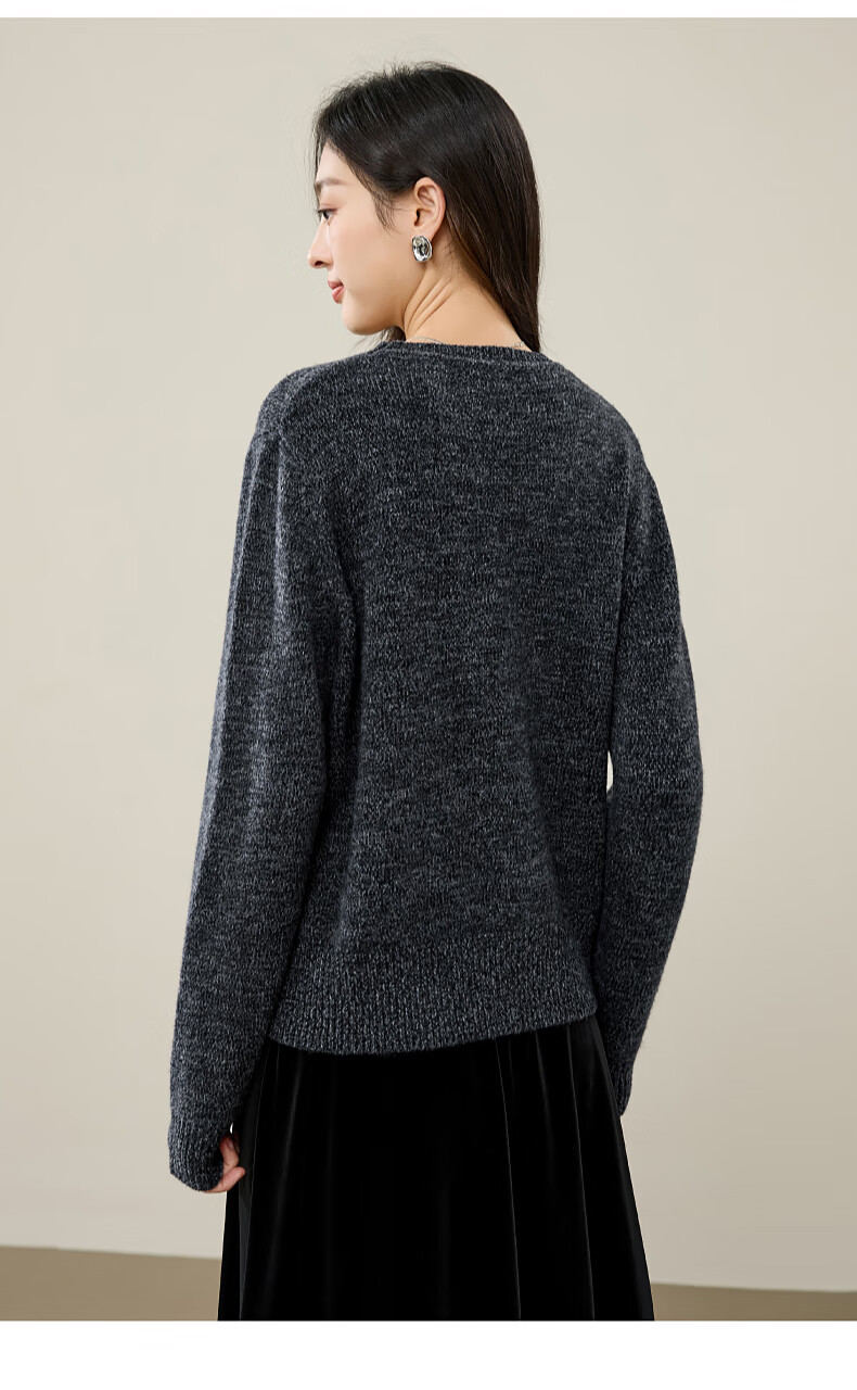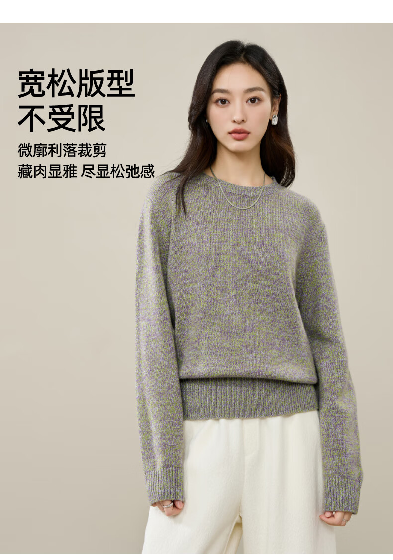 ESE-Y Yiyang 100% Wool Sweater Women's 2025 Autumn and Winter New Round Neck Versatile Casual Slim Thickened Bottoming Sweater Milk Coffee XL