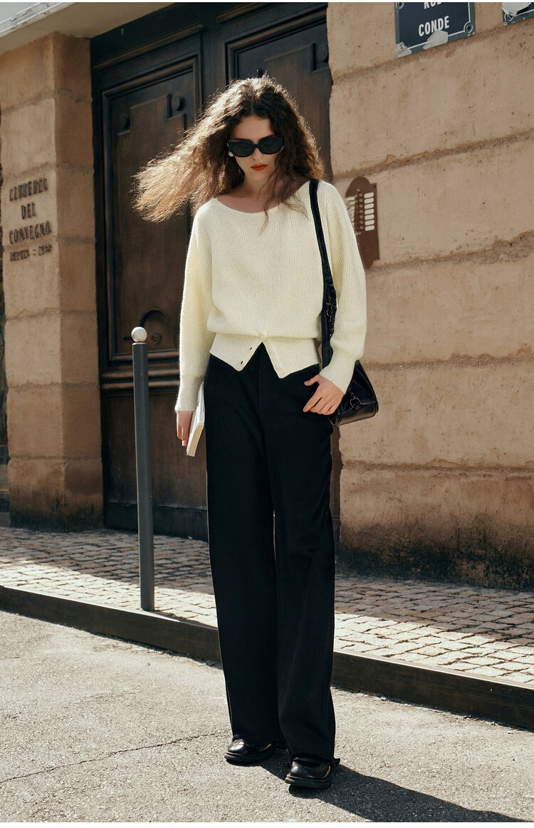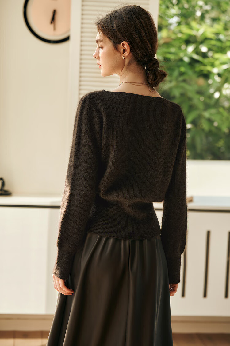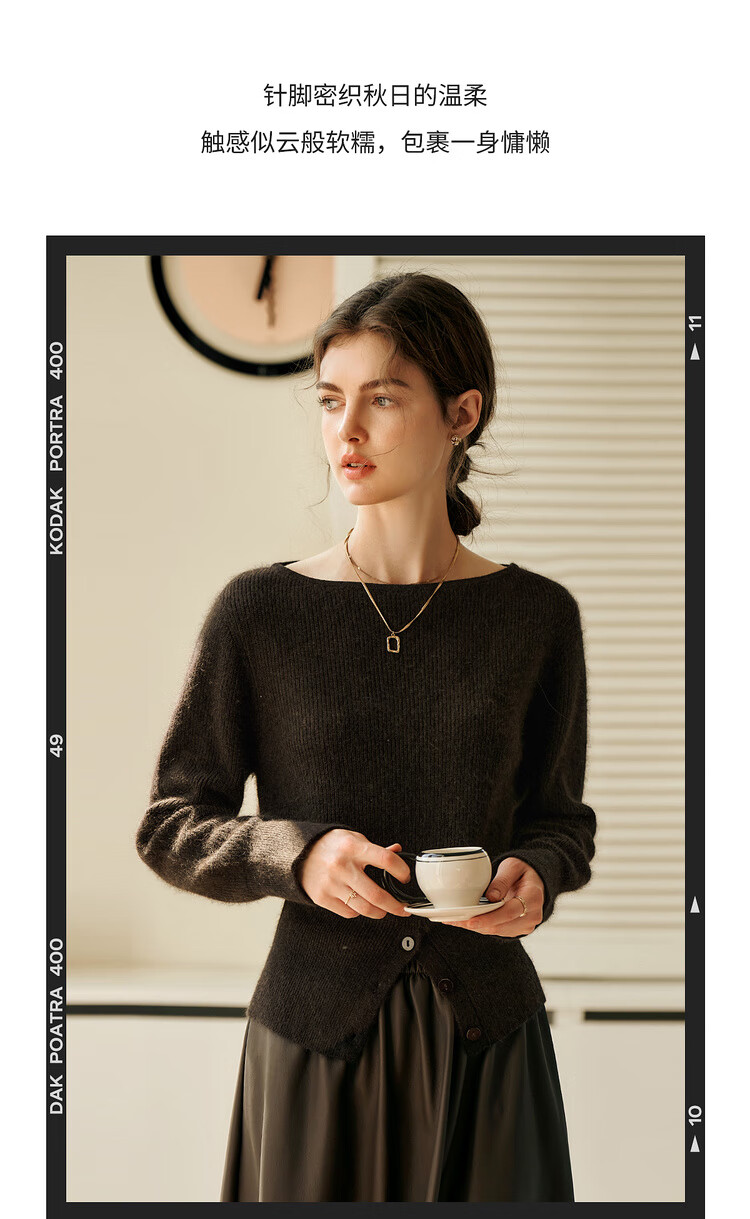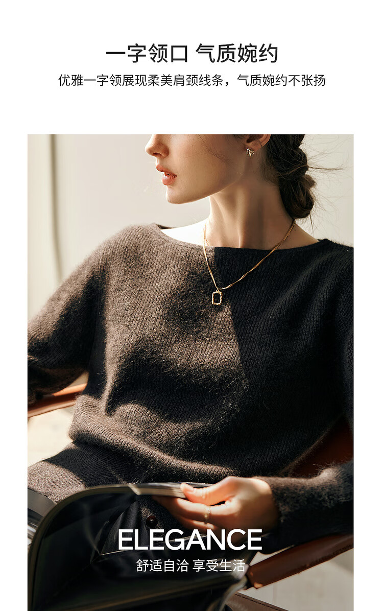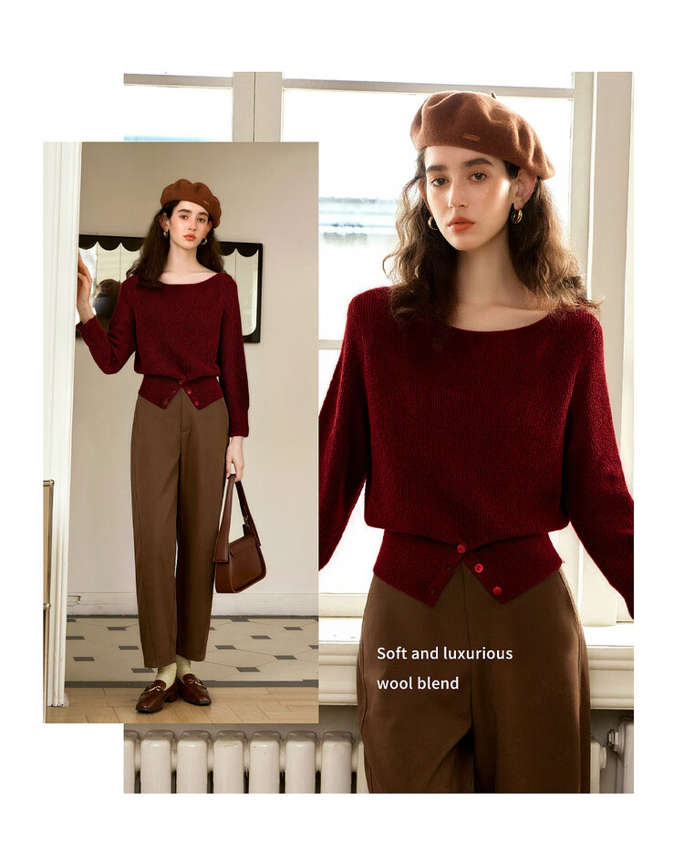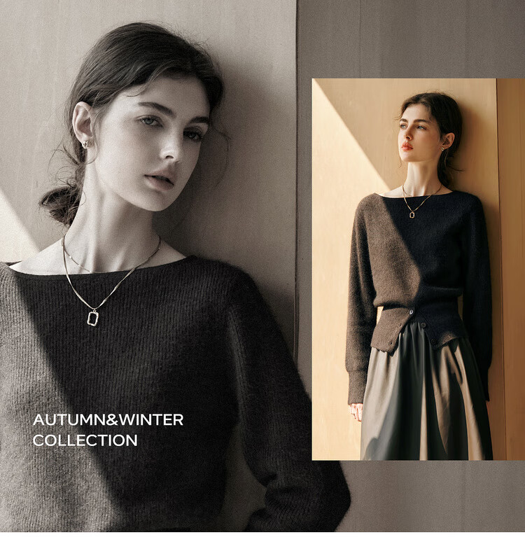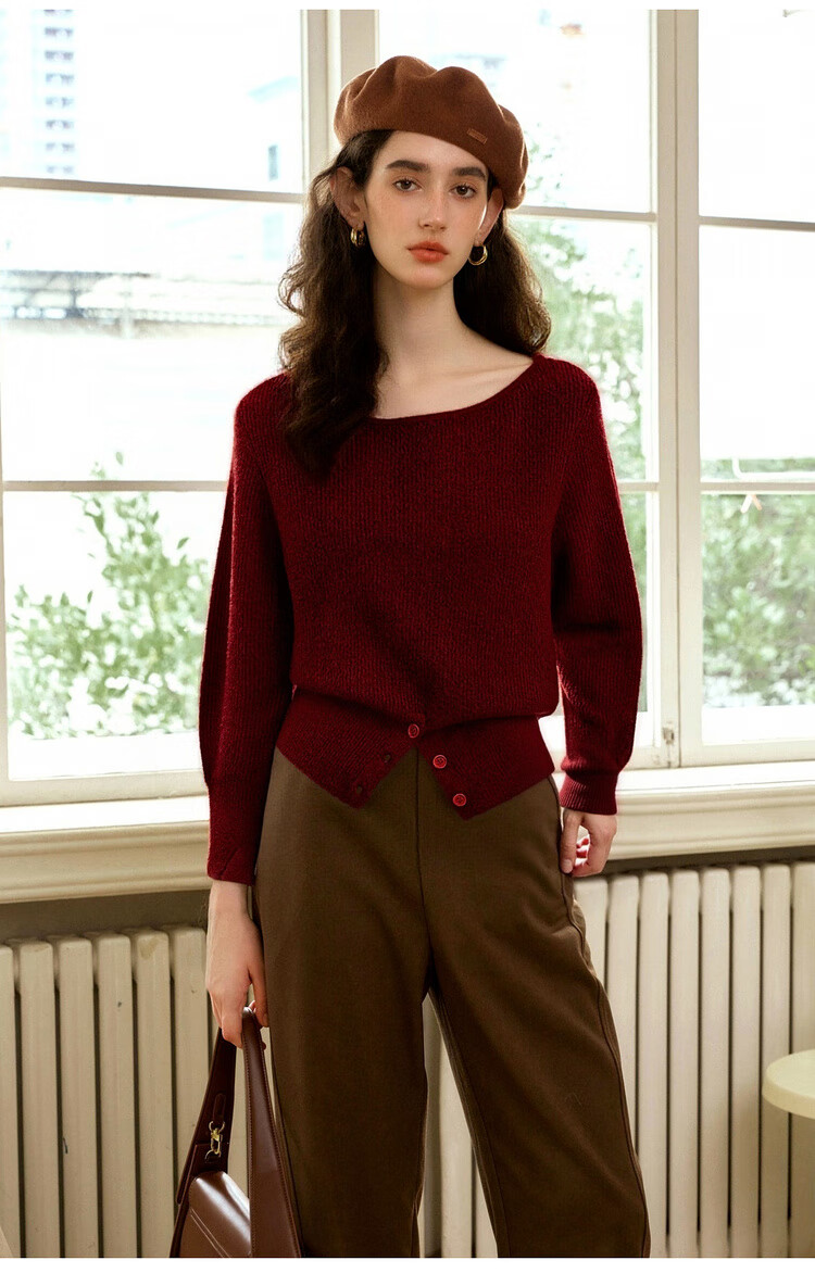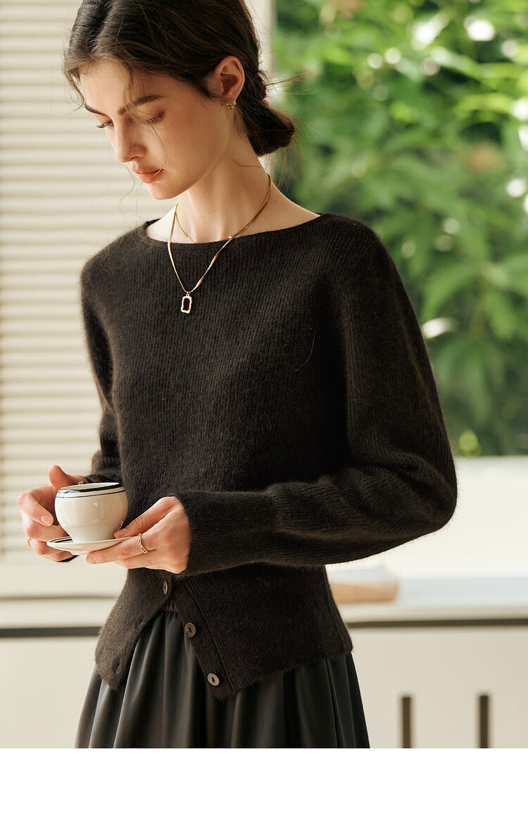 Olrain French one-neck sweater women's winter new slit hem waist pullover apricot S