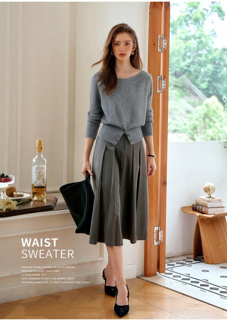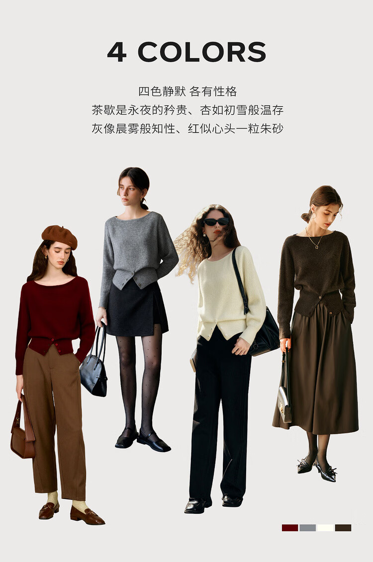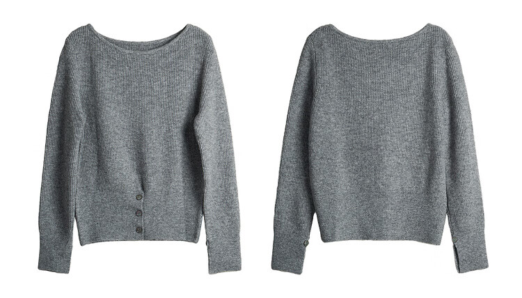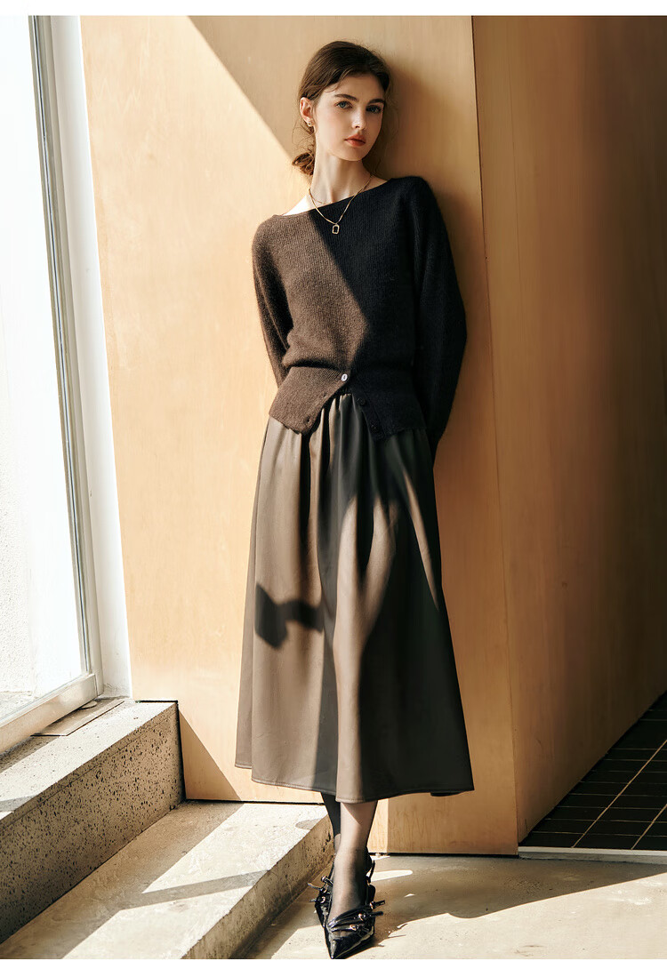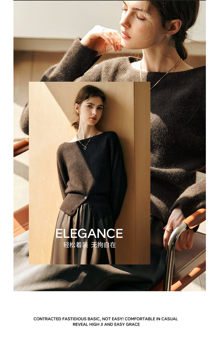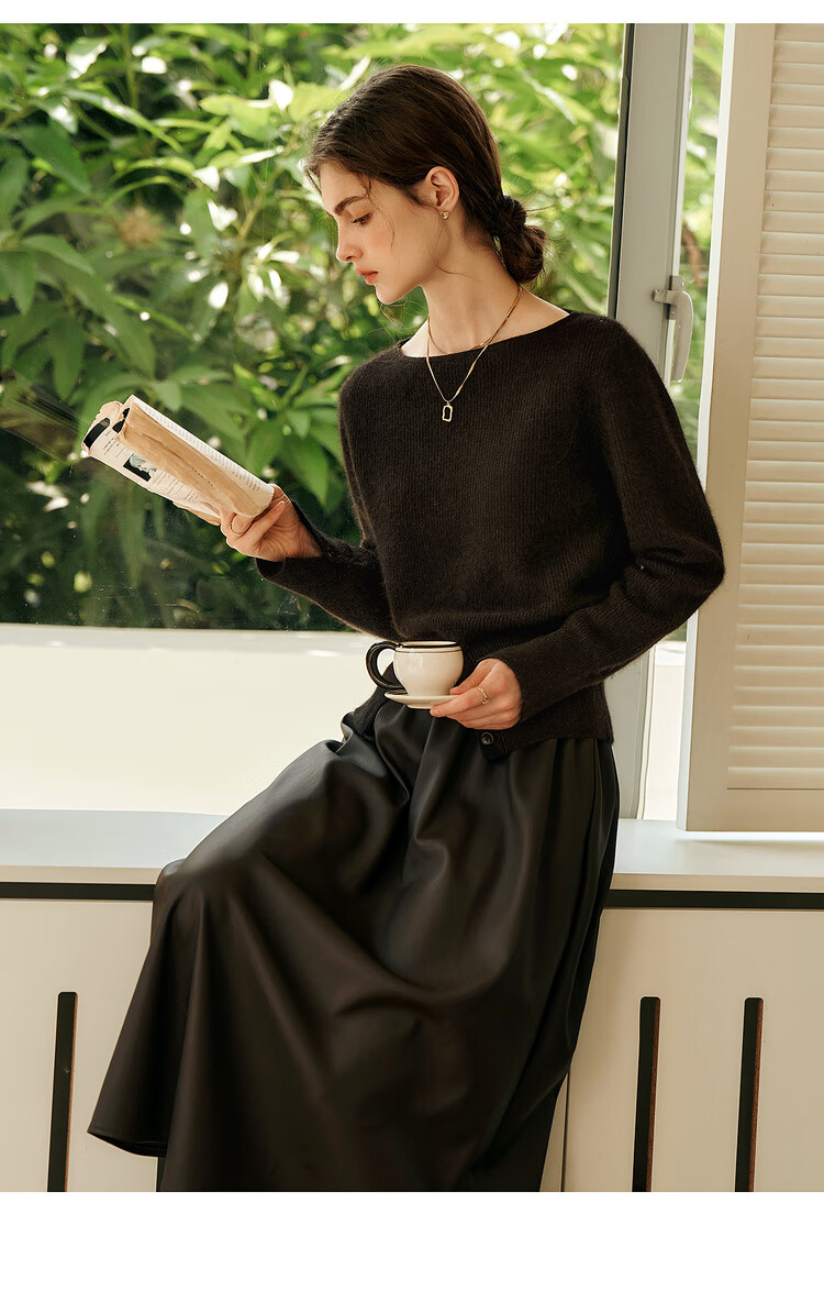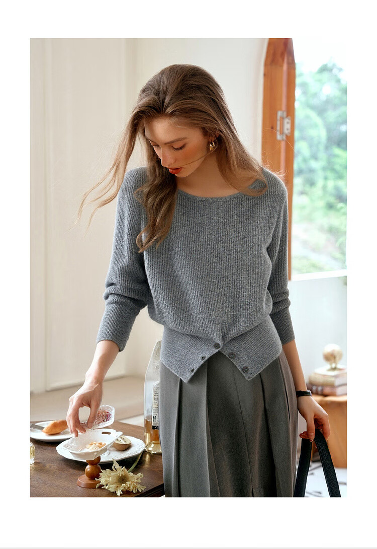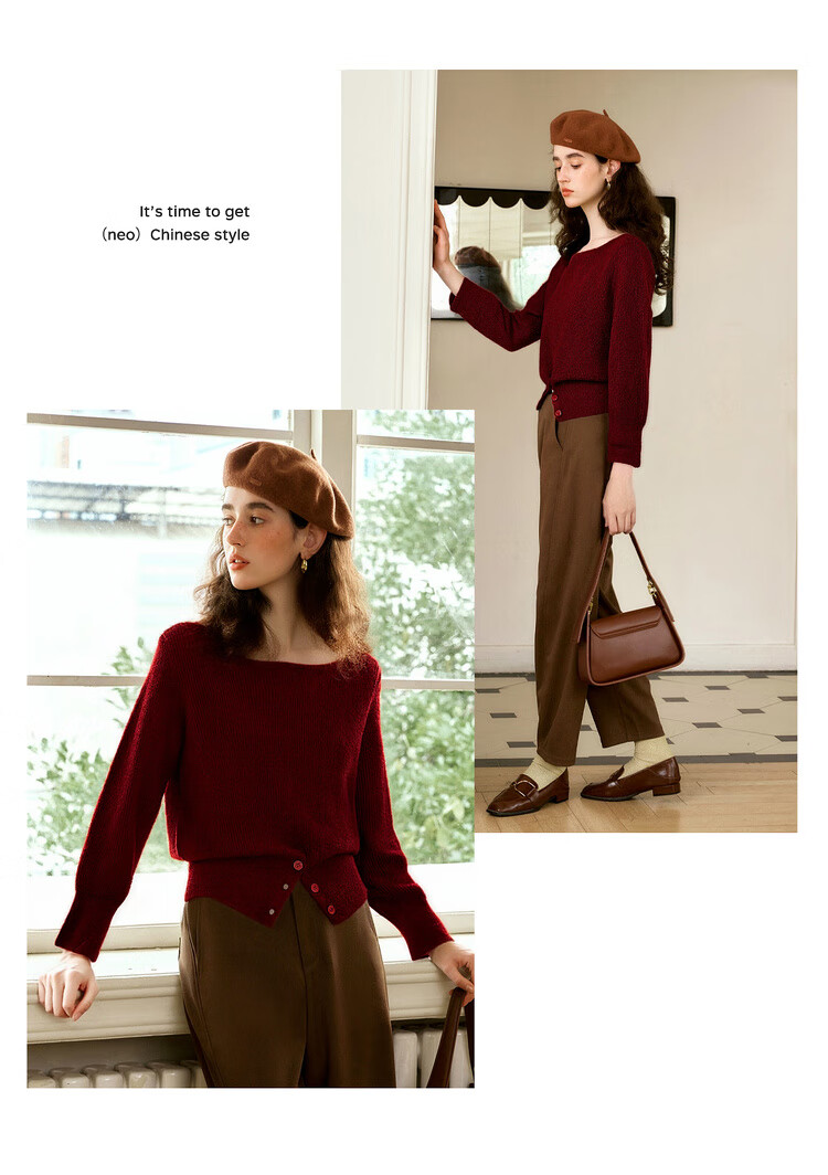 Olrain French one-neck sweater women's winter new slit hem waist pullover apricot S