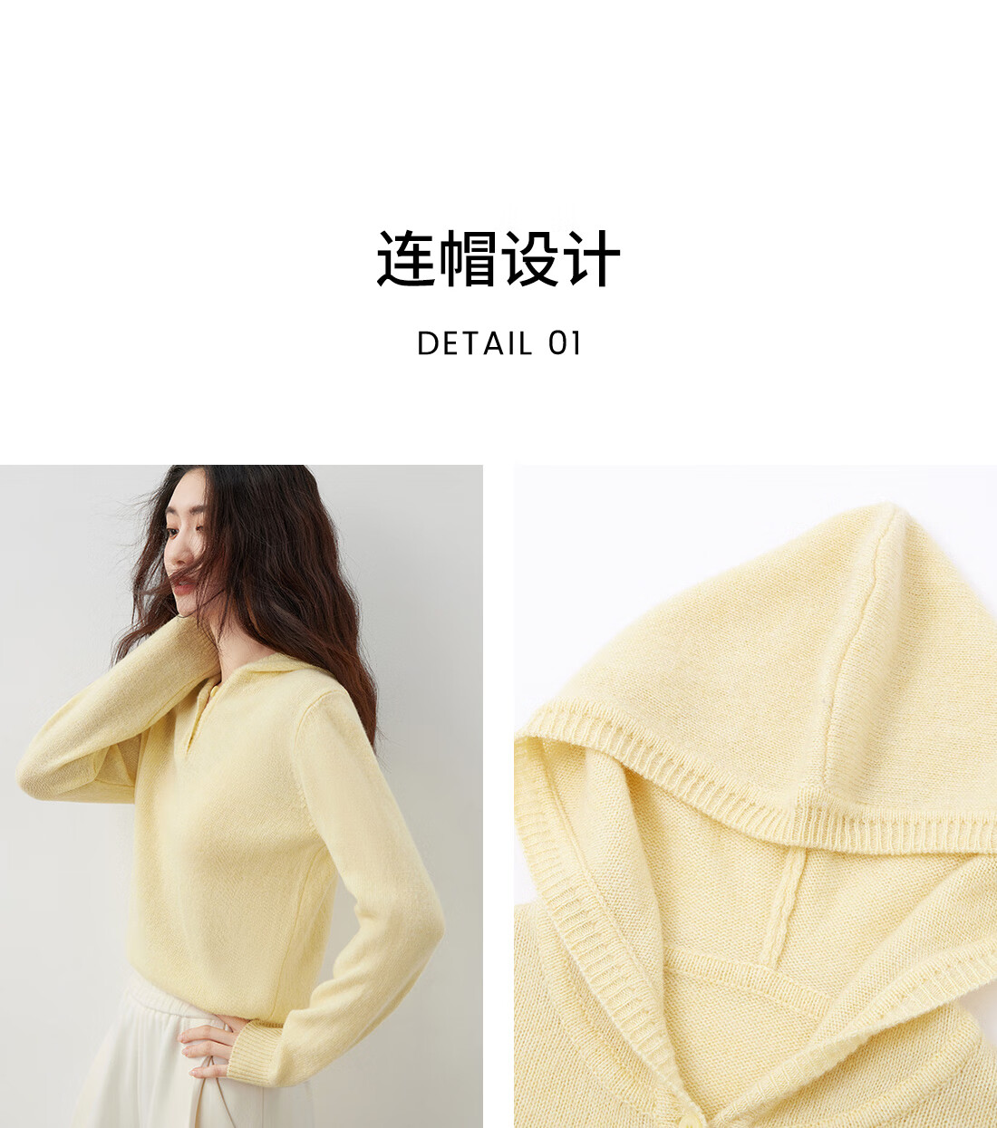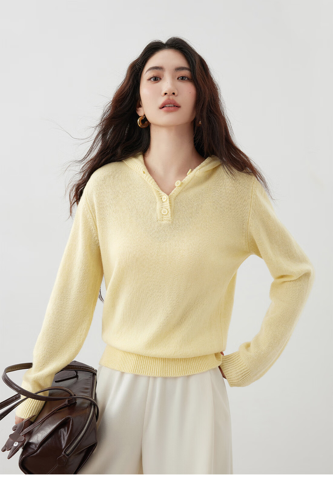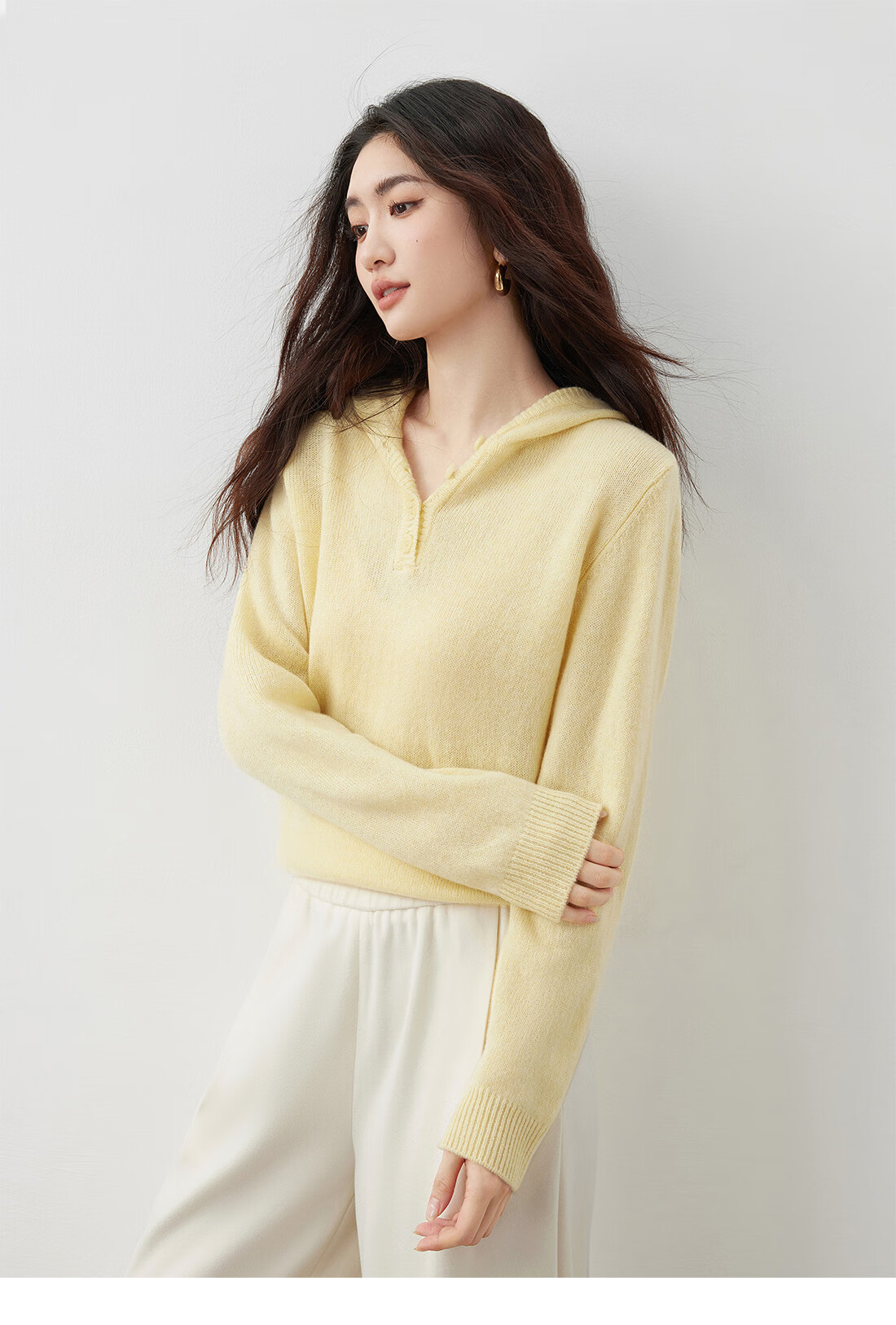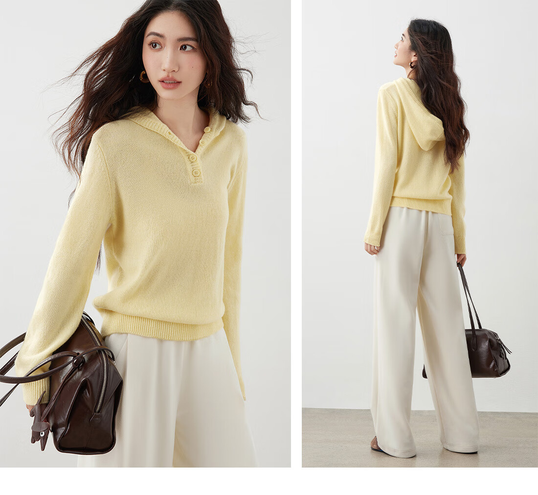 L.WEST 100% Wool Sweater Women's 2025 Winter New Hooded Pullover Design Slim Sweater Yellow XL 120-135Jin Jin equals 0.5 kg