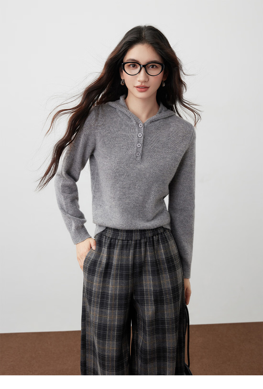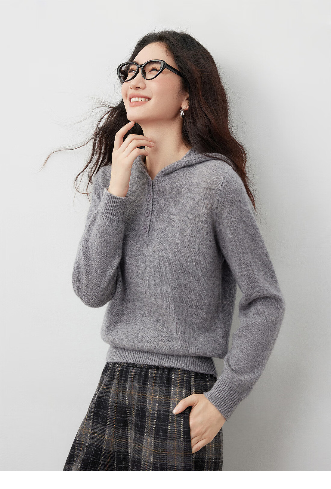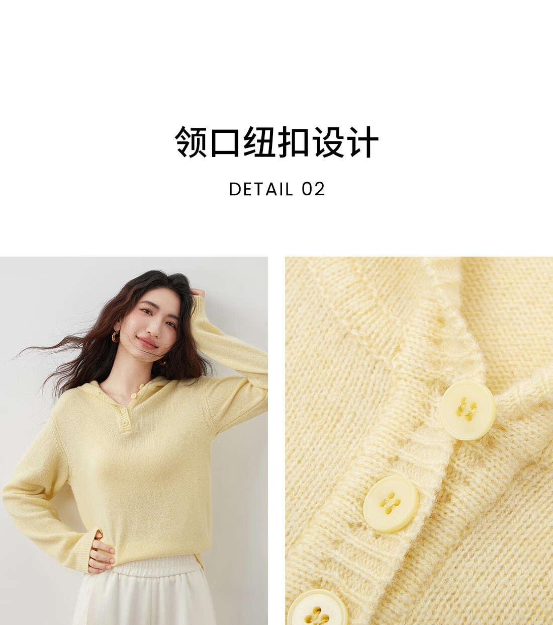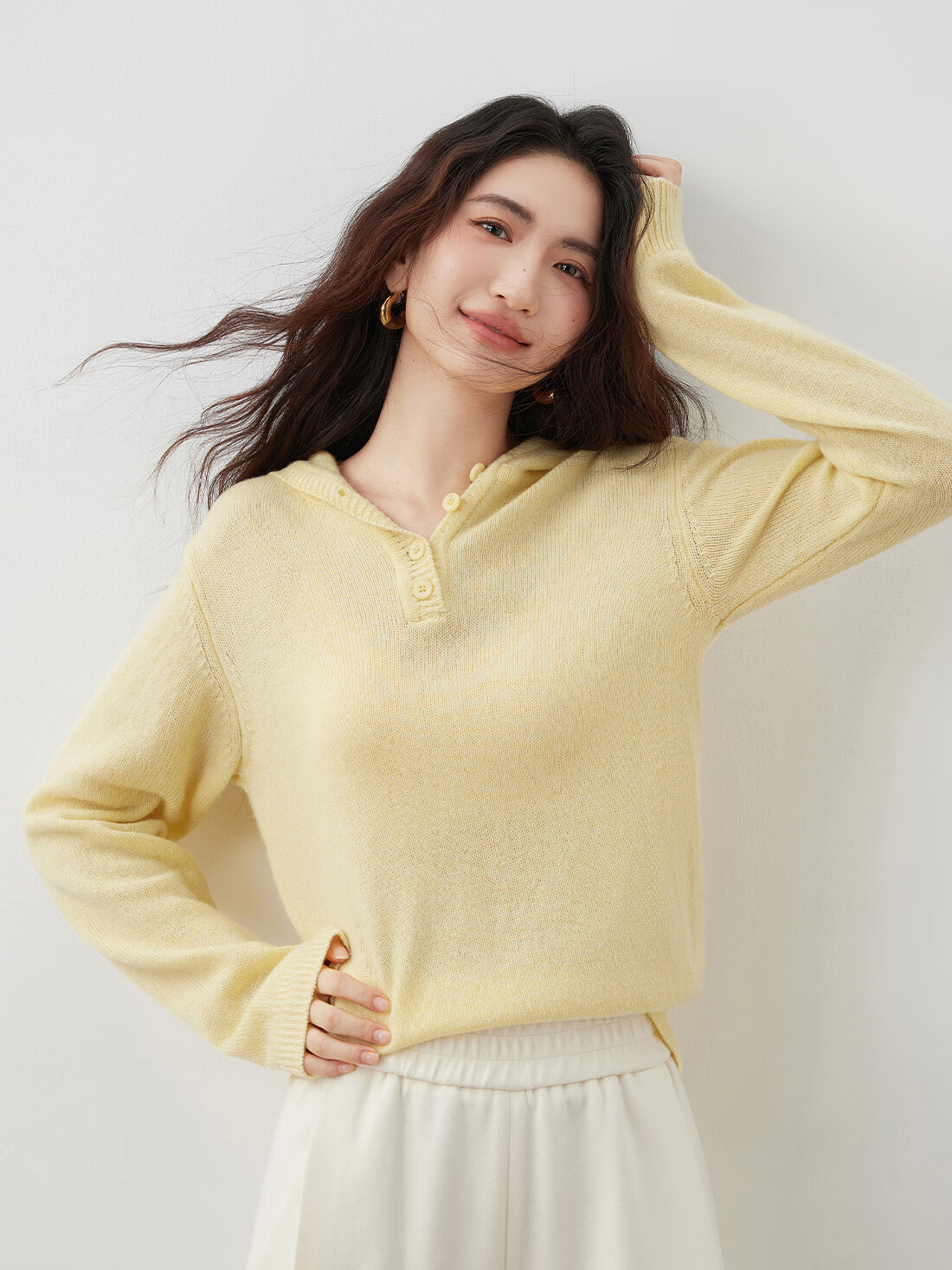 L.WEST 100% Wool Sweater Women's 2025 Winter New Hooded Pullover Design Slim Sweater Yellow XL 120-135Jin Jin equals 0.5 kg