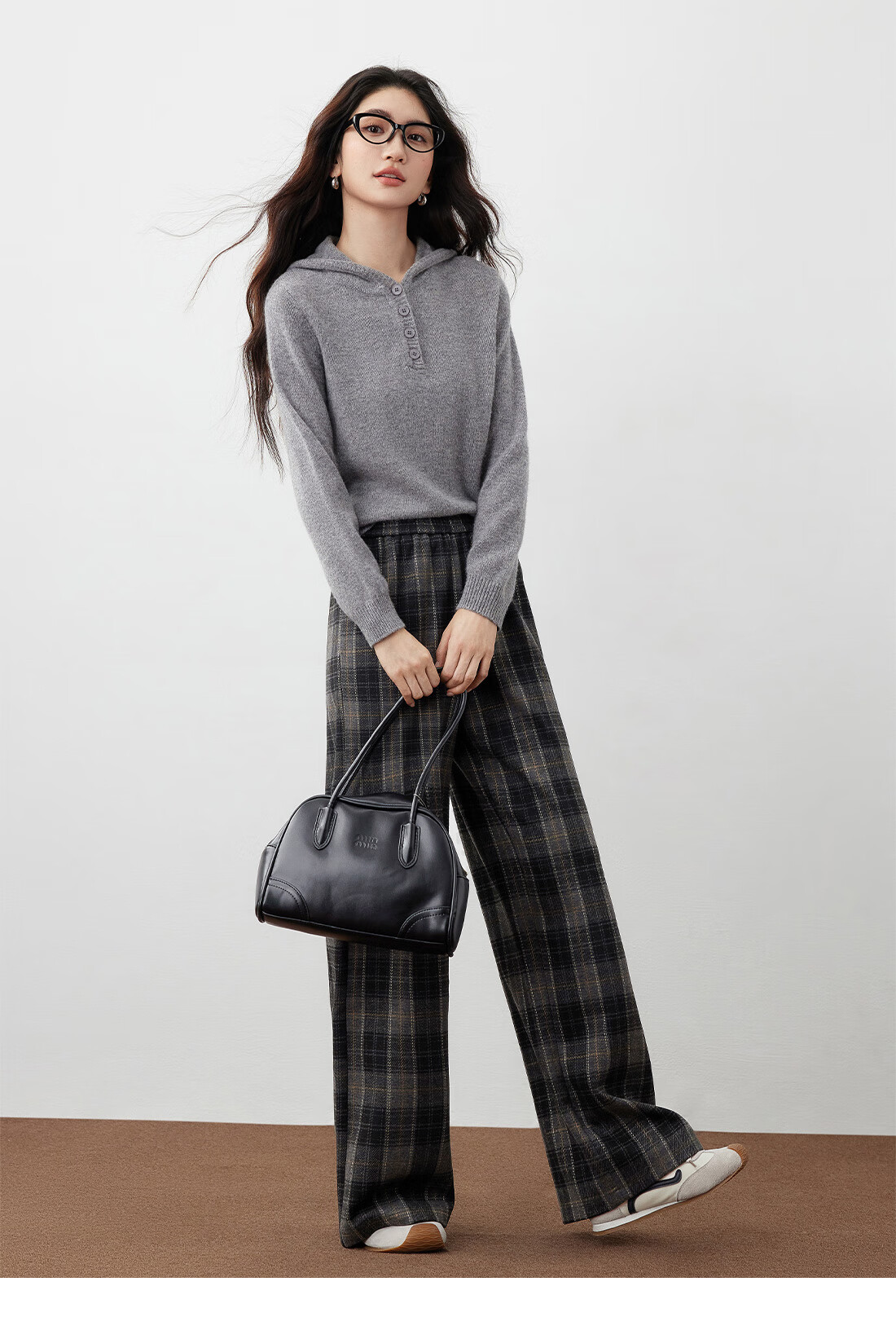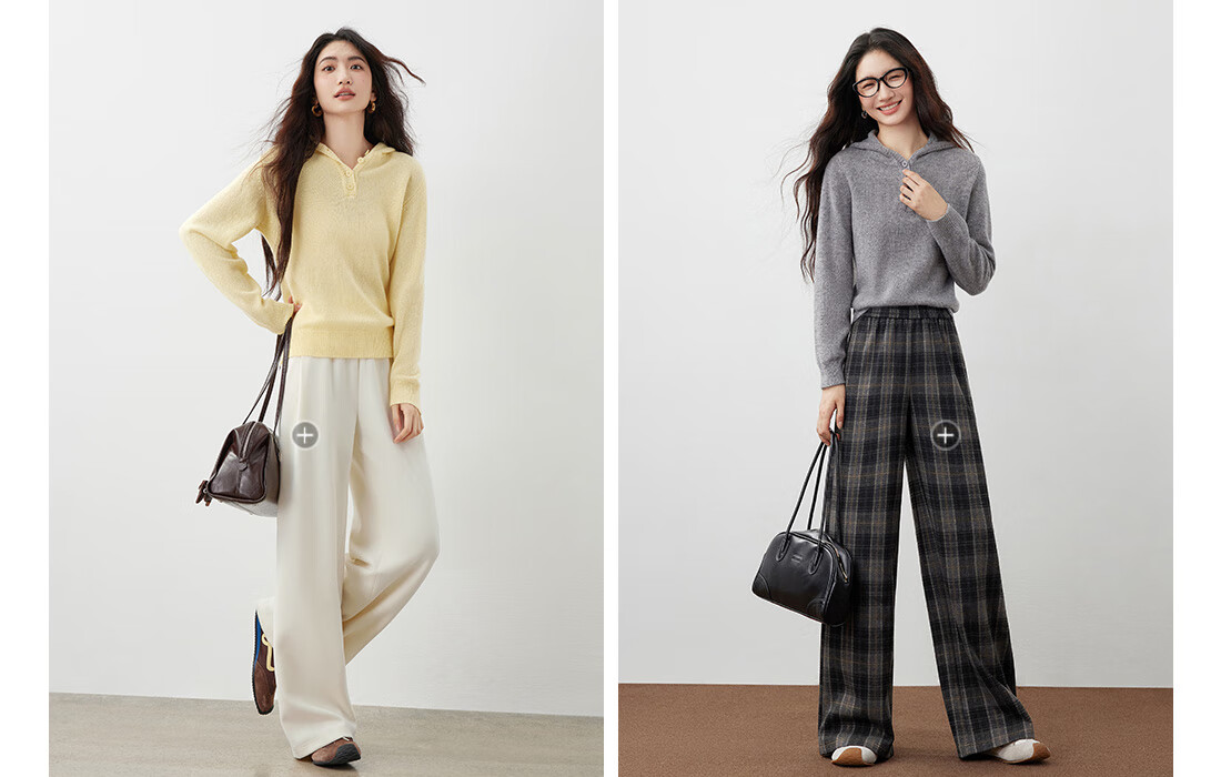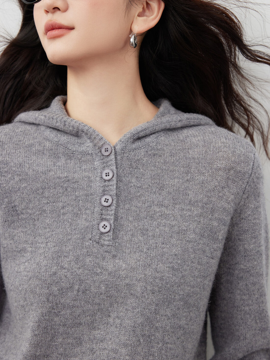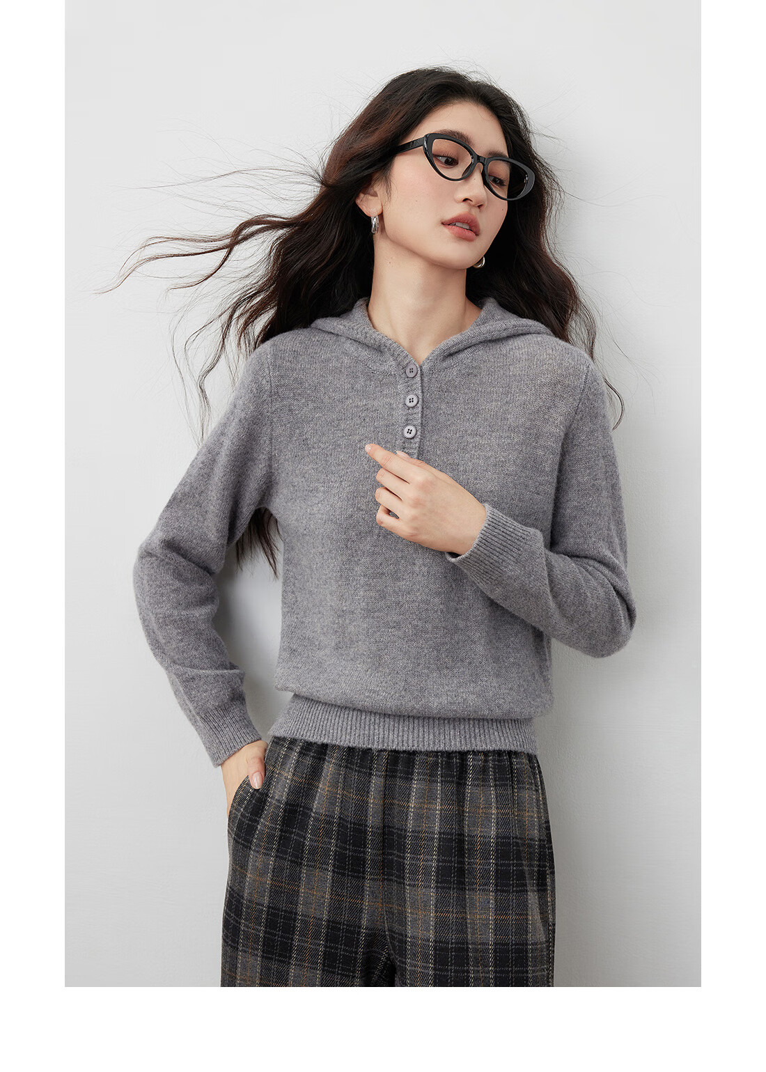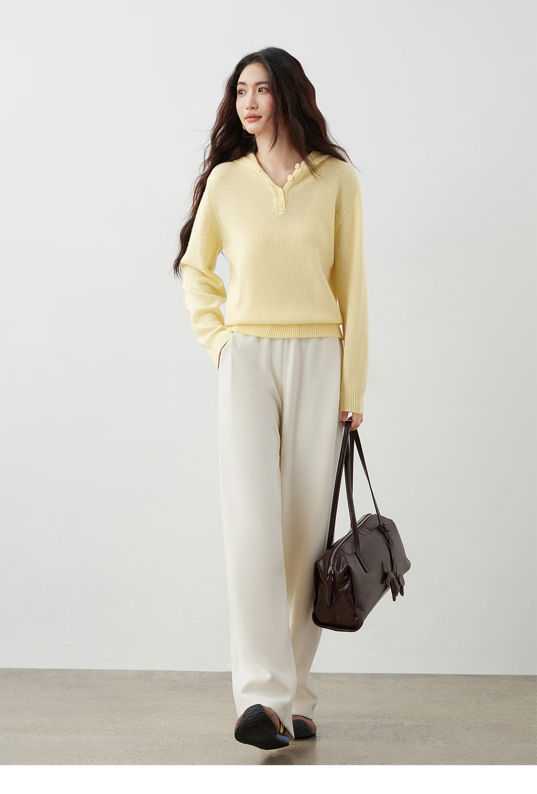 L.WEST 100% Wool Sweater Women's 2025 Winter New Hooded Pullover Design Slim Sweater Yellow XL 120-135Jin Jin equals 0.5 kg
