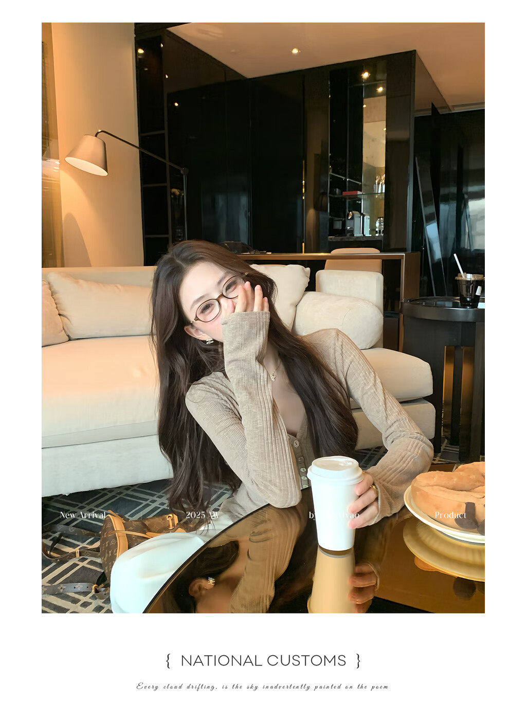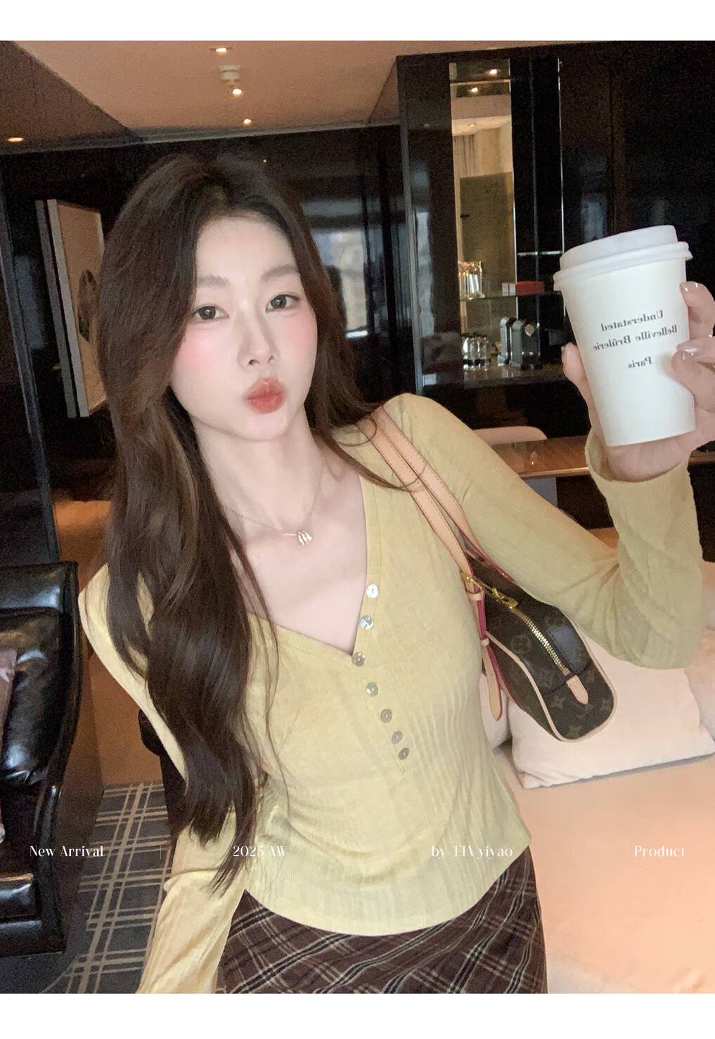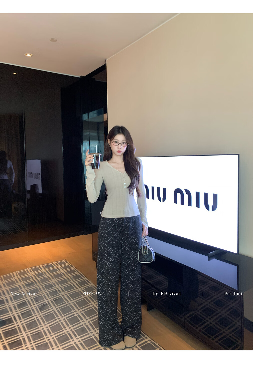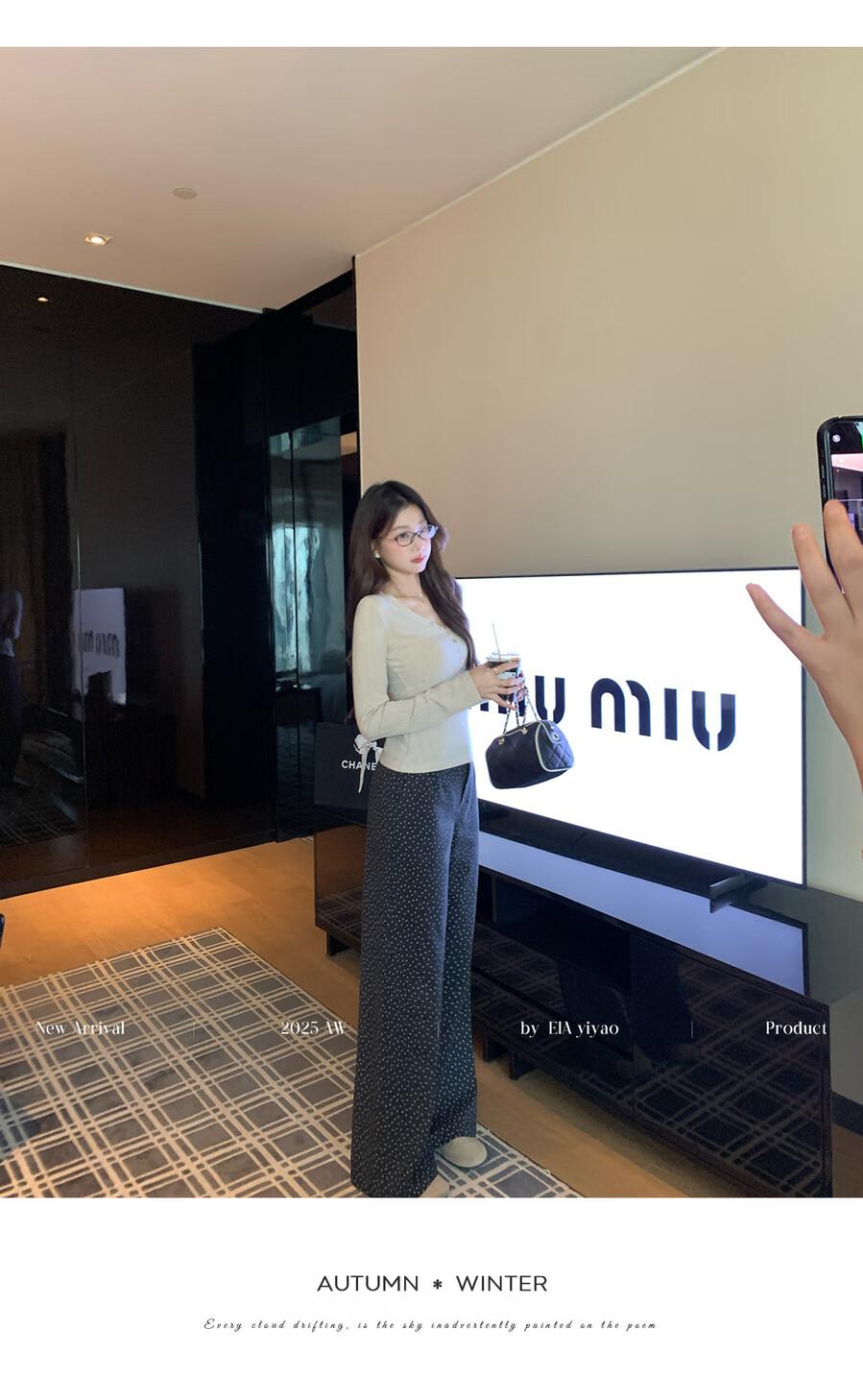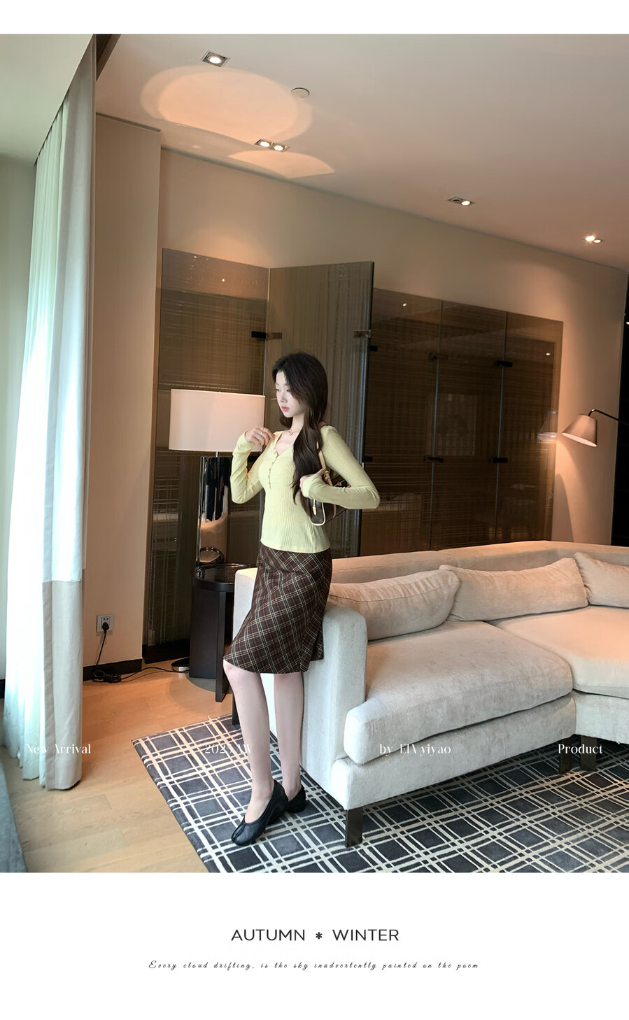 EIA Yiyao has a good figure both inside and outside. V-neck sweater for women in autumn and winter. Korean style slim long-sleeved top. Oatmeal color top. Medium and high elasticity. S. 85Jin Jin is equal to 0.5kg. 100Jin Jin is equal to 0.5kg. Yiyao wears size S.