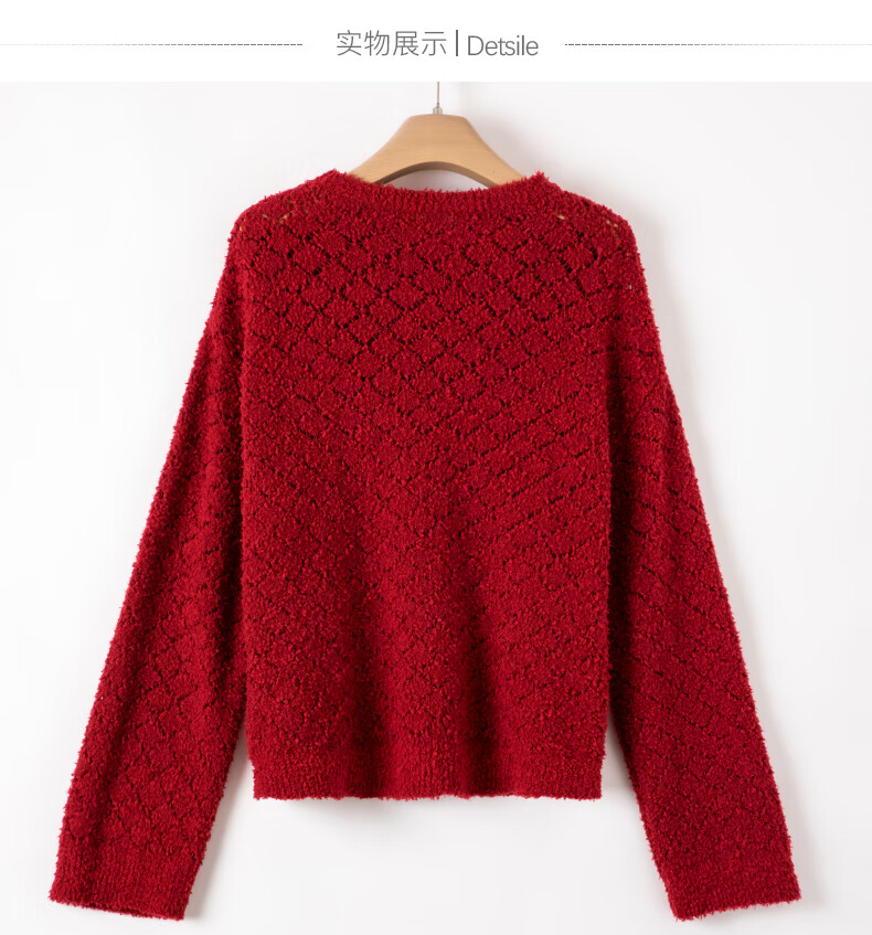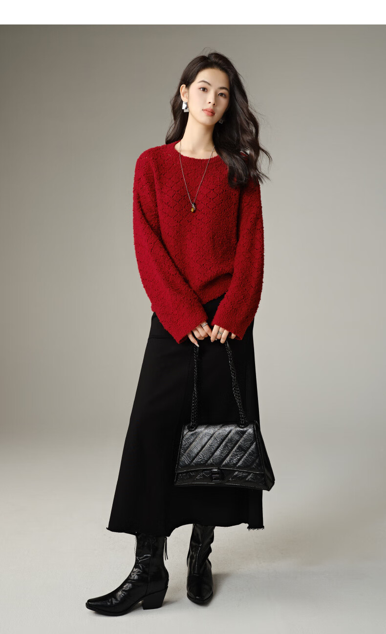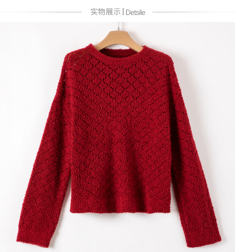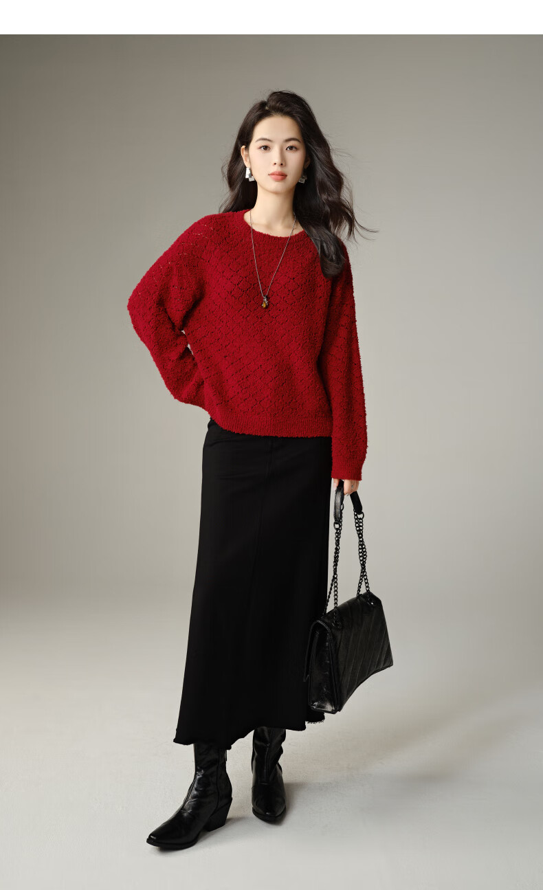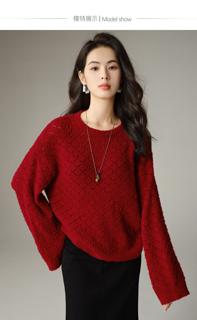 Late White New Product 2025 Autumn Fashionable and Versatile Chinese Red Sweater Solid Color Pullover Sweater Women Red S